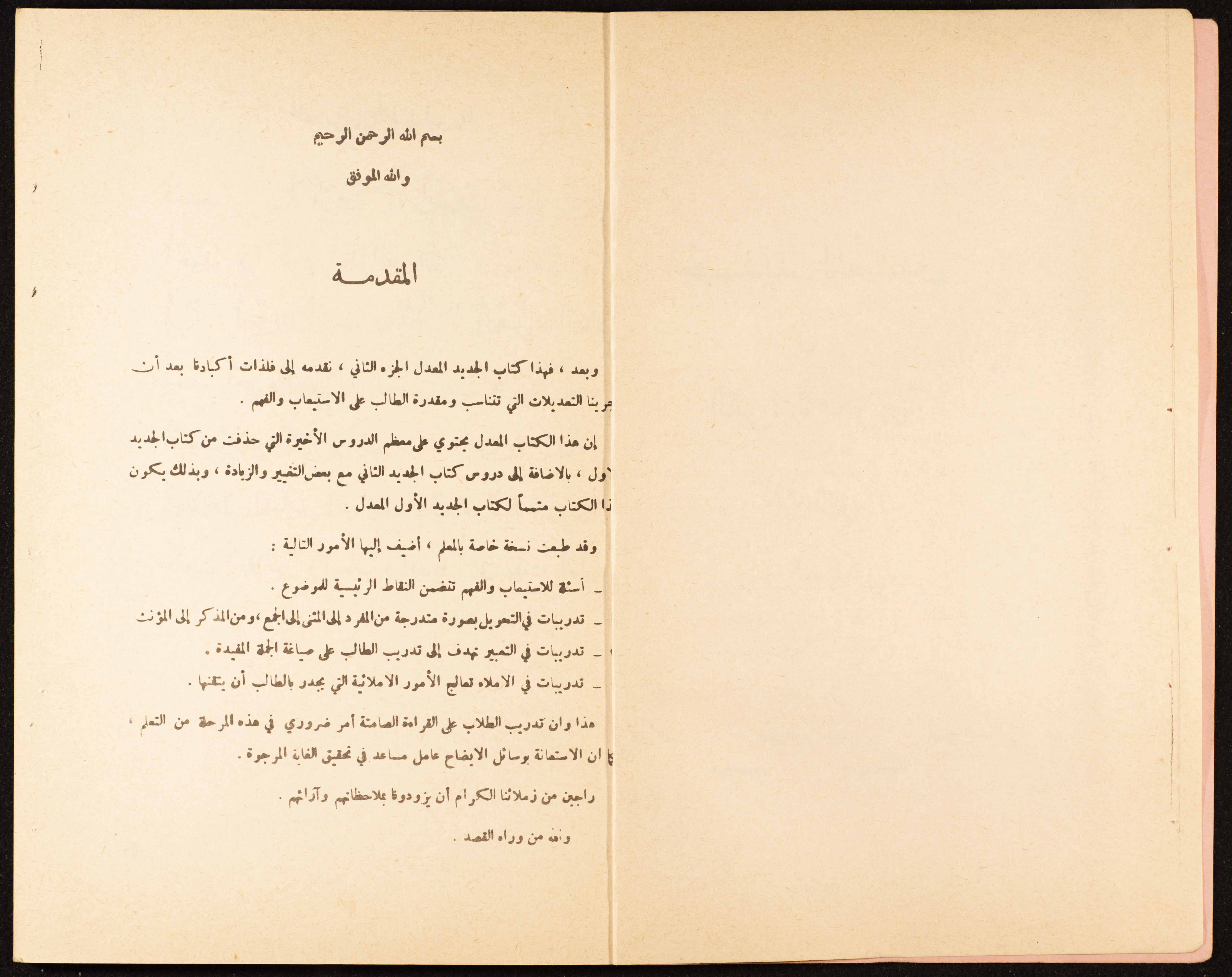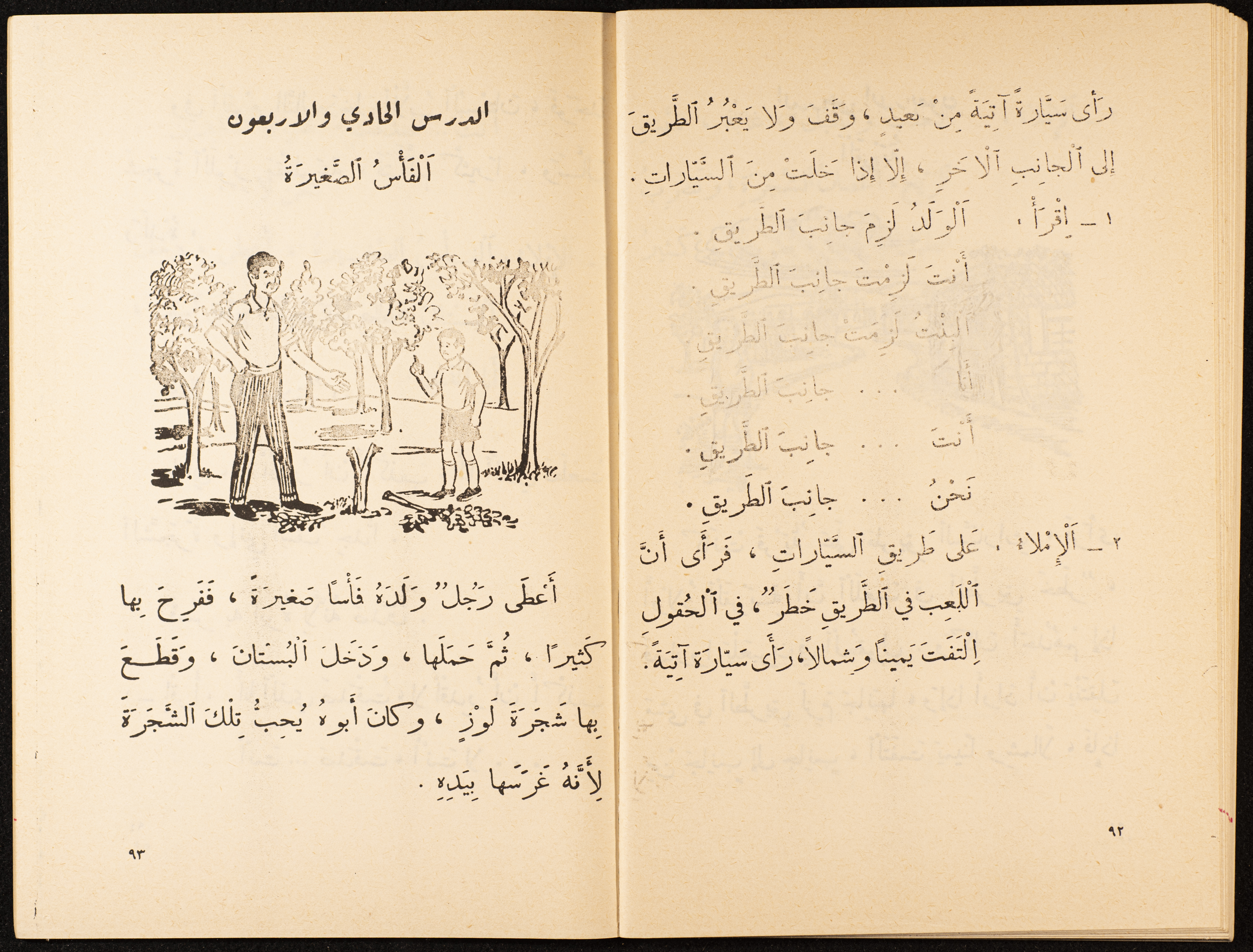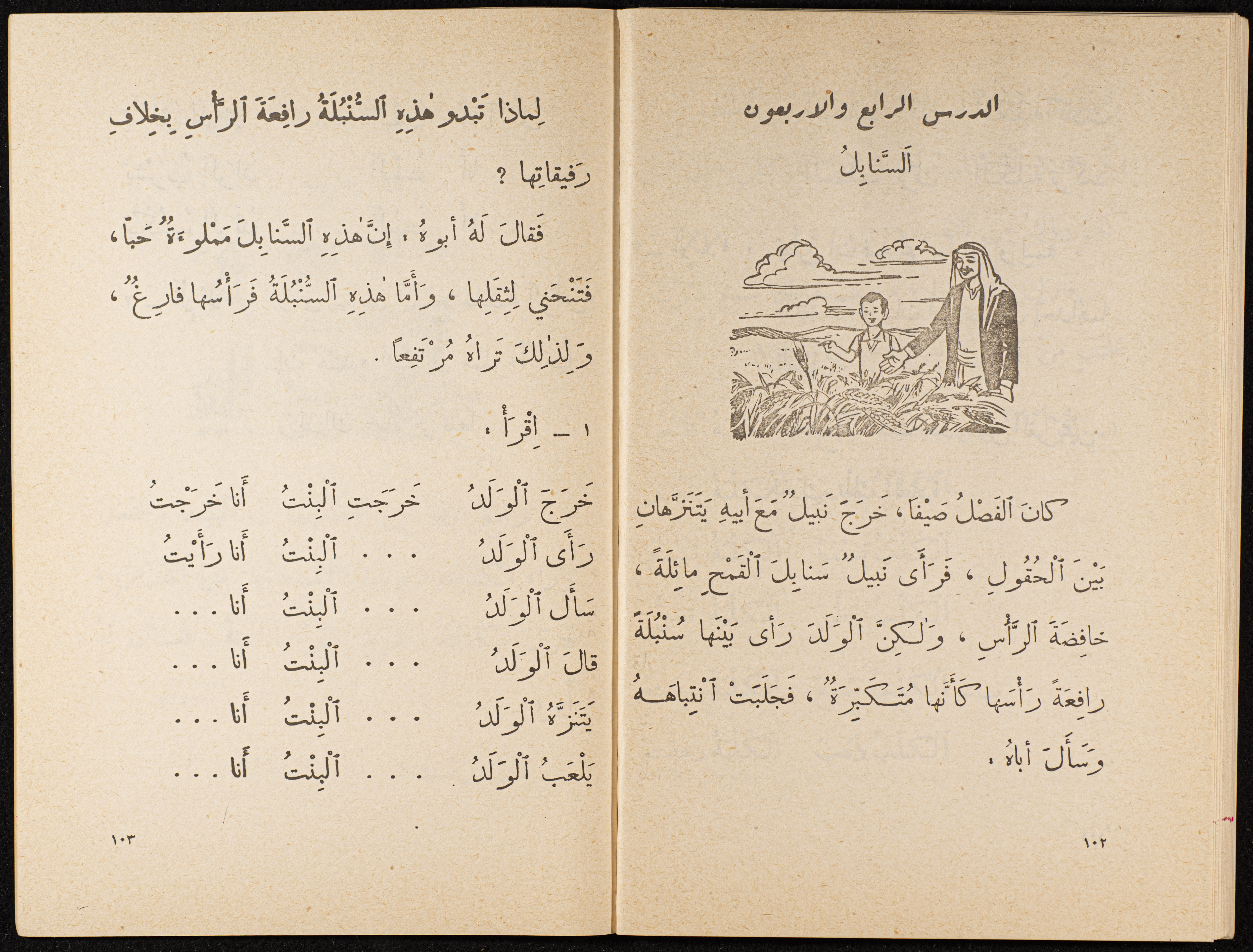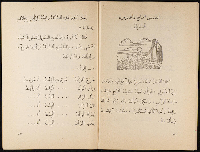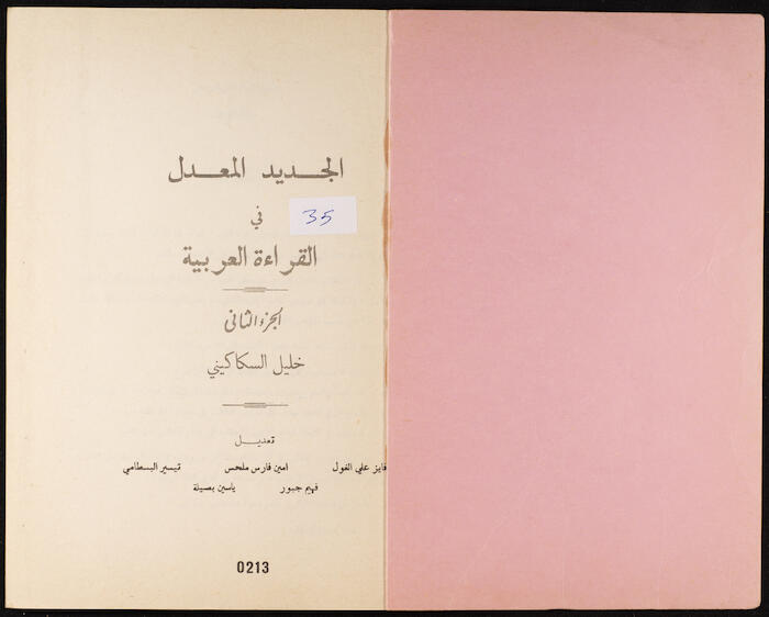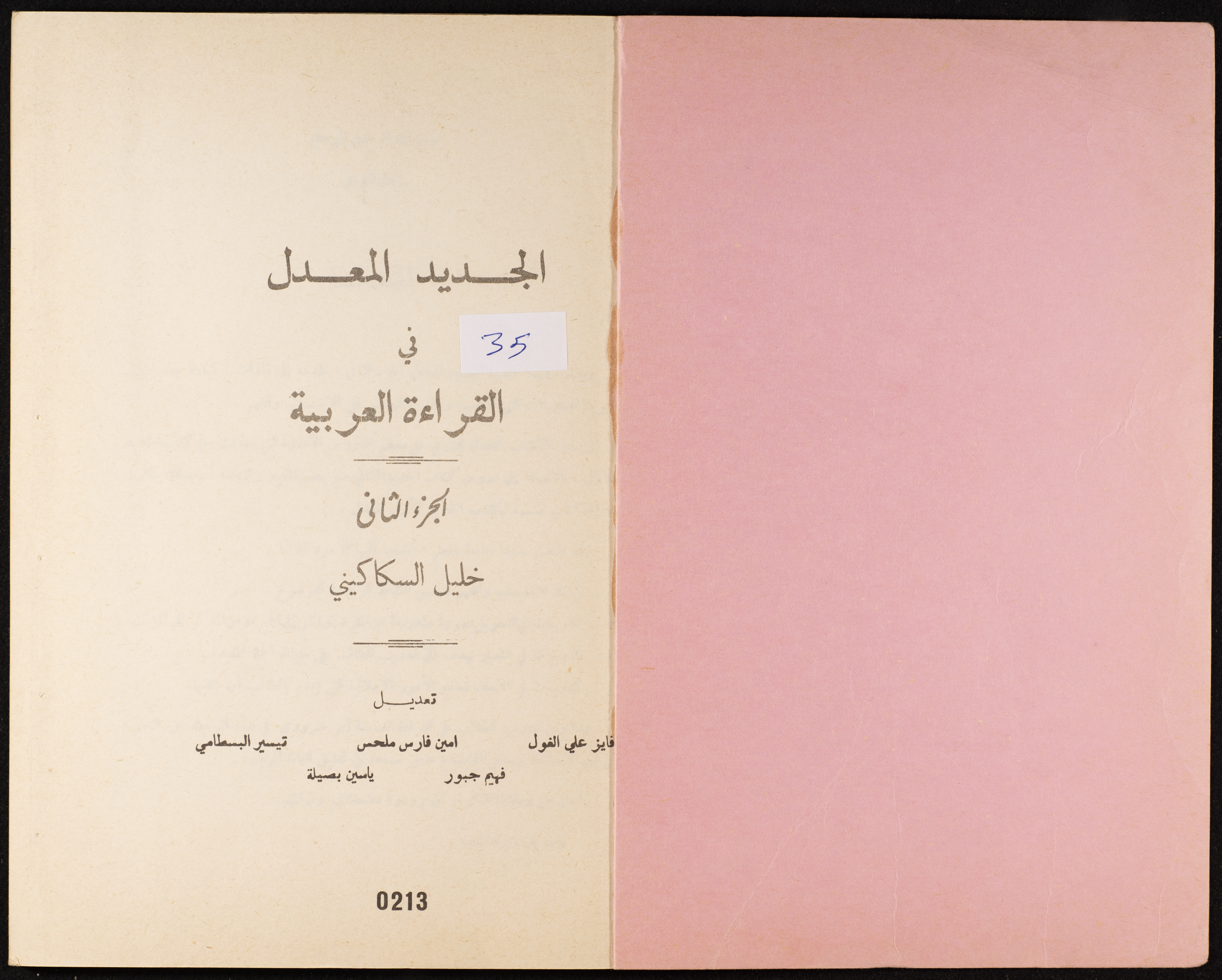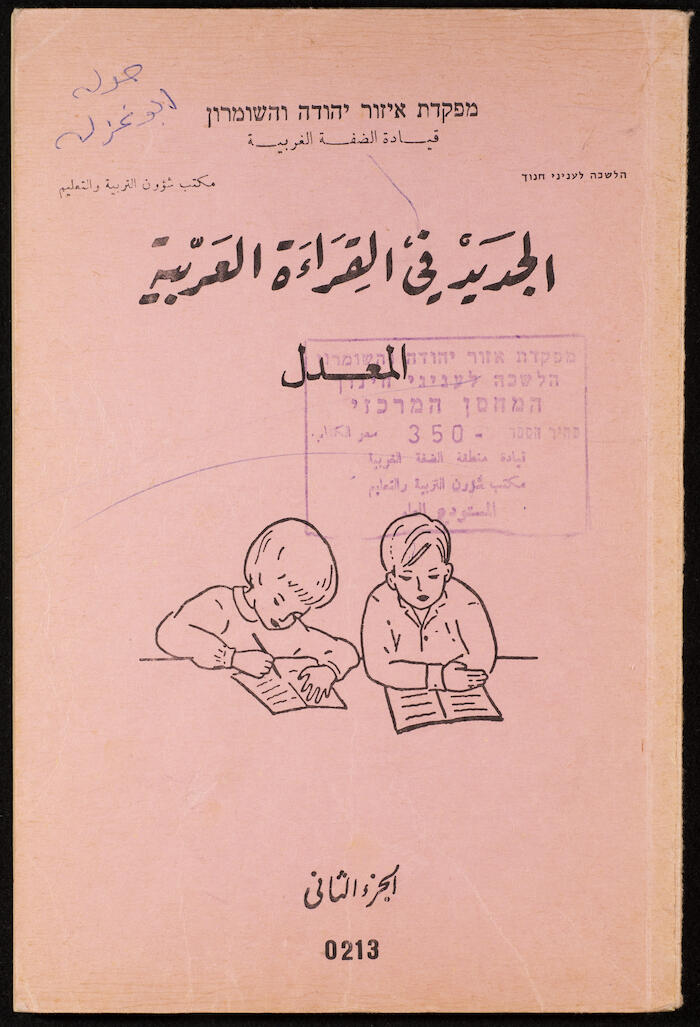 This issue of the second part of the book "Al-Jadeed Fil-Qeraa al-Arabeyyah" (the New in Arabic Reading) is by Khalil Sakakini was edited by a committee of Amin Fares Melhes, Fayez al-Ghul, Yasin Bseileh, Fahim Jbour and Tayseer al-Bustami and it is the version adopted by the Israeli Directorate of Education Affairs in the West Bank .