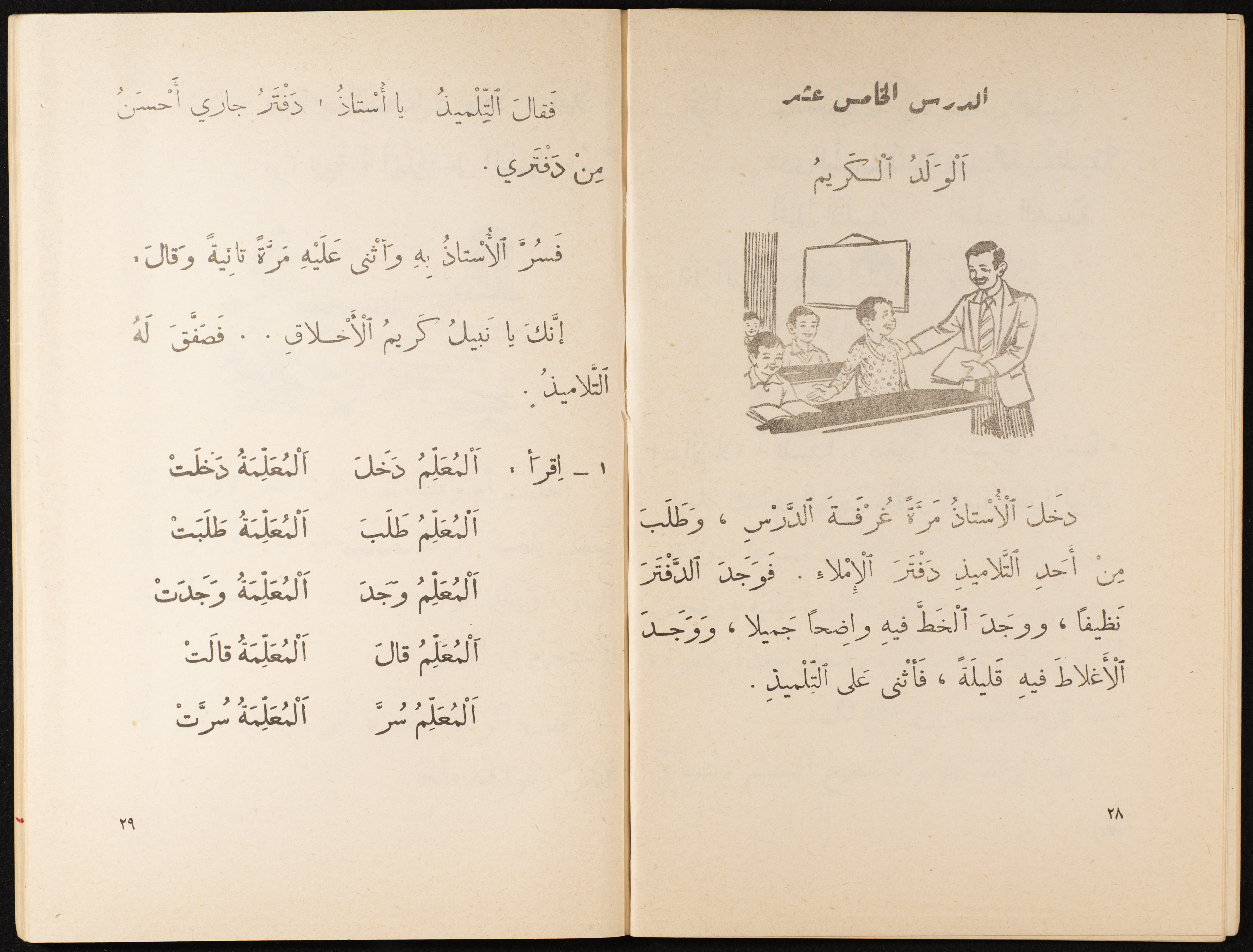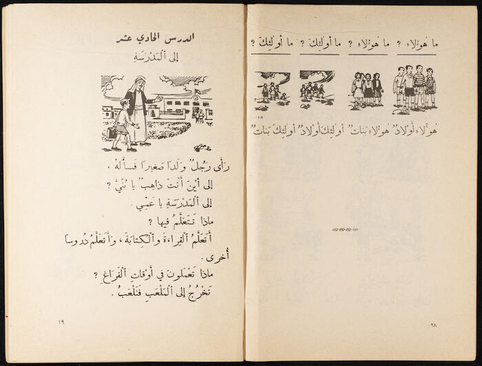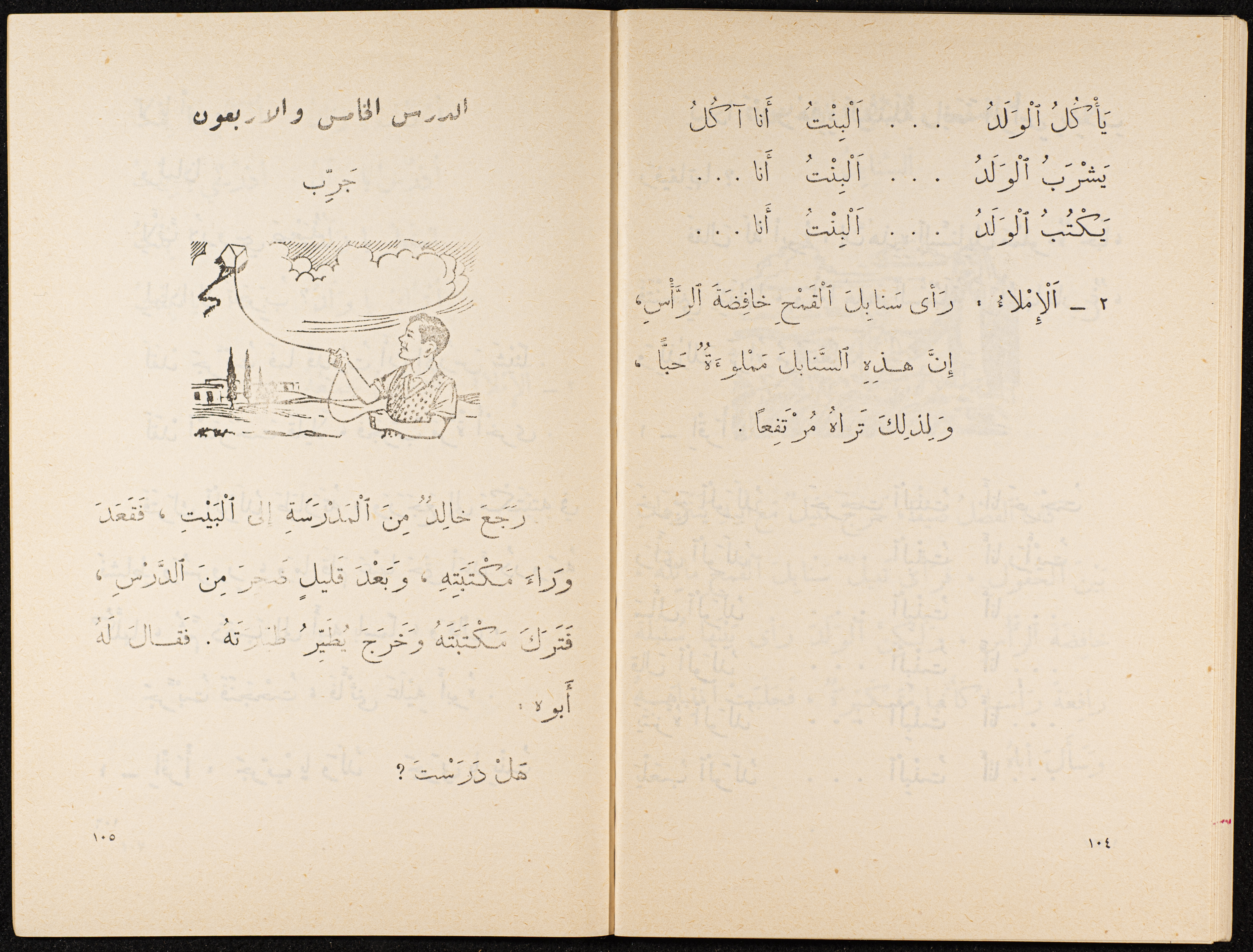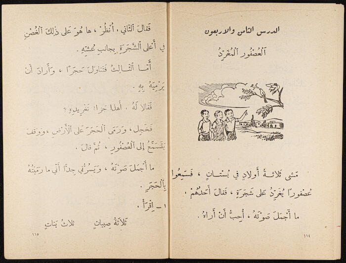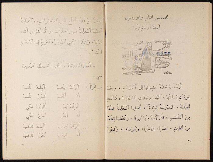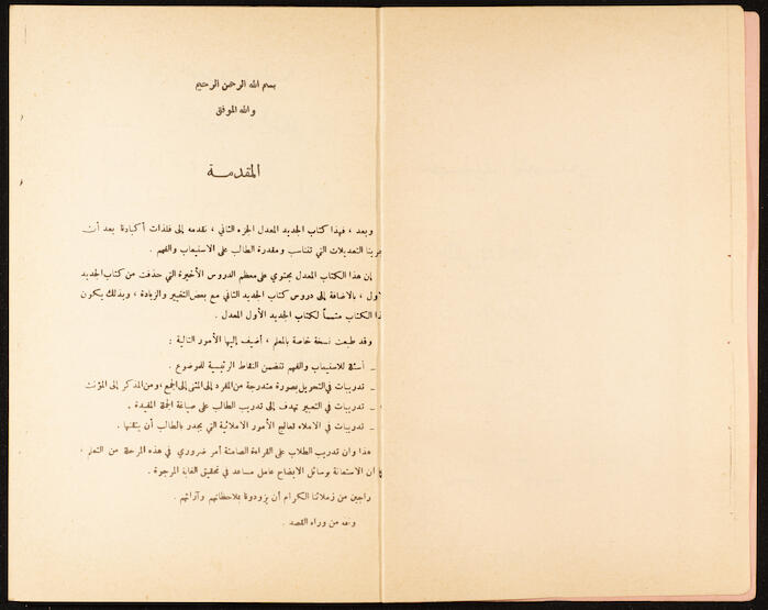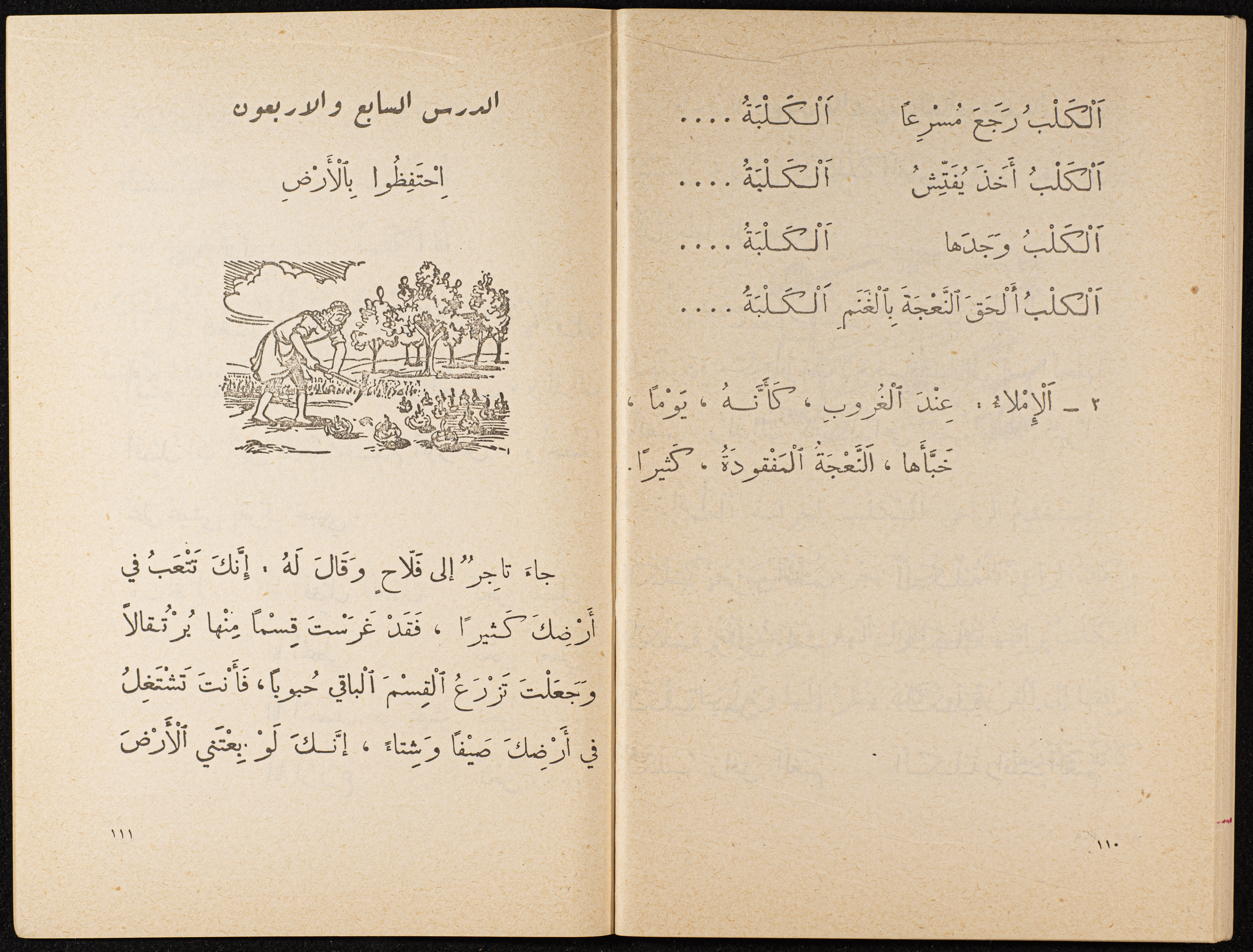 This issue of the second part of the book "Al-Jadeed Fil-Qeraa al-Arabeyyah" (the New in Arabic Reading) is by Khalil Sakakini was edited by a committee of Amin Fares Melhes, Fayez al-Ghul, Yasin Bseileh, Fahim Jbour and Tayseer al-Bustami and it is the version adopted by the Israeli Directorate of Education Affairs in the West Bank .