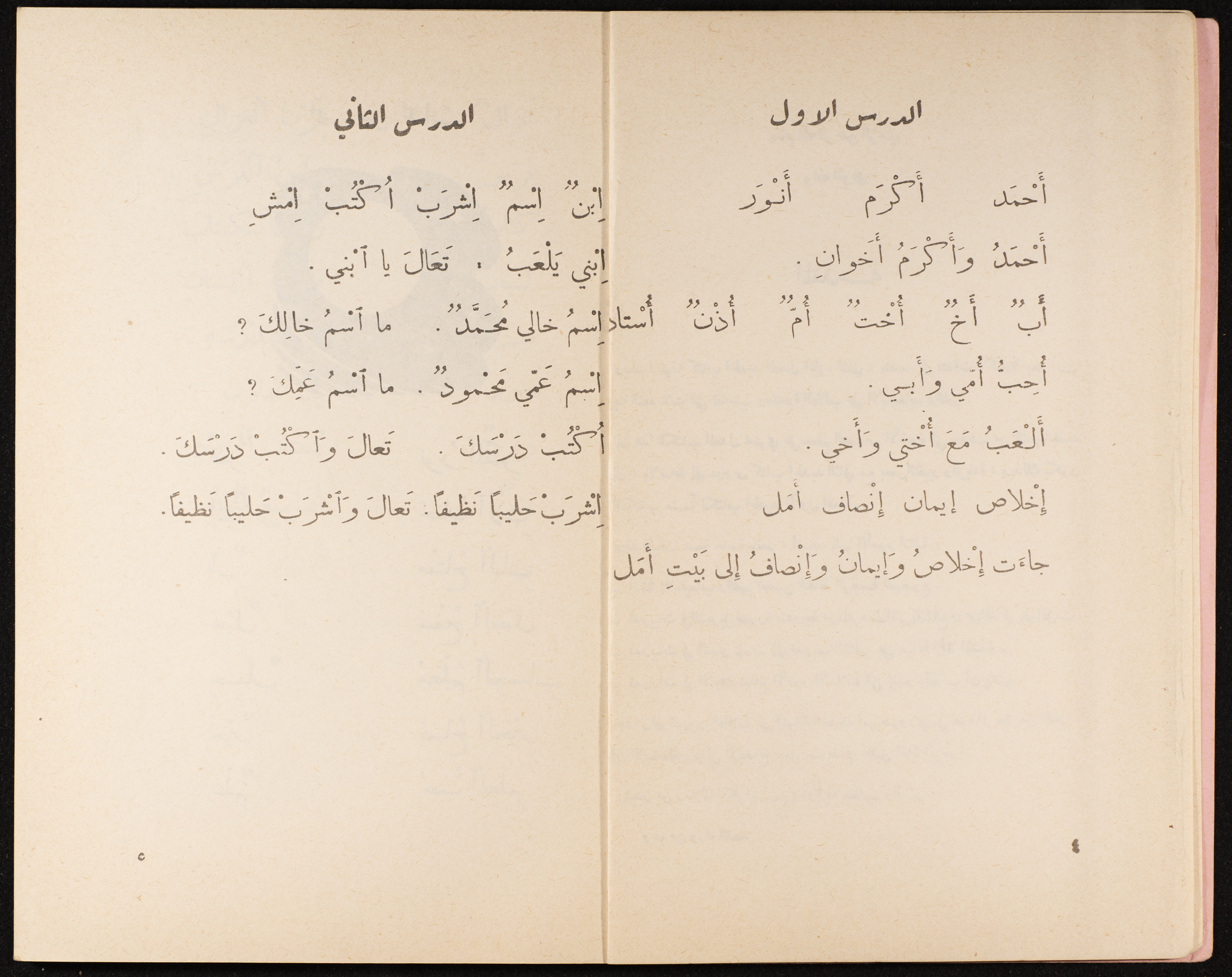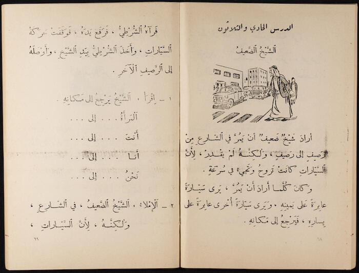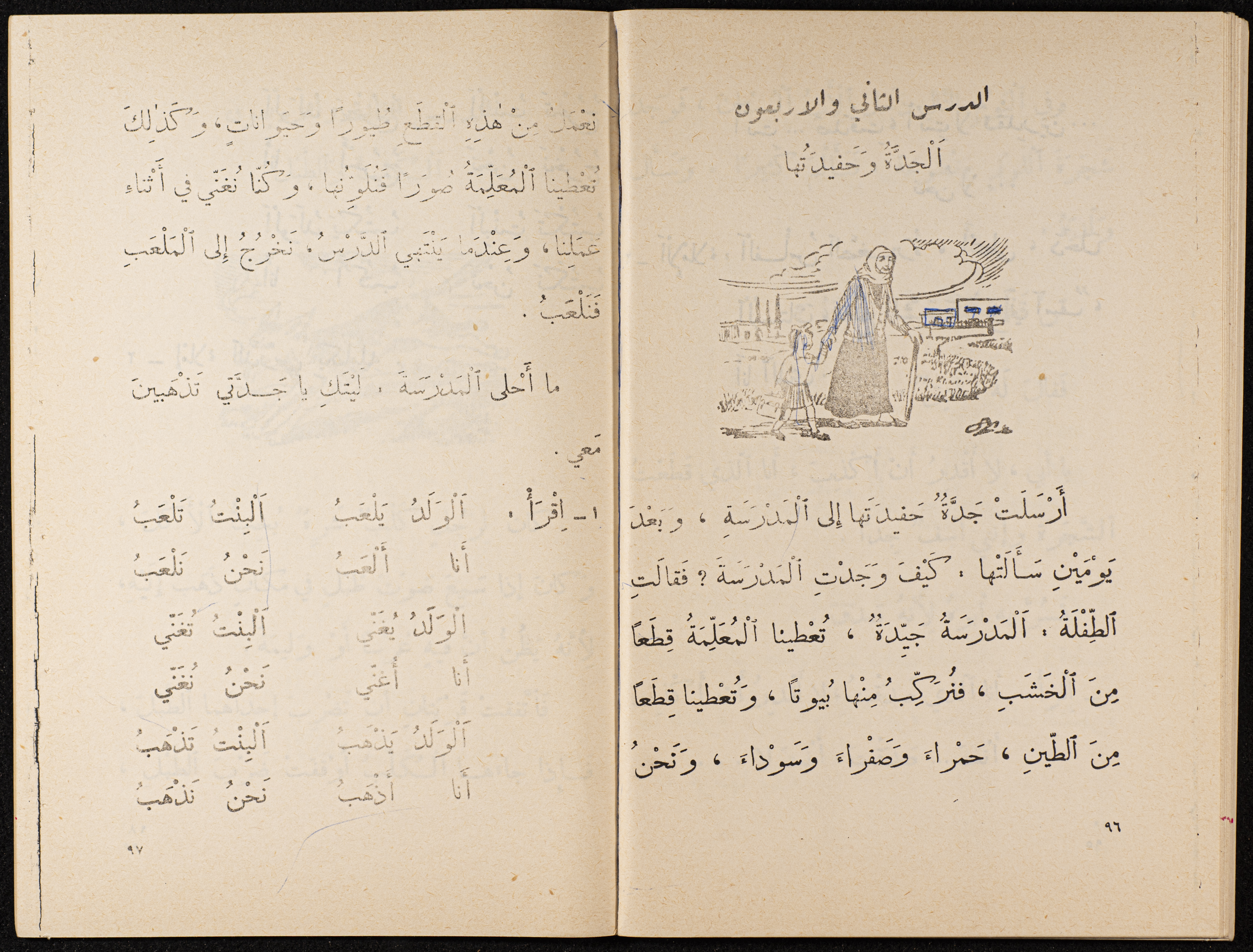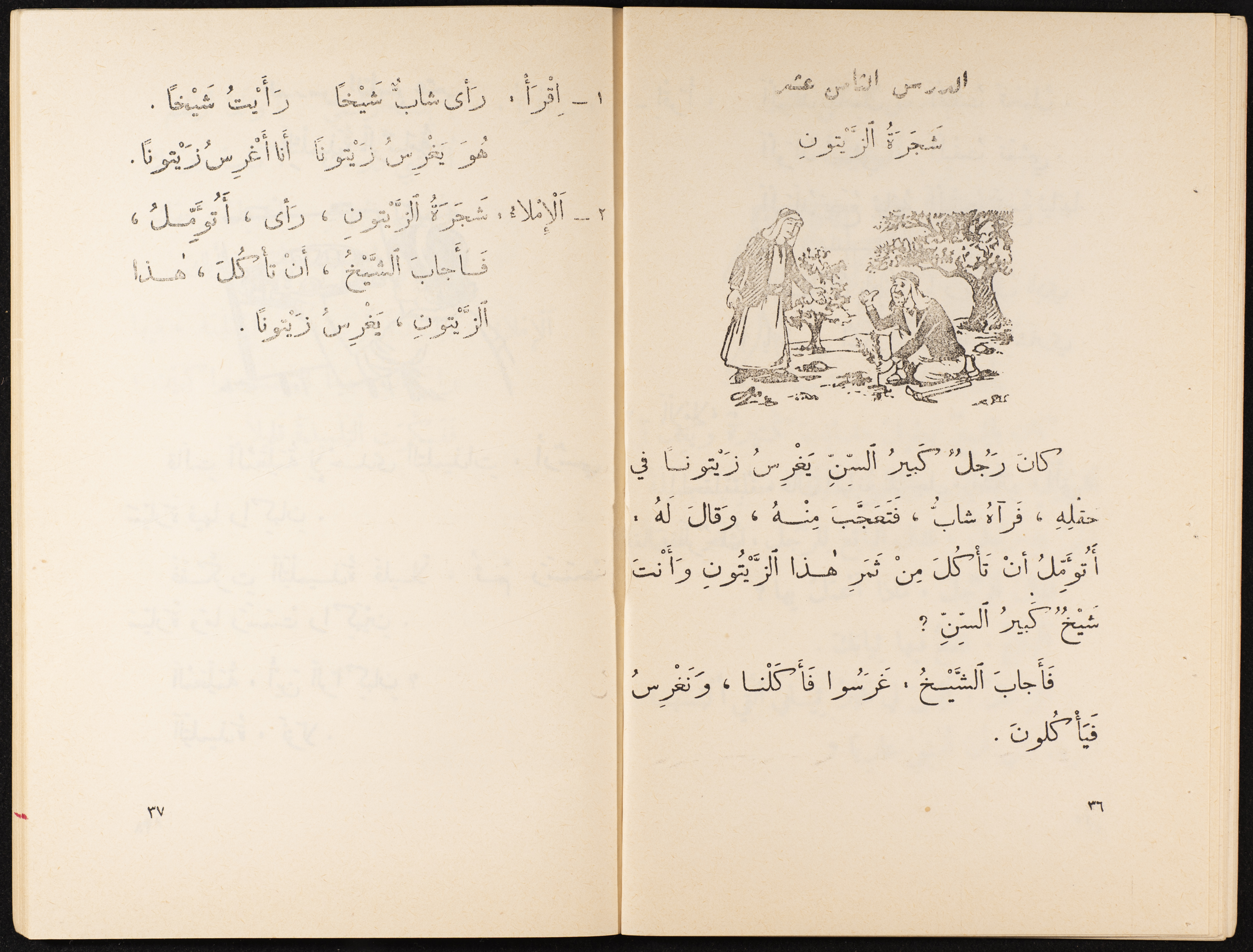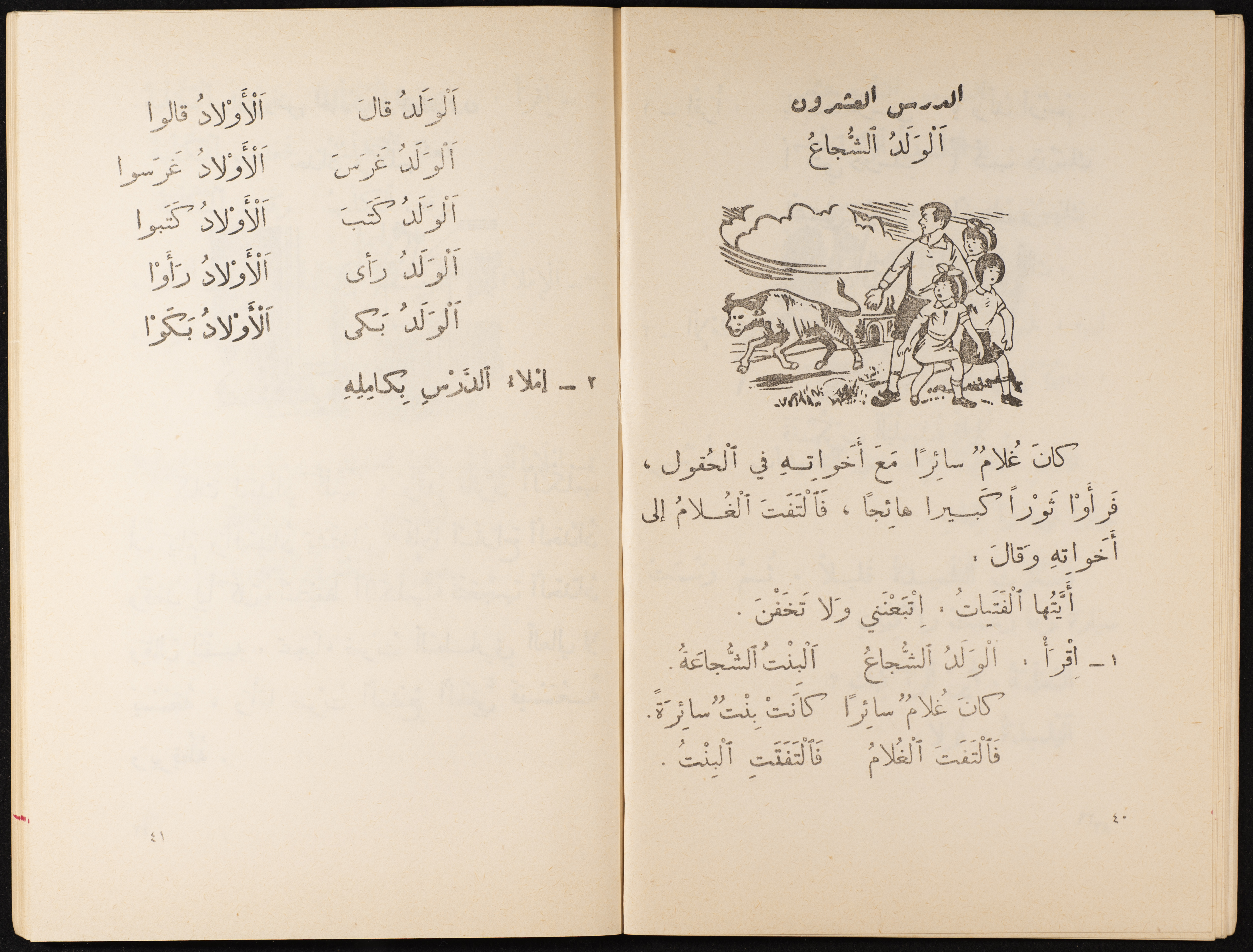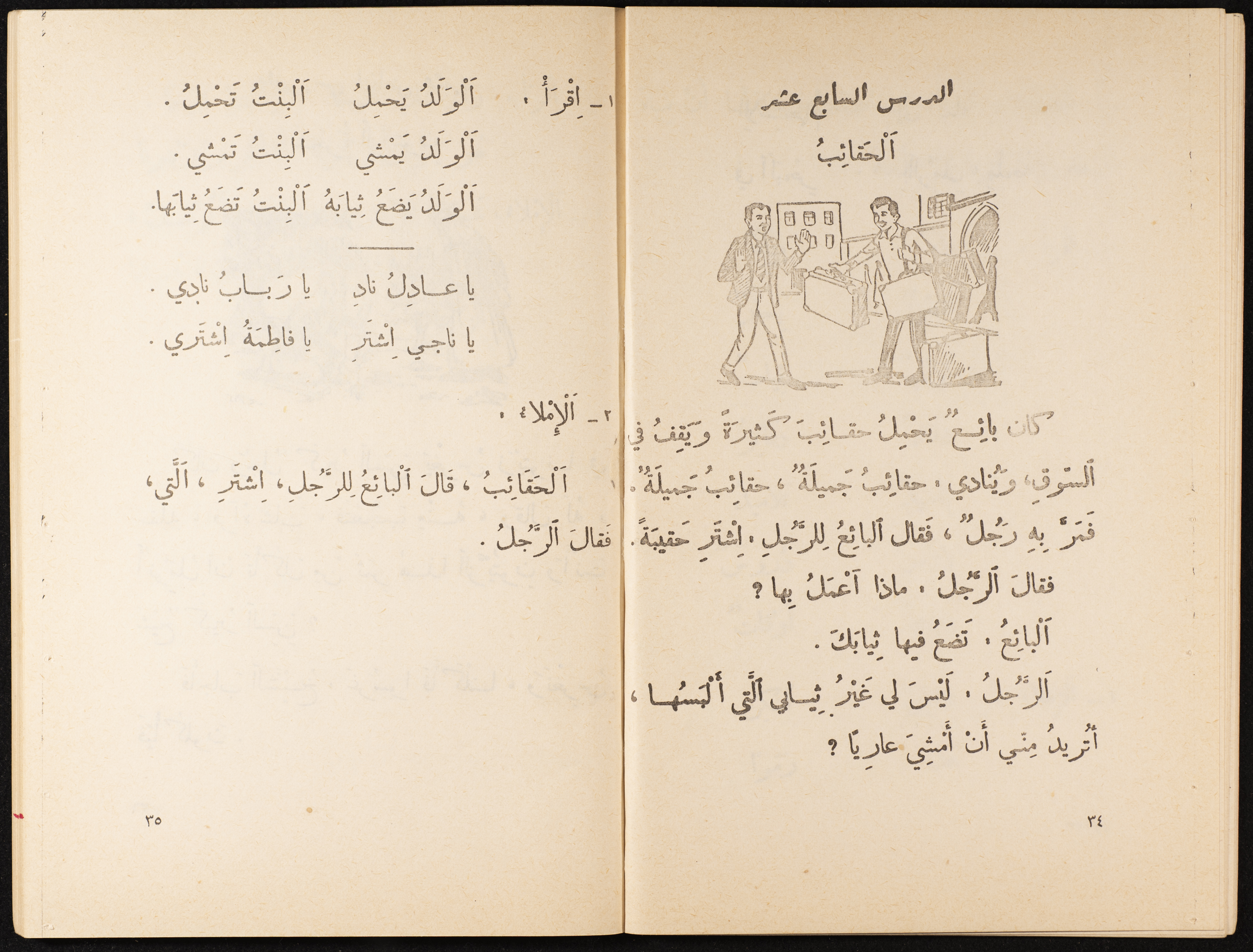 This issue of the second part of the book "Al-Jadeed Fil-Qeraa al-Arabeyyah" (the New in Arabic Reading) is by Khalil Sakakini was edited by a committee of Amin Fares Melhes, Fayez al-Ghul, Yasin Bseileh, Fahim Jbour and Tayseer al-Bustami and it is the version adopted by the Israeli Directorate of Education Affairs in the West Bank .