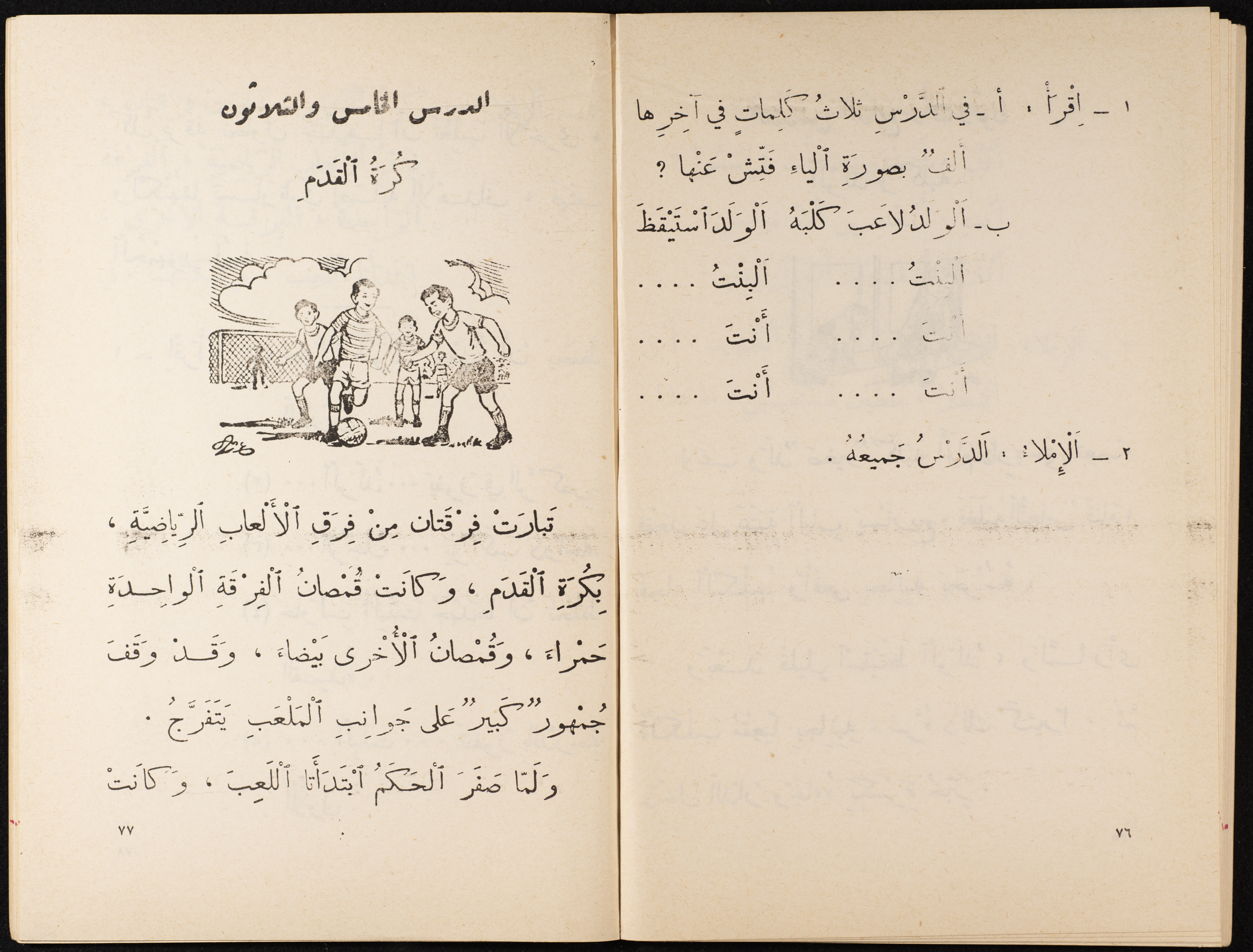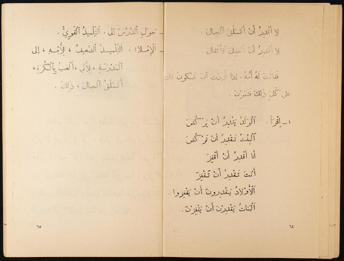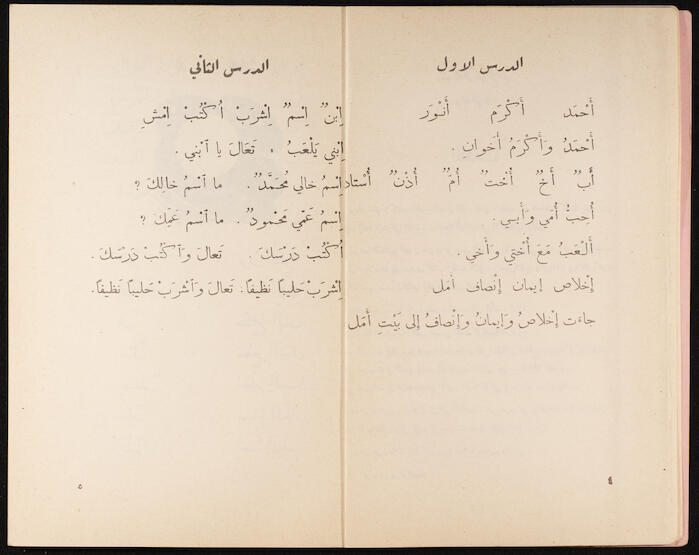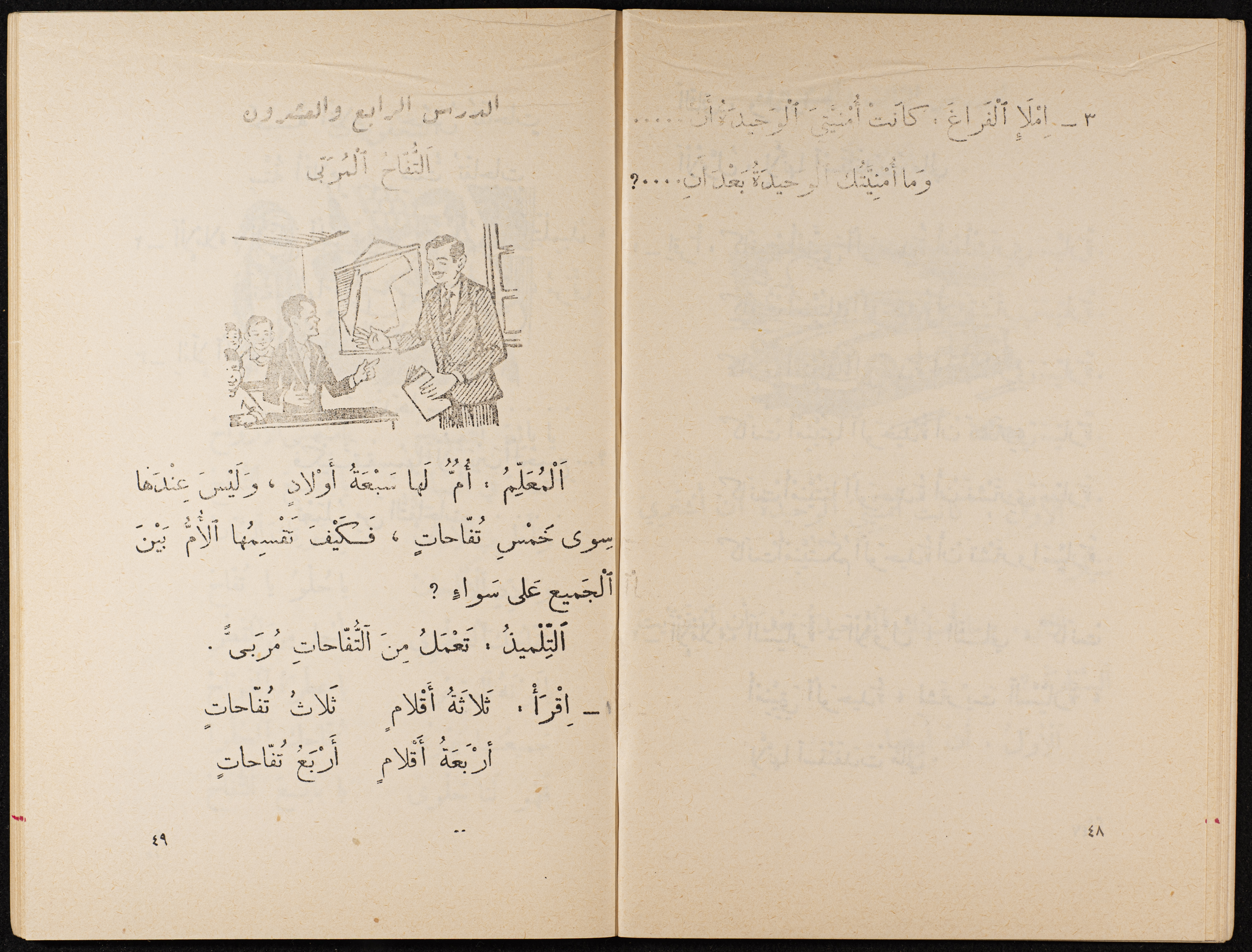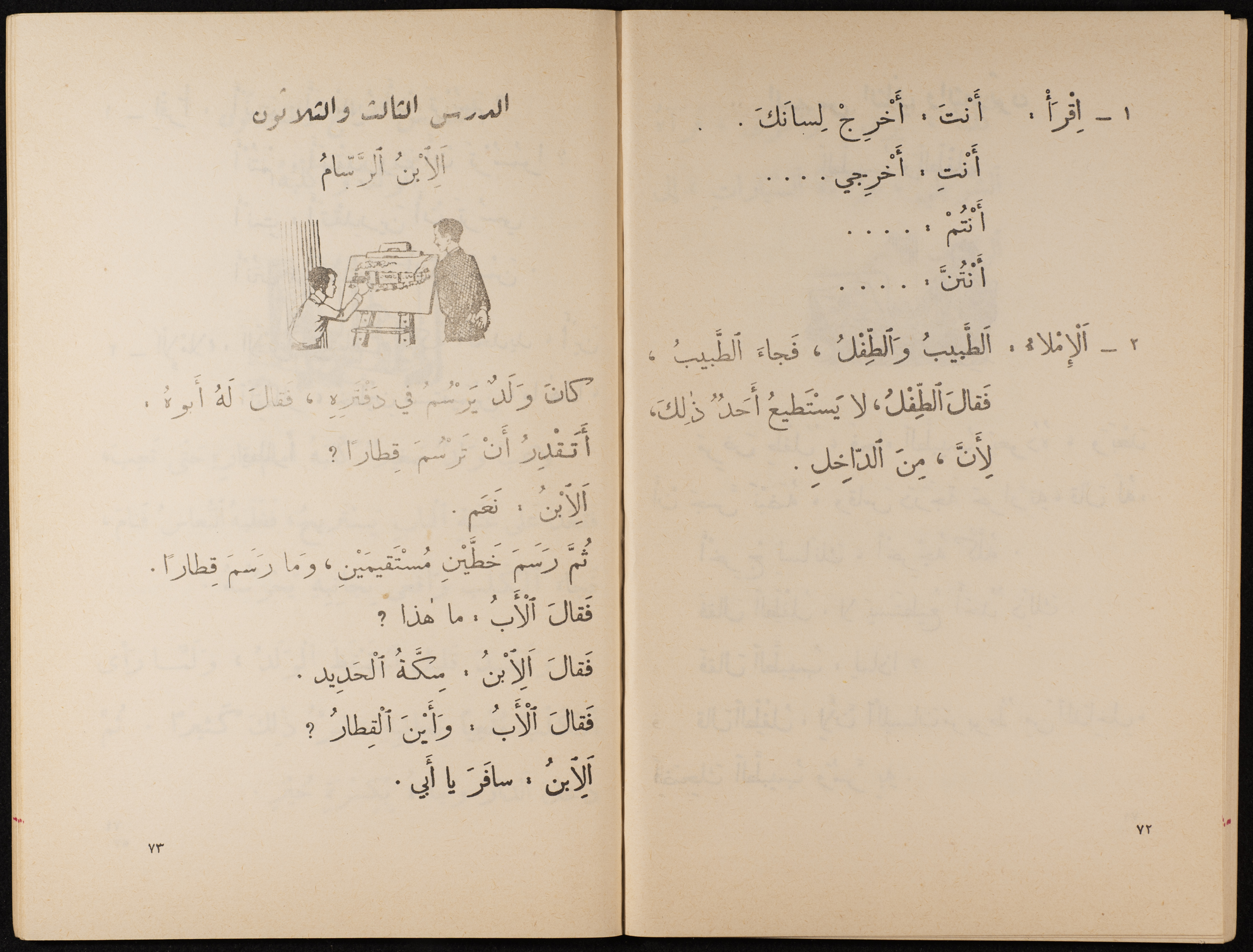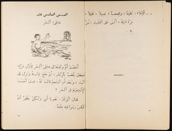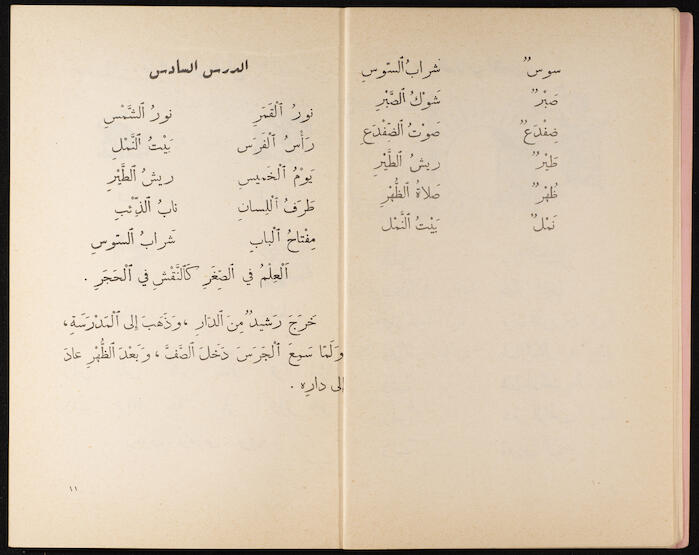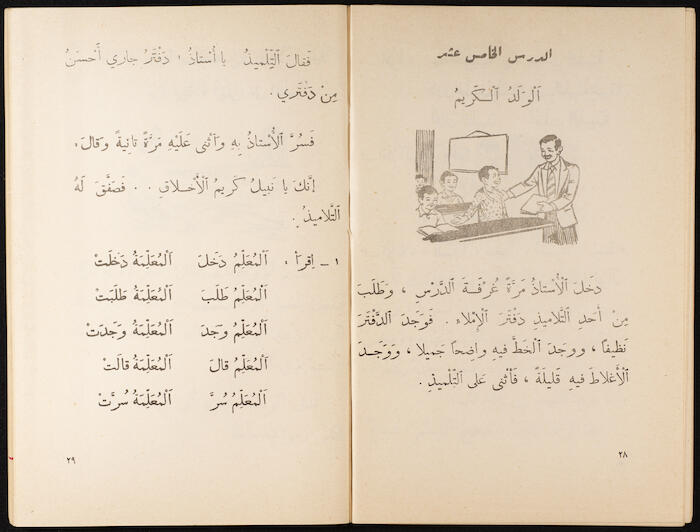 This issue of the second part of the book "Al-Jadeed Fil-Qeraa al-Arabeyyah" (the New in Arabic Reading) is by Khalil Sakakini was edited by a committee of Amin Fares Melhes, Fayez al-Ghul, Yasin Bseileh, Fahim Jbour and Tayseer al-Bustami and it is the version adopted by the Israeli Directorate of Education Affairs in the West Bank .
