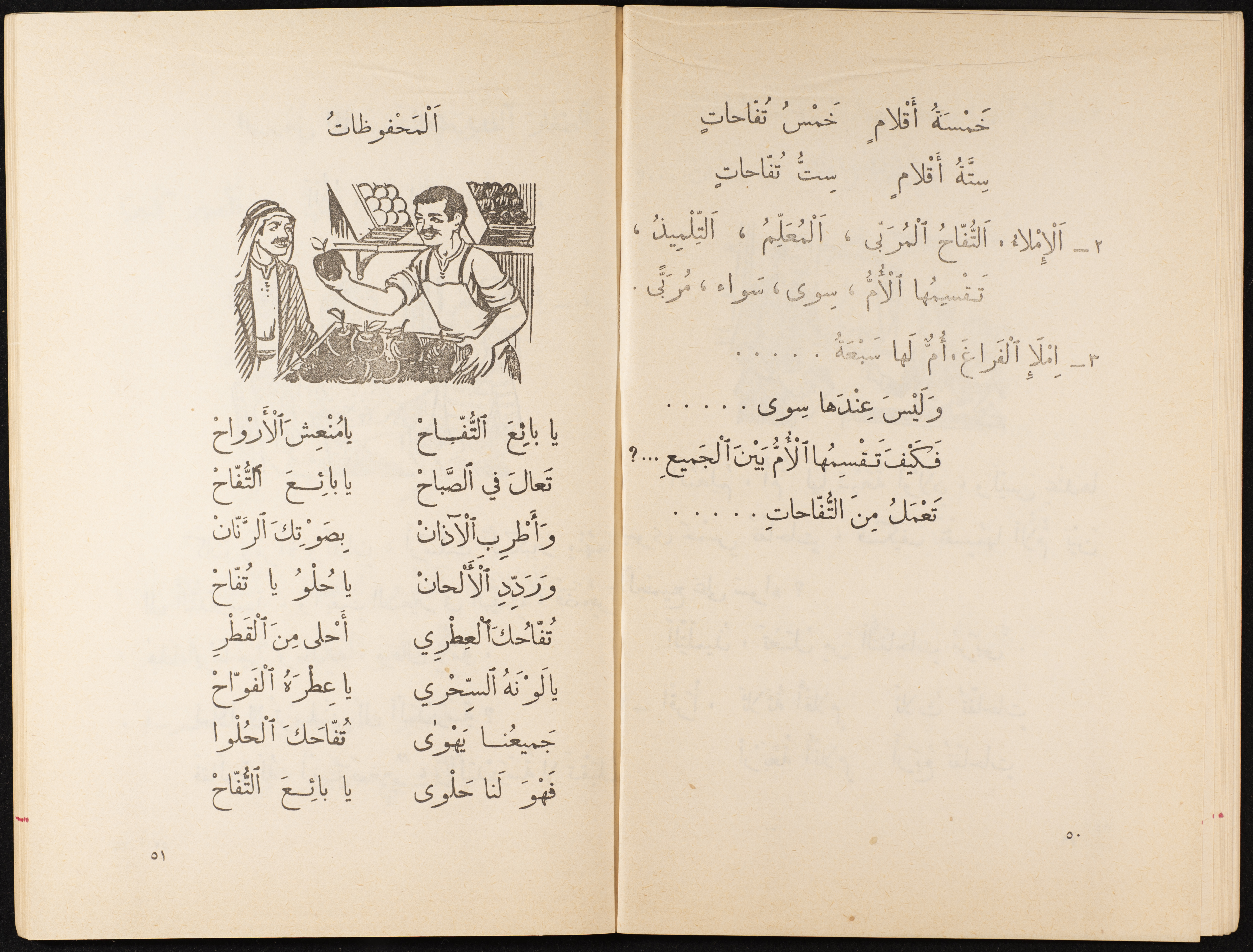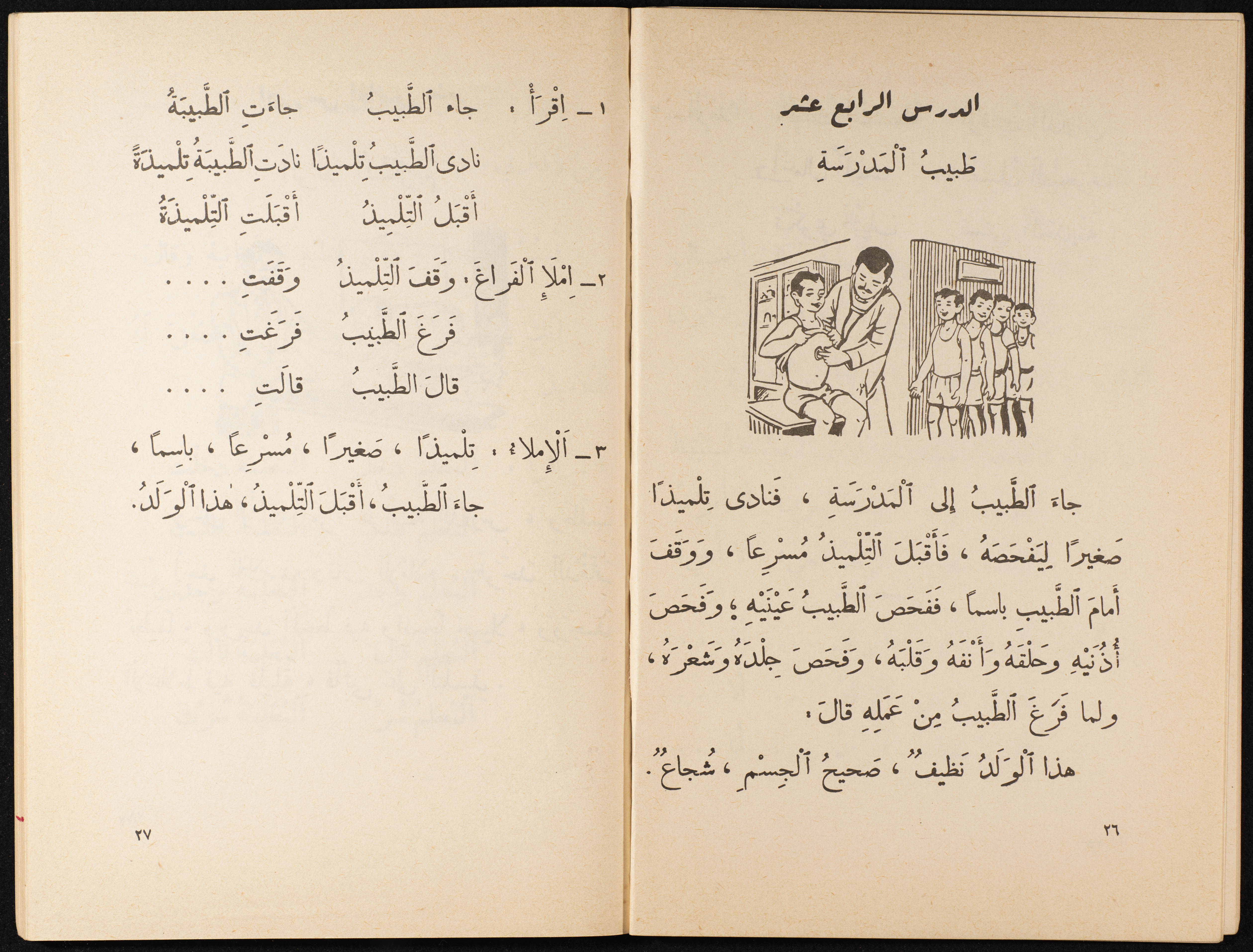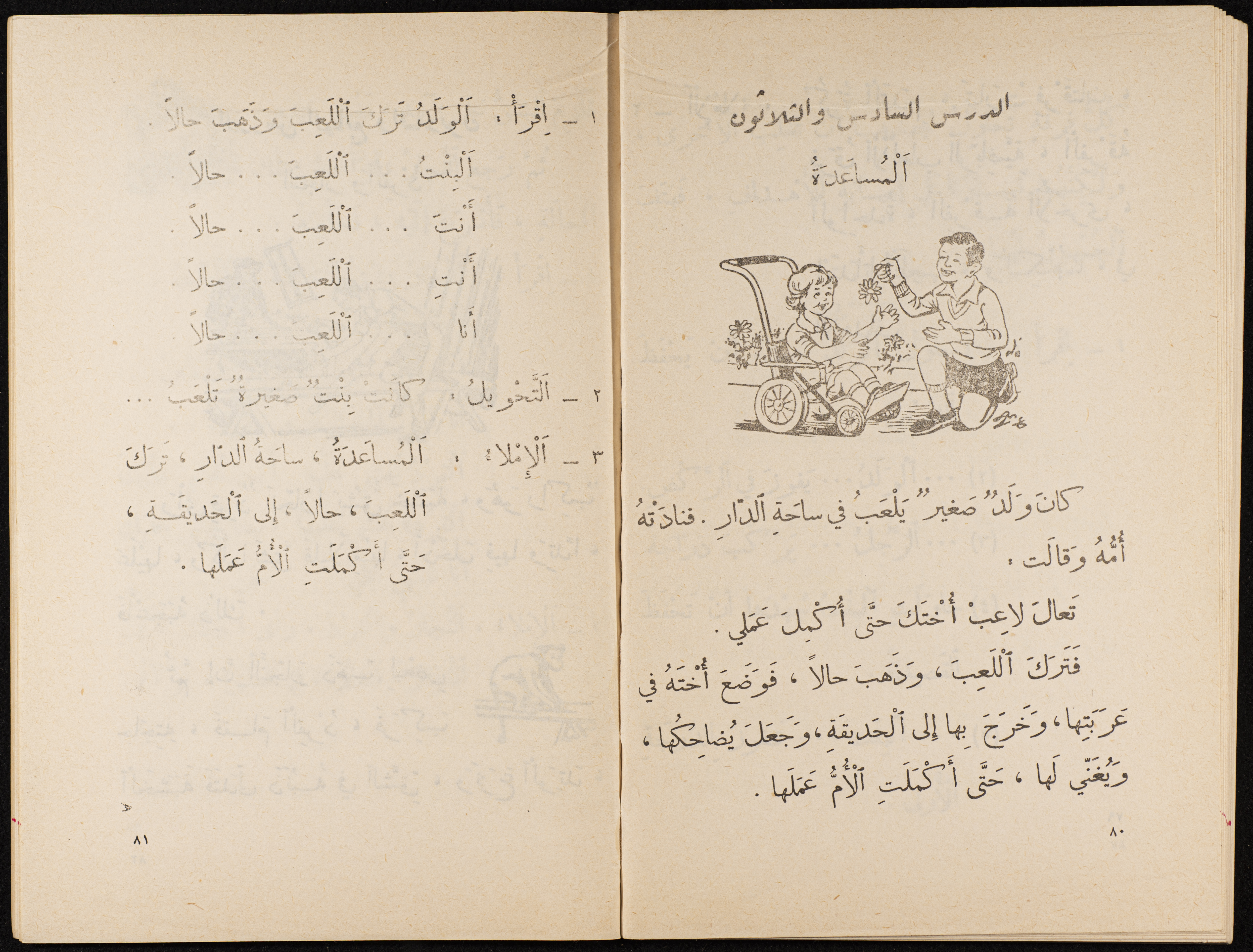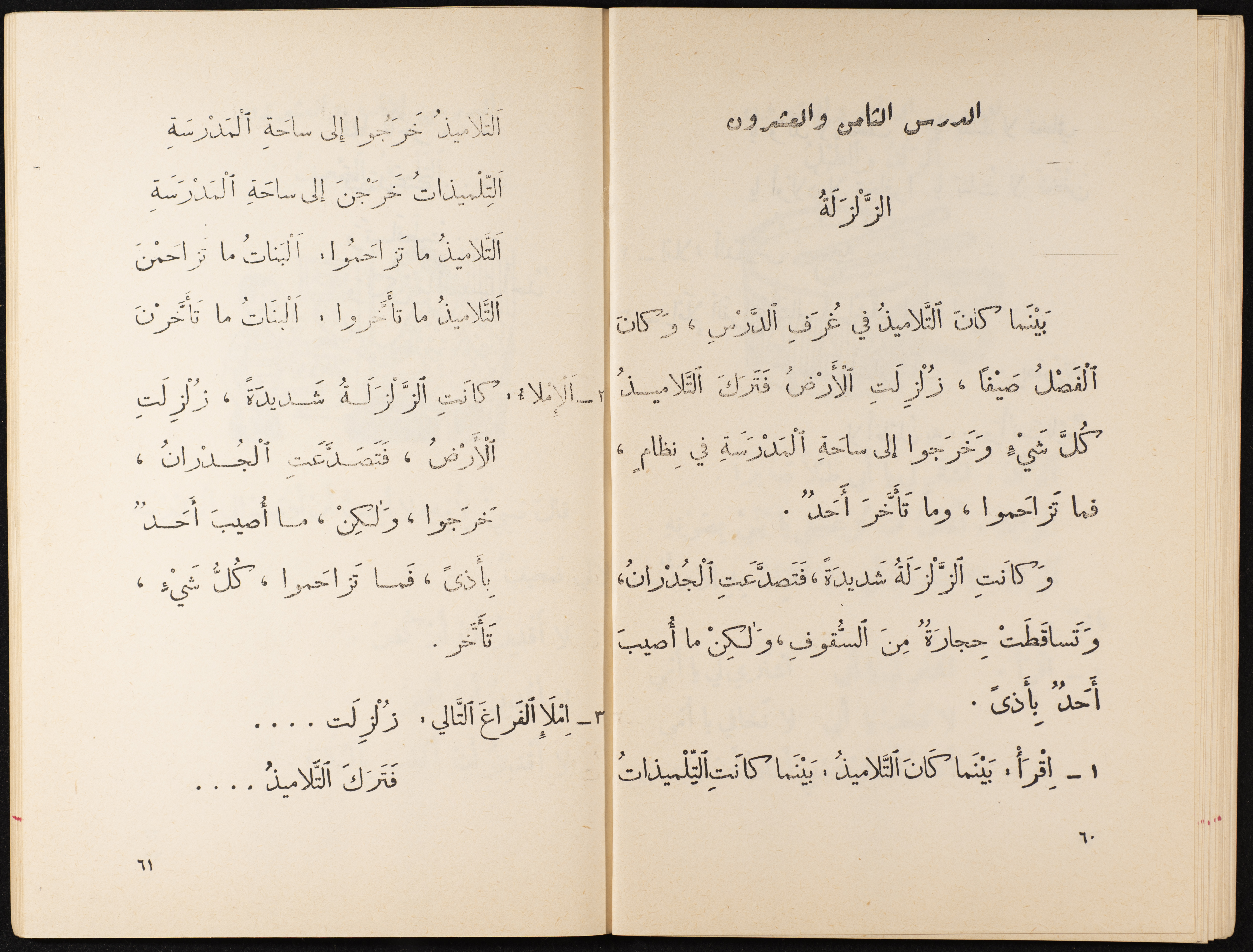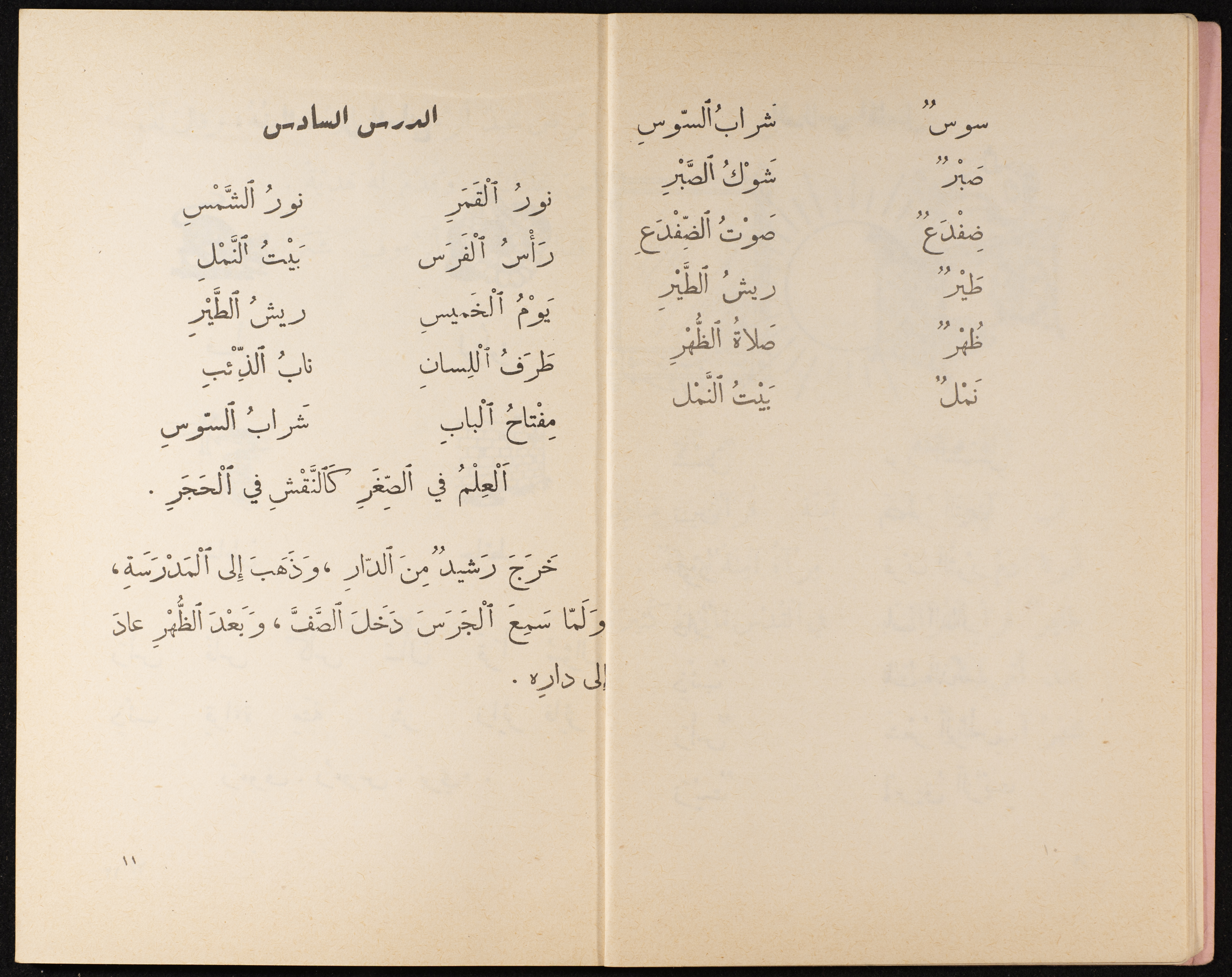 This issue of the second part of the book "Al-Jadeed Fil-Qeraa al-Arabeyyah" (the New in Arabic Reading) is by Khalil Sakakini was edited by a committee of Amin Fares Melhes, Fayez al-Ghul, Yasin Bseileh, Fahim Jbour and Tayseer al-Bustami and it is the version adopted by the Israeli Directorate of Education Affairs in the West Bank .