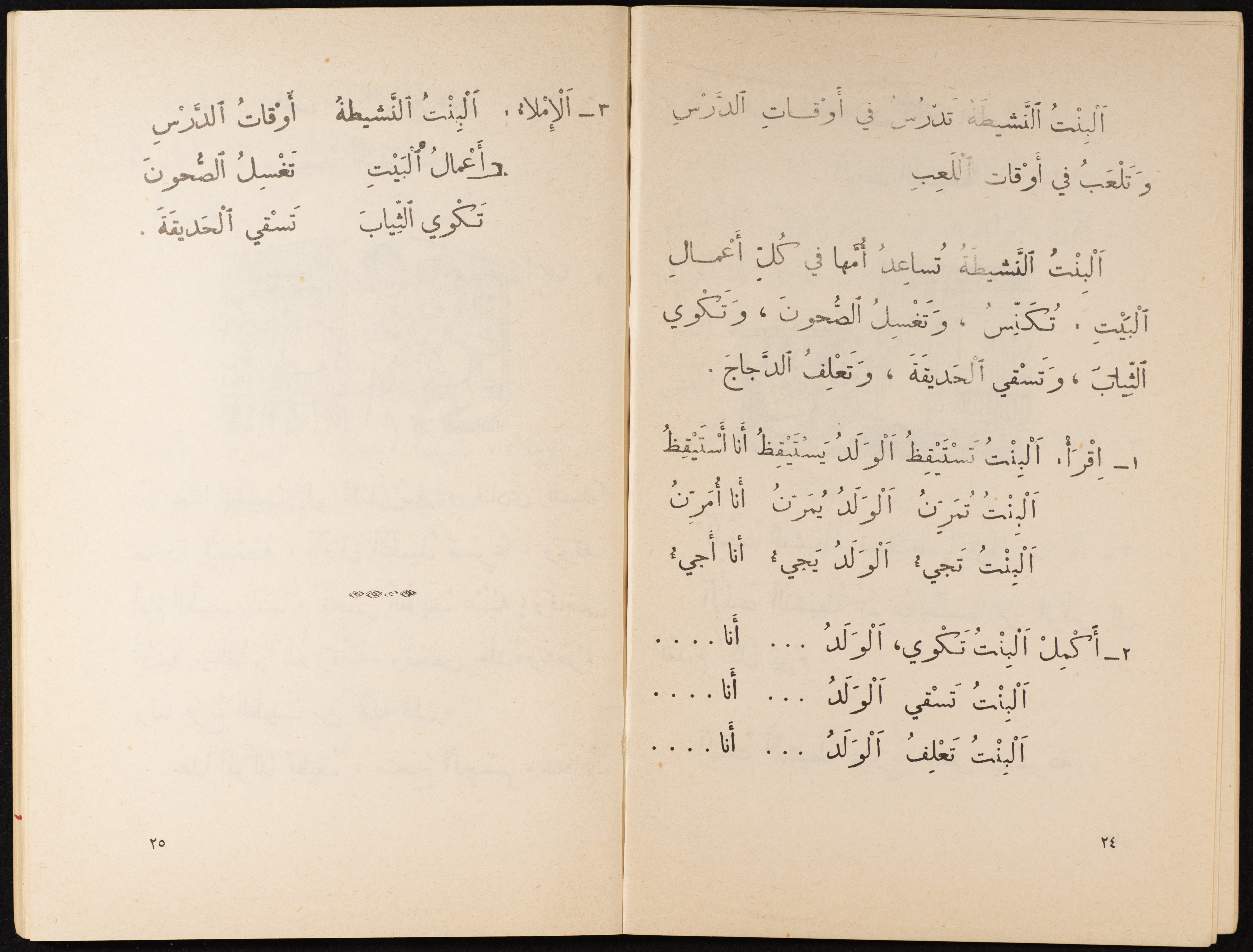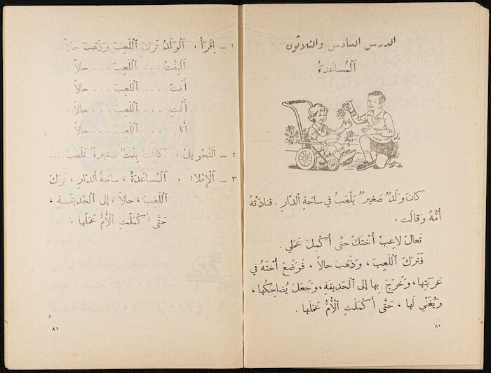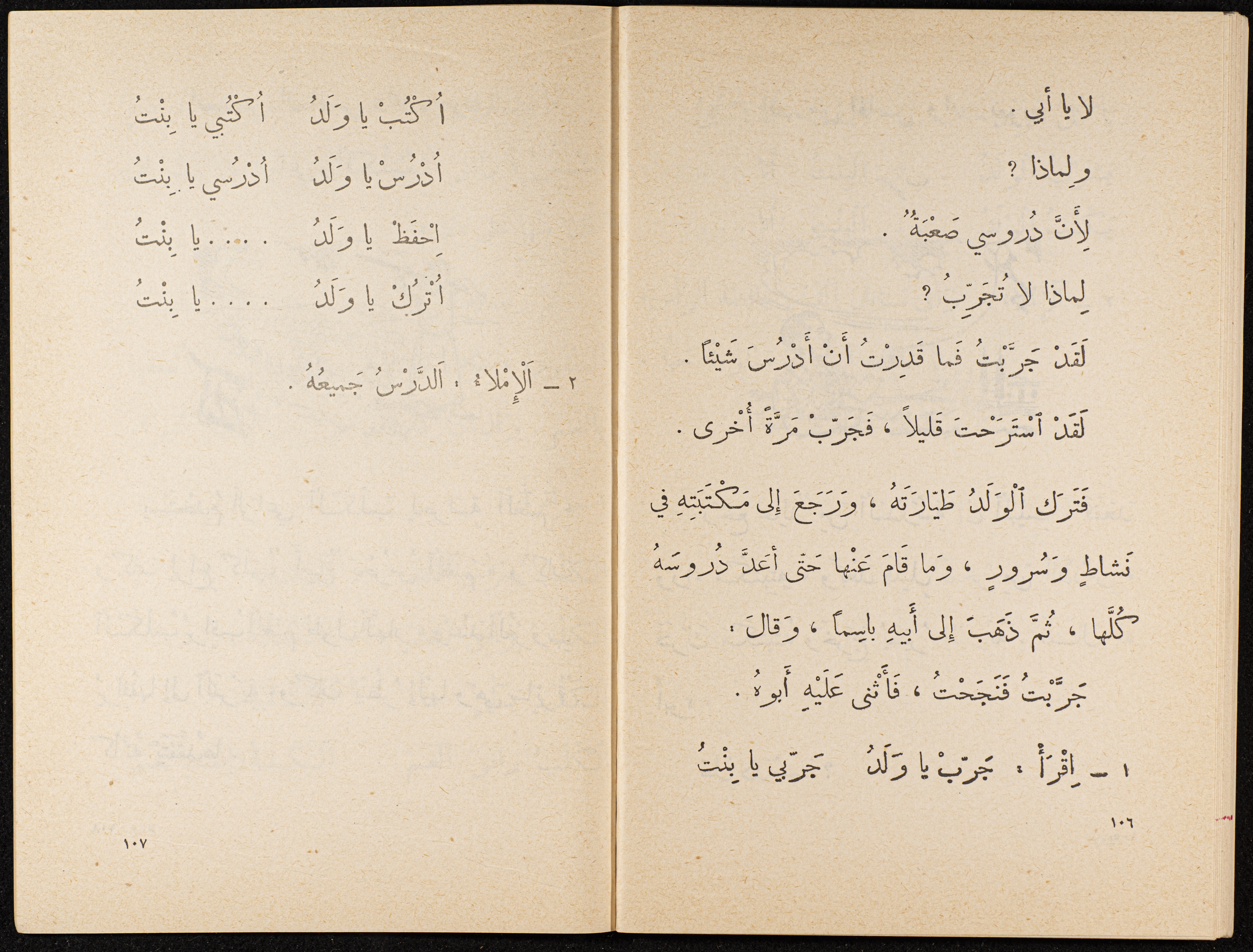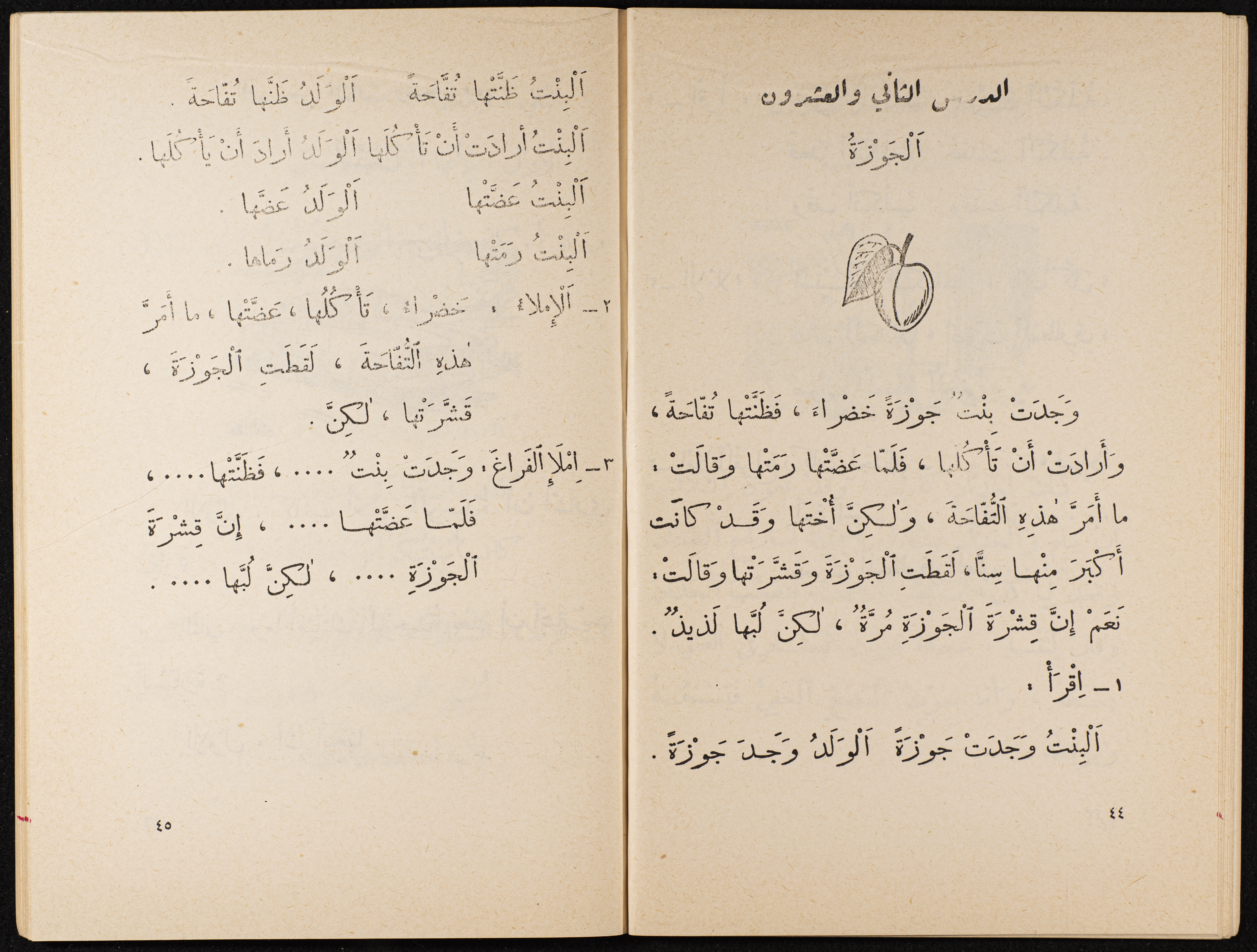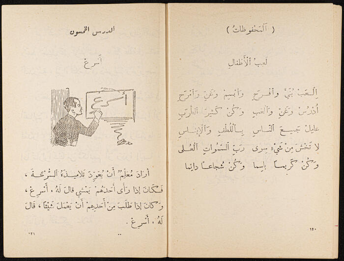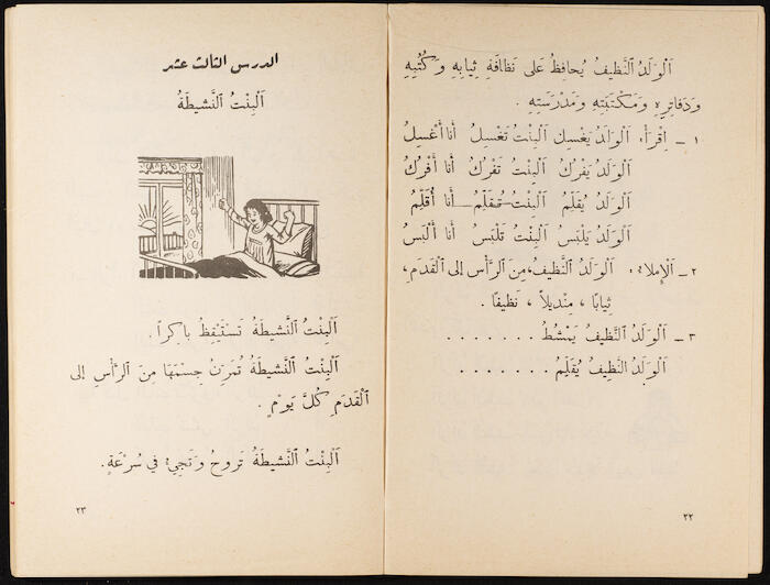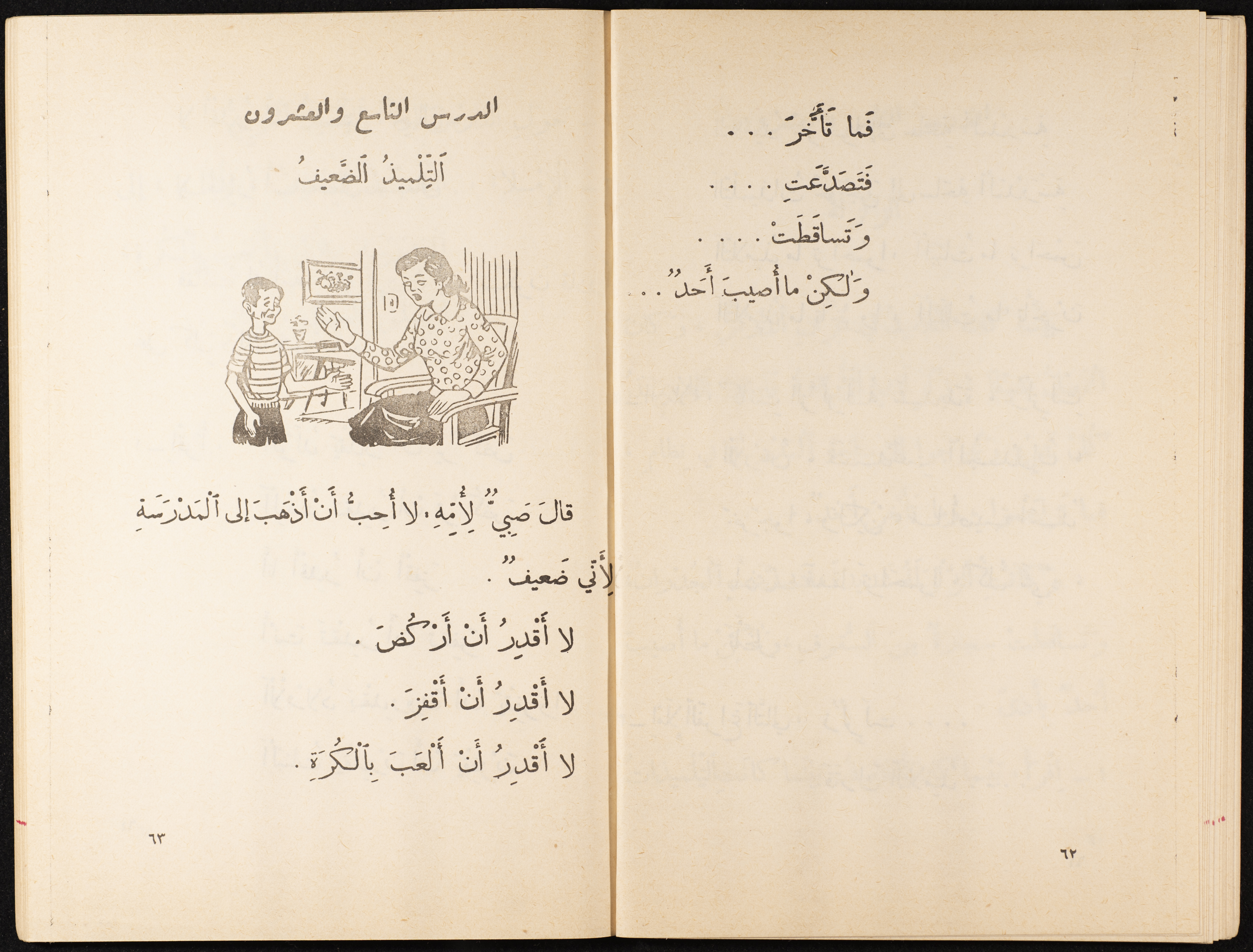 This issue of the second part of the book "Al-Jadeed Fil-Qeraa al-Arabeyyah" (the New in Arabic Reading) is by Khalil Sakakini was edited by a committee of Amin Fares Melhes, Fayez al-Ghul, Yasin Bseileh, Fahim Jbour and Tayseer al-Bustami and it is the version adopted by the Israeli Directorate of Education Affairs in the West Bank .