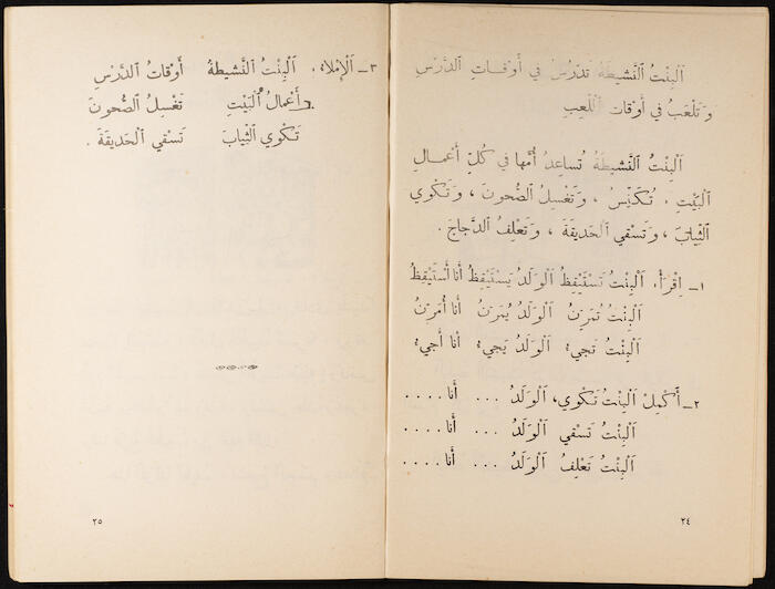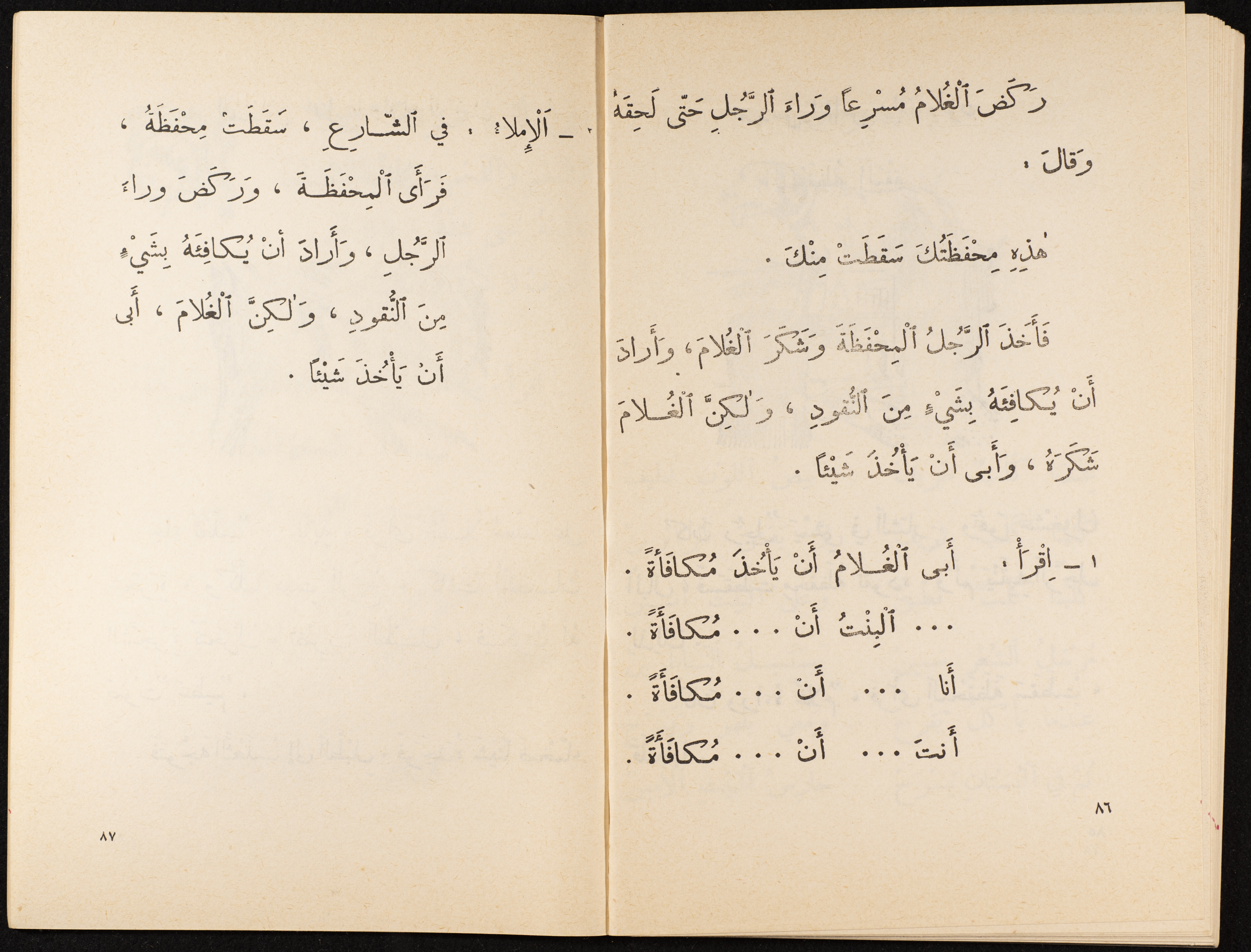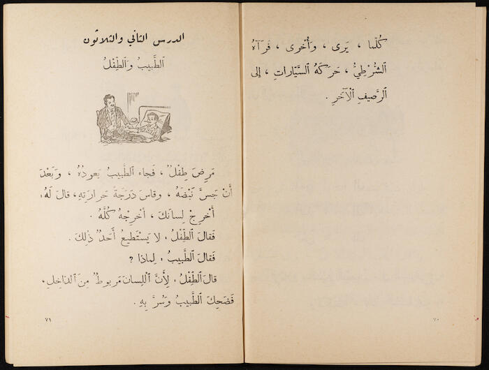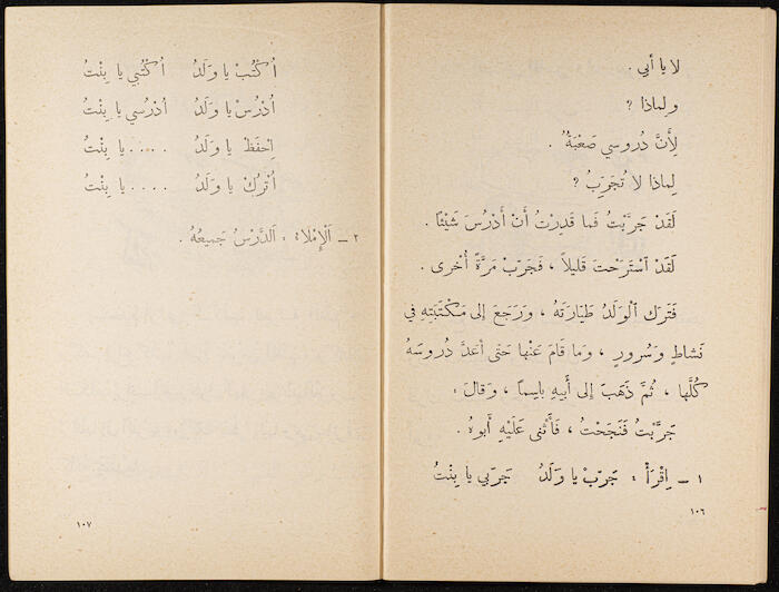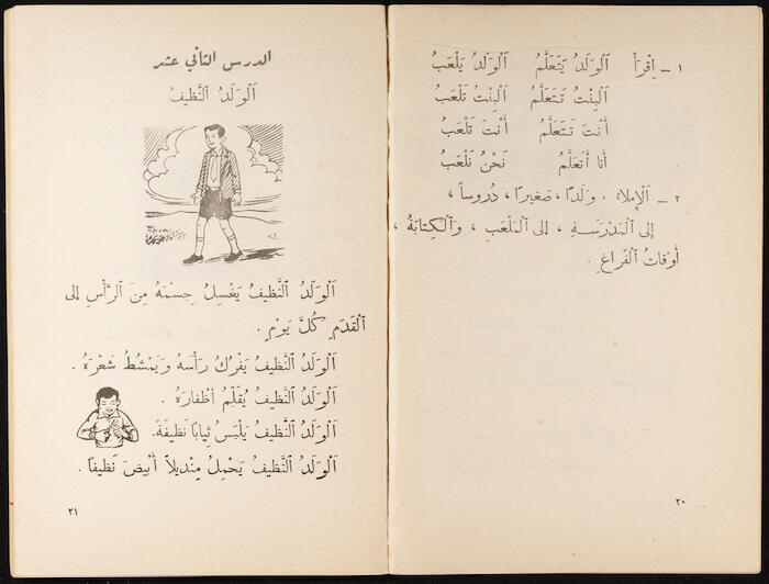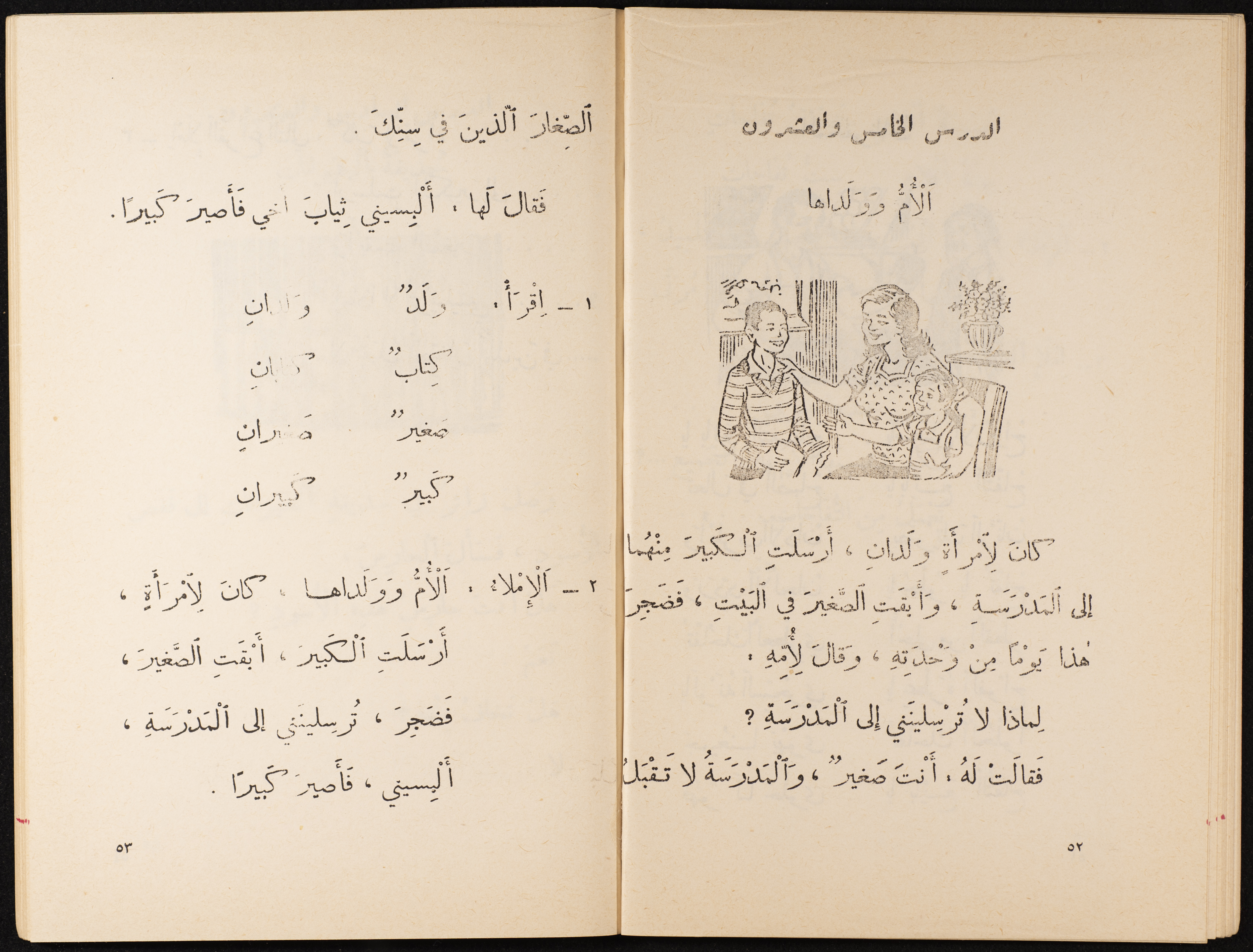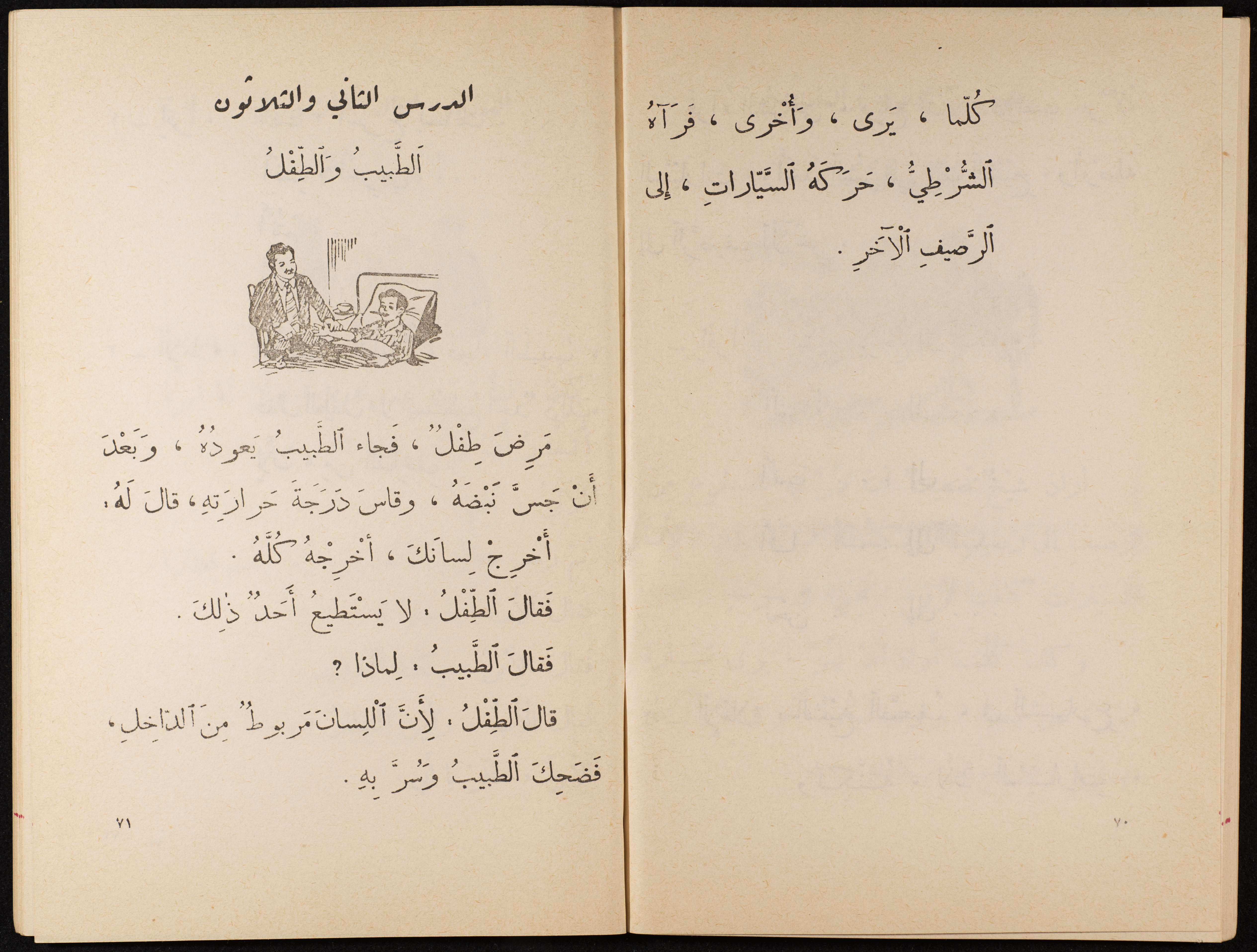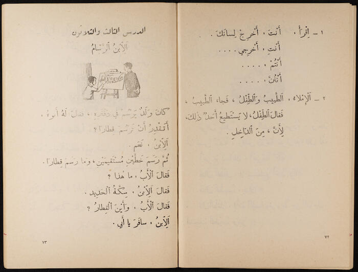 This issue of the second part of the book "Al-Jadeed Fil-Qeraa al-Arabeyyah" (the New in Arabic Reading) is by Khalil Sakakini was edited by a committee of Amin Fares Melhes, Fayez al-Ghul, Yasin Bseileh, Fahim Jbour and Tayseer al-Bustami and it is the version adopted by the Israeli Directorate of Education Affairs in the West Bank .
