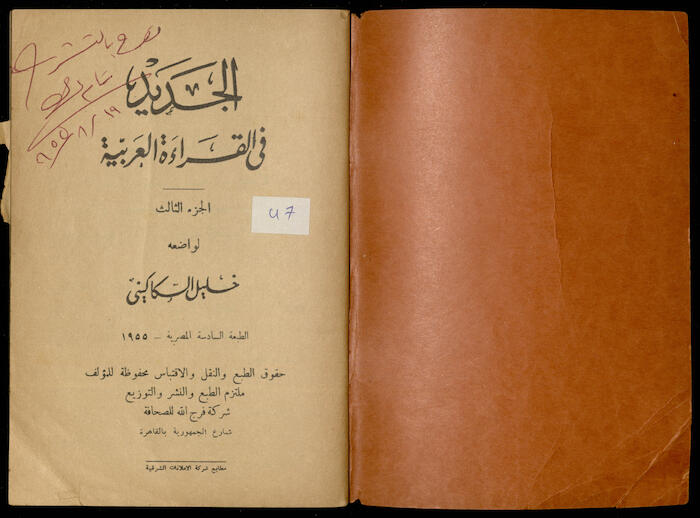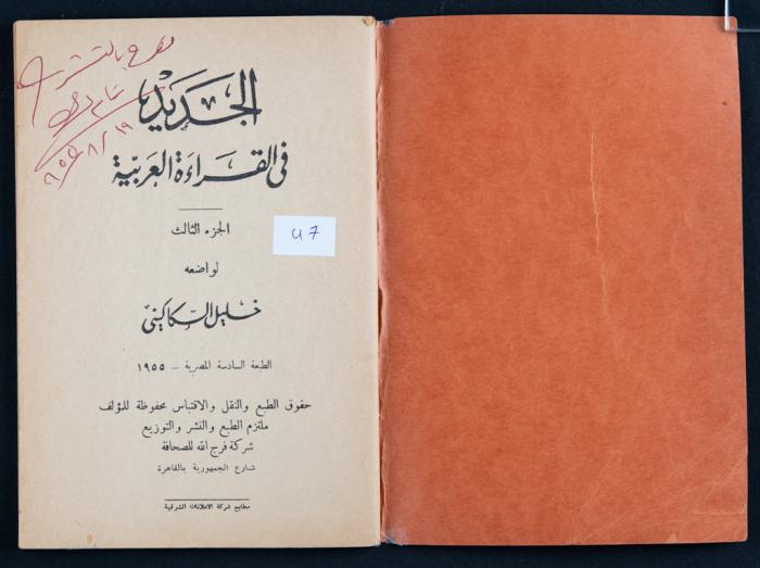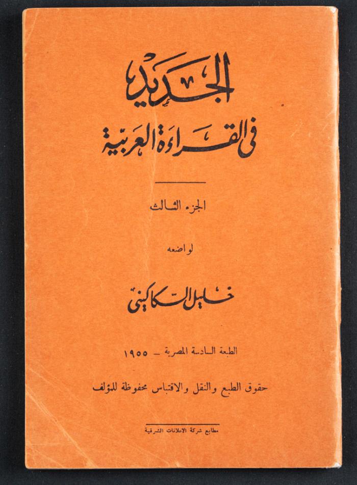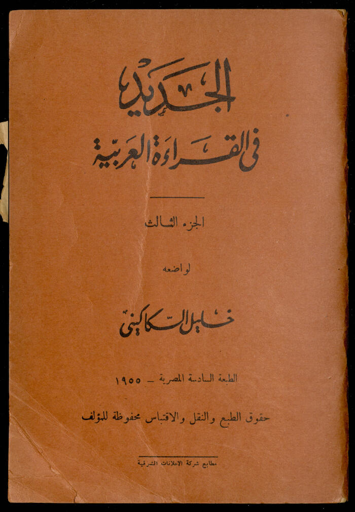 الطبعة السادسة المصرية من الجزء الثالث من كتاب "الجديد في القراءة العربية" لخليل السكاكيني، صادرة عام 1955عن مطابع شركة الإعلانات الشرقية، ونشرتها شركة فرج الله للصحافة في القاهرة. يقوم الكتاب على مجموعة دروس قراءة موضوعة وفق أصول تعليمية تزاوج بين التحليل، والتشويق، والنقد، والتحويل، والتمثيل.