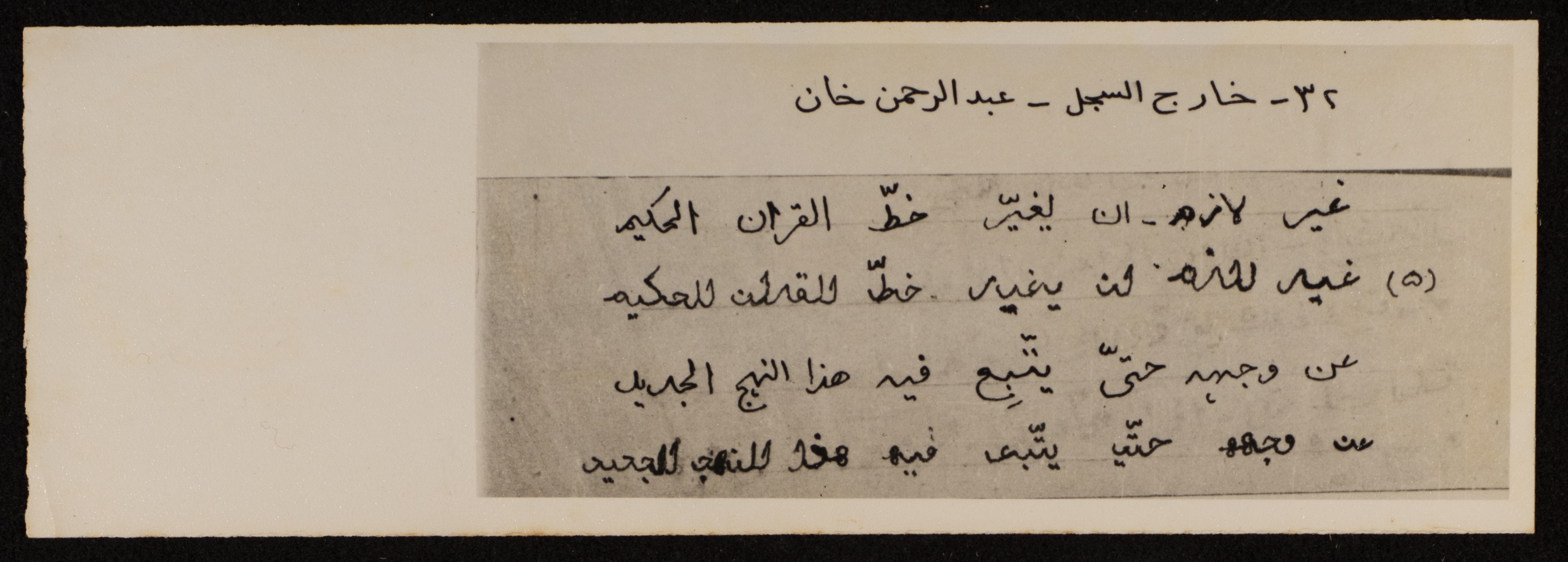نموذج اقتراح لتيسير الكتابة العربية قدمه عبد الرحمن خان إلى مجمع فؤاد الأول للغة العربية مؤتمره السنوي في القاهرة.