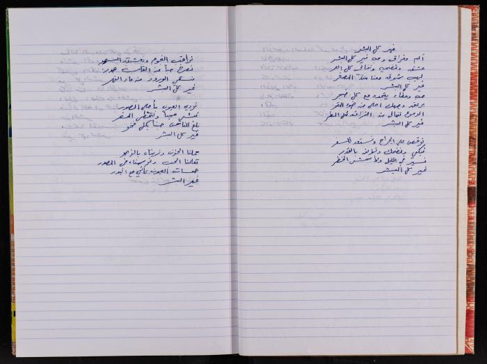 قصيدة مكتوبة بخط اليد بعنوان "غير كل البشر" للأسير أسامة محمد جبريل عودة في سجن بئر السبع عام 2004، حيث اعتقل بتاريخ 10 شباط 2001 وحكم عليه بالمؤبد بتهمة انتمائه إلى كتائب شهداء الأقصى.