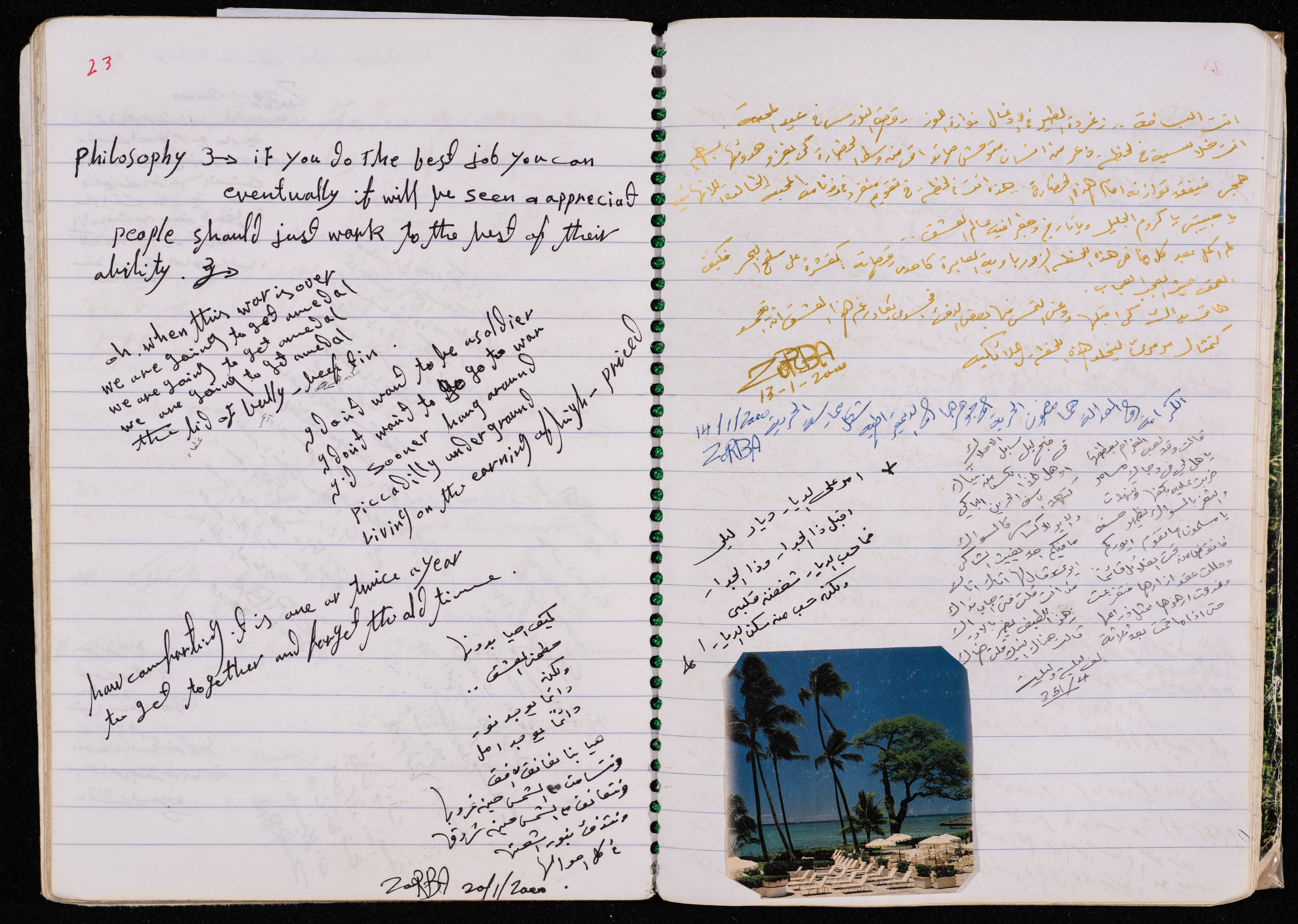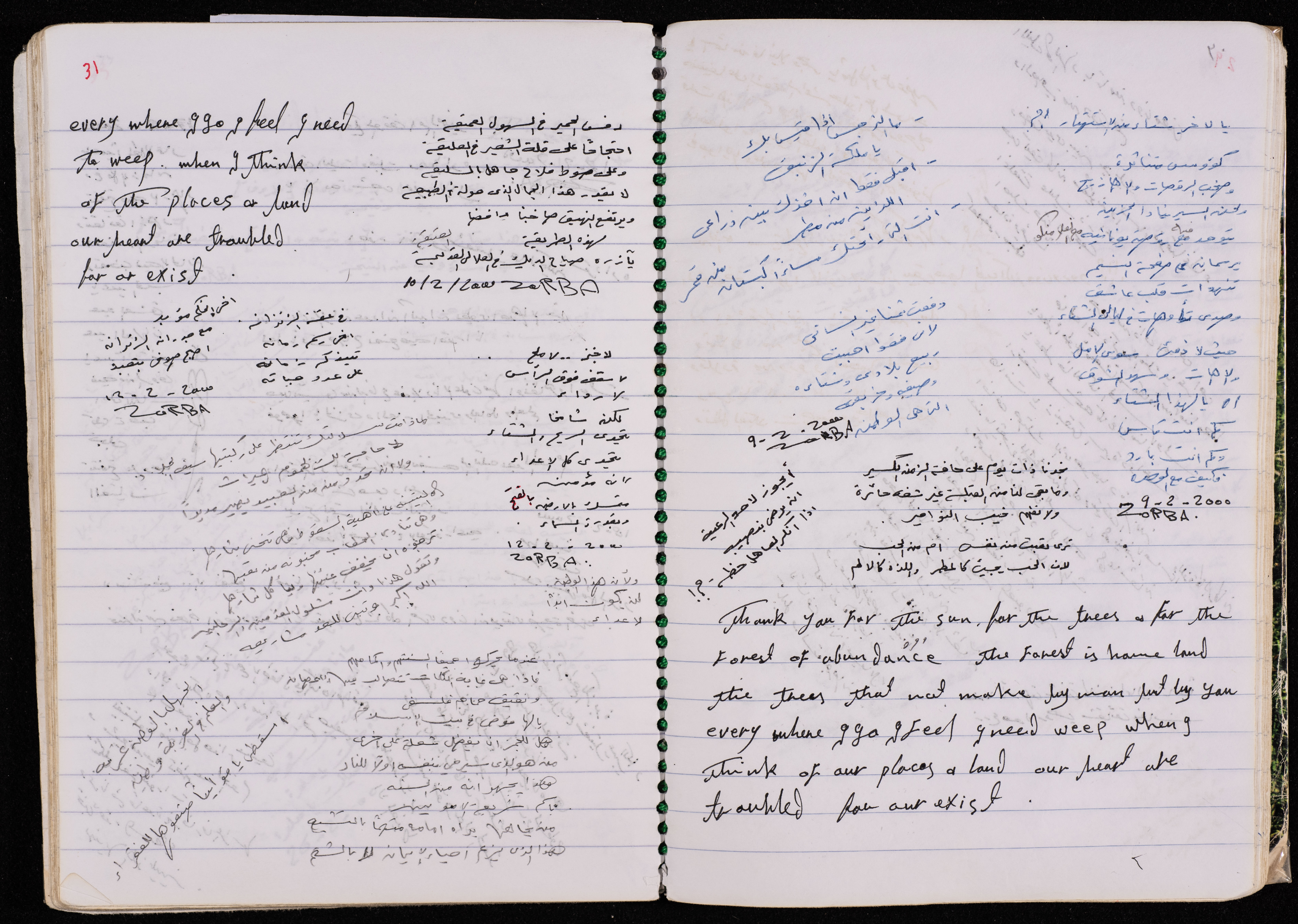 وثيقة مكتوبة بخط اليد باللغة العربية مكونة من 133 صفحة وهي عبارة عن دفتر للأسير محمد إبراهيم ناصر في سجون الاحتلال، يتضمن قصائد شعرية باللغة العربية والانجليزية مثل "القدس الأقدس" كتبها بتاريخ 7 نيسان 2001، و"رثاء عصفور" كتبها بتاريخ 12 أيلول 2011، و"إلى زينب" كتبها لابنة أحمد فؤاد نجم بتاريخ 29 كانون الثاني 2002، و"إلى كل مقاوم وشهيد" كتبها بتاريخ 9 نيسان 2002 عند اقتحام قوات الاحتلال لمخيم جنين، كما يتضمن تعقيباً على الكتب التي كان يقرأها في السجن، بالإضافة الى ذكر أسماء شهداء قرية صفا في معركة إكراسنا، كما يقدم نقداً للأحزاب السياسية، ويناقش مفهوم الأمن والوطن وأثر الإسلام على النفسية العربية.