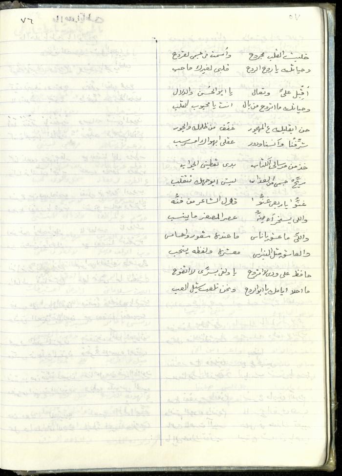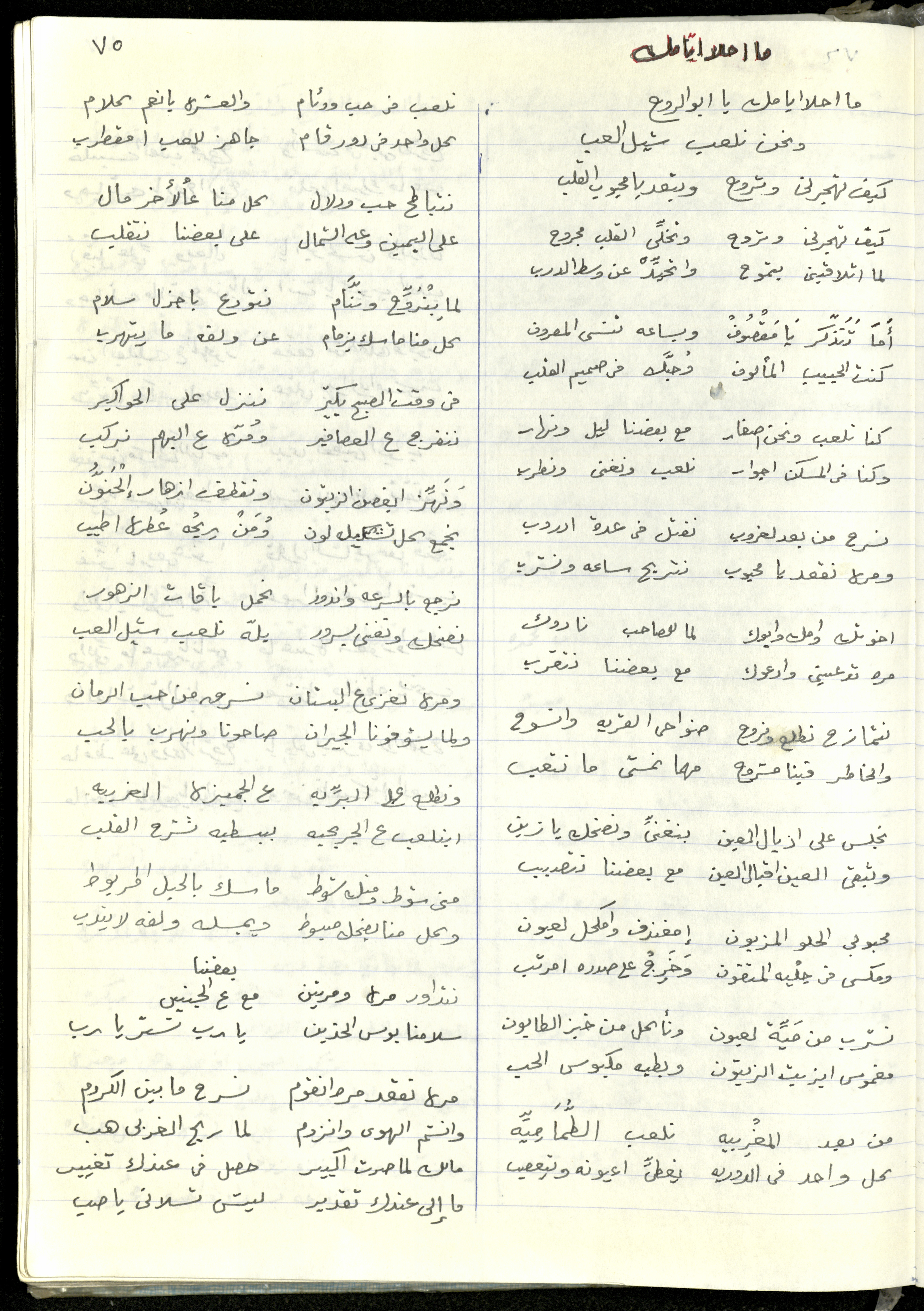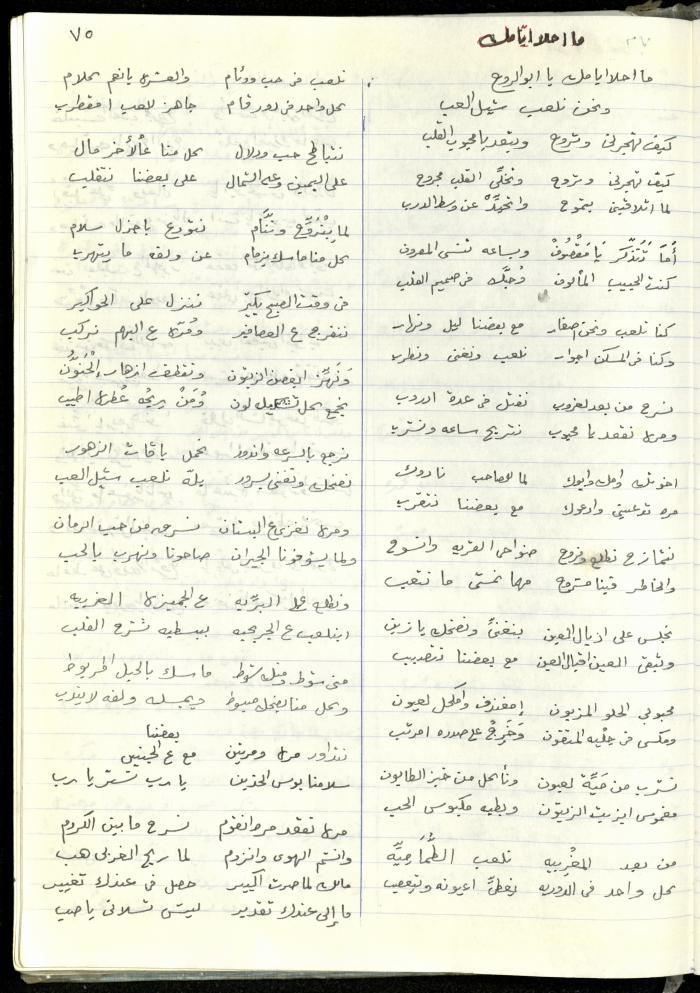 Titled "Ma Ahla Ayyamak", this item documents Zajal handwritten by Mohammad Rashid Safa.