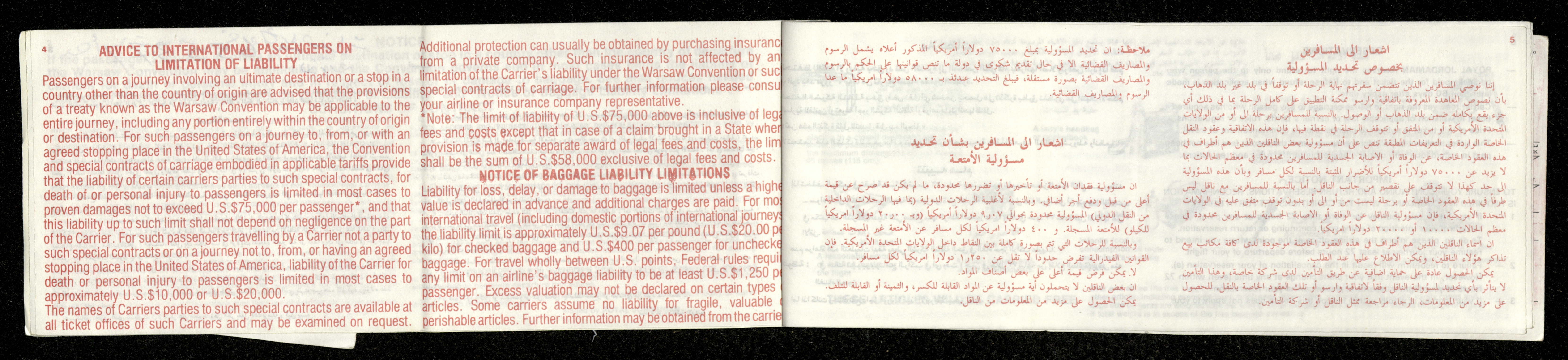 A Flight Ticket for Muhammad Jadallah Issued by the Royal Jordanian Airlines, 17 February 1994