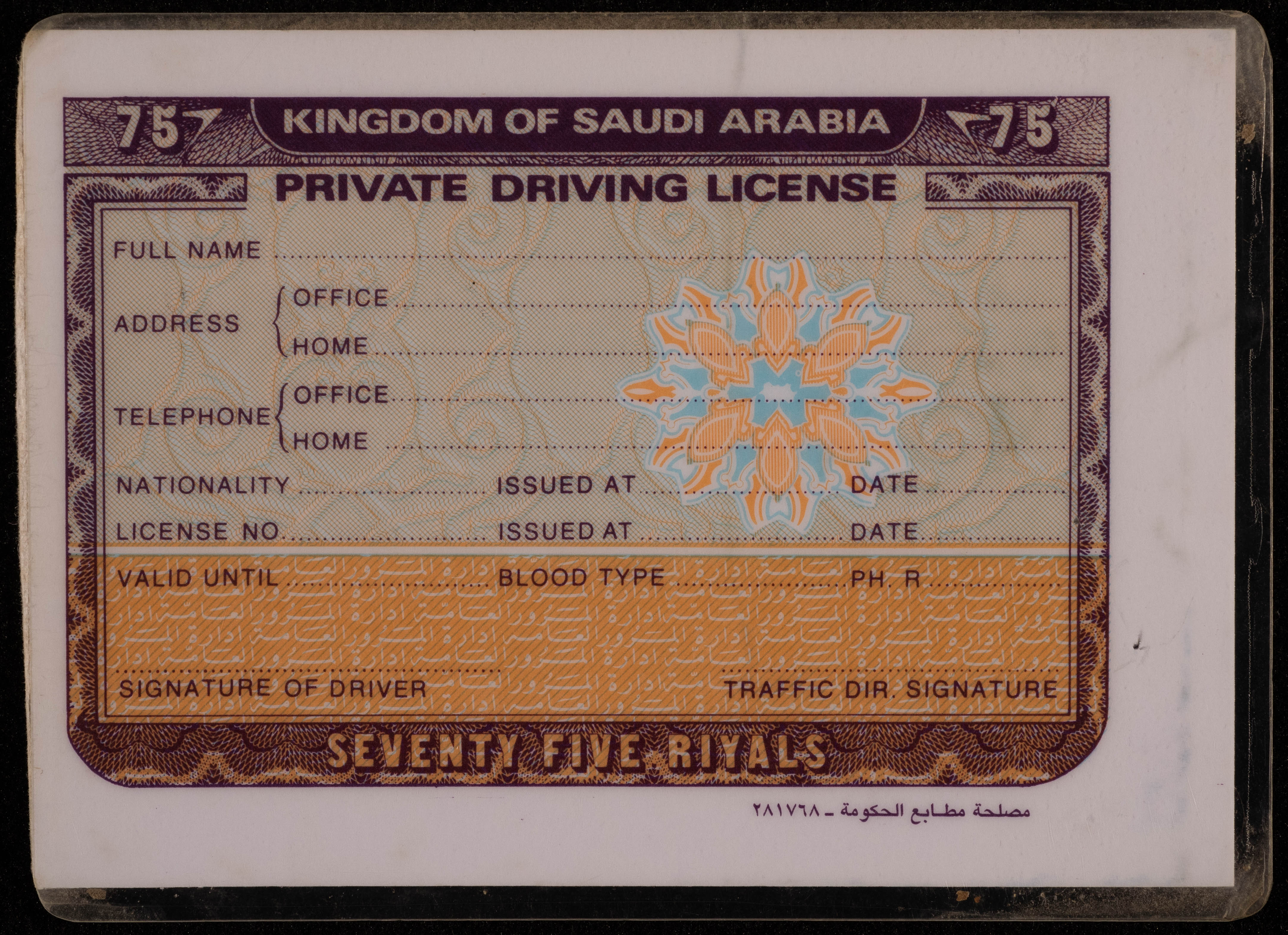 رخصة قيادة خاصة لكرم محمد ذياب الكيلاني في السعودية، 2001