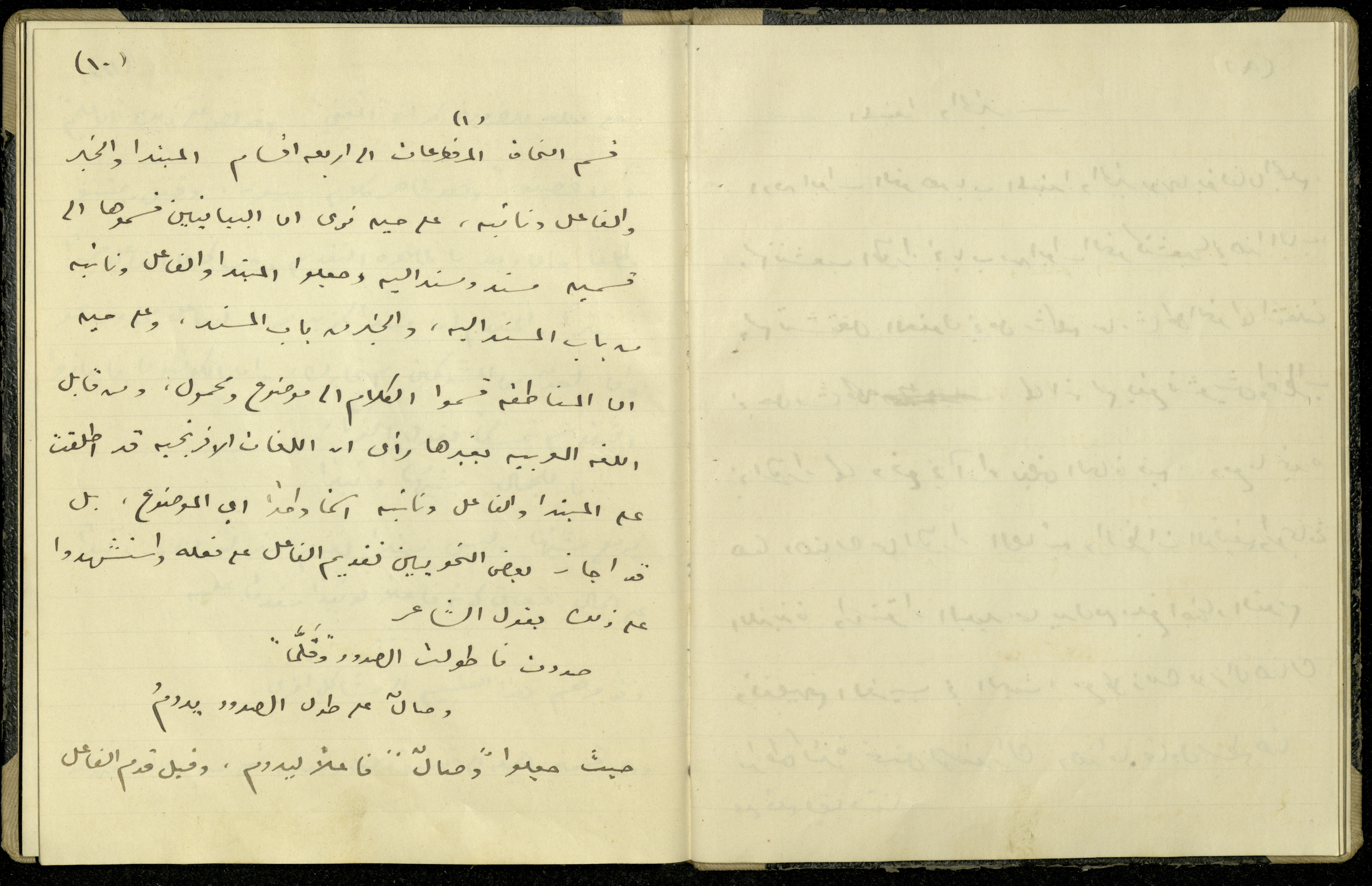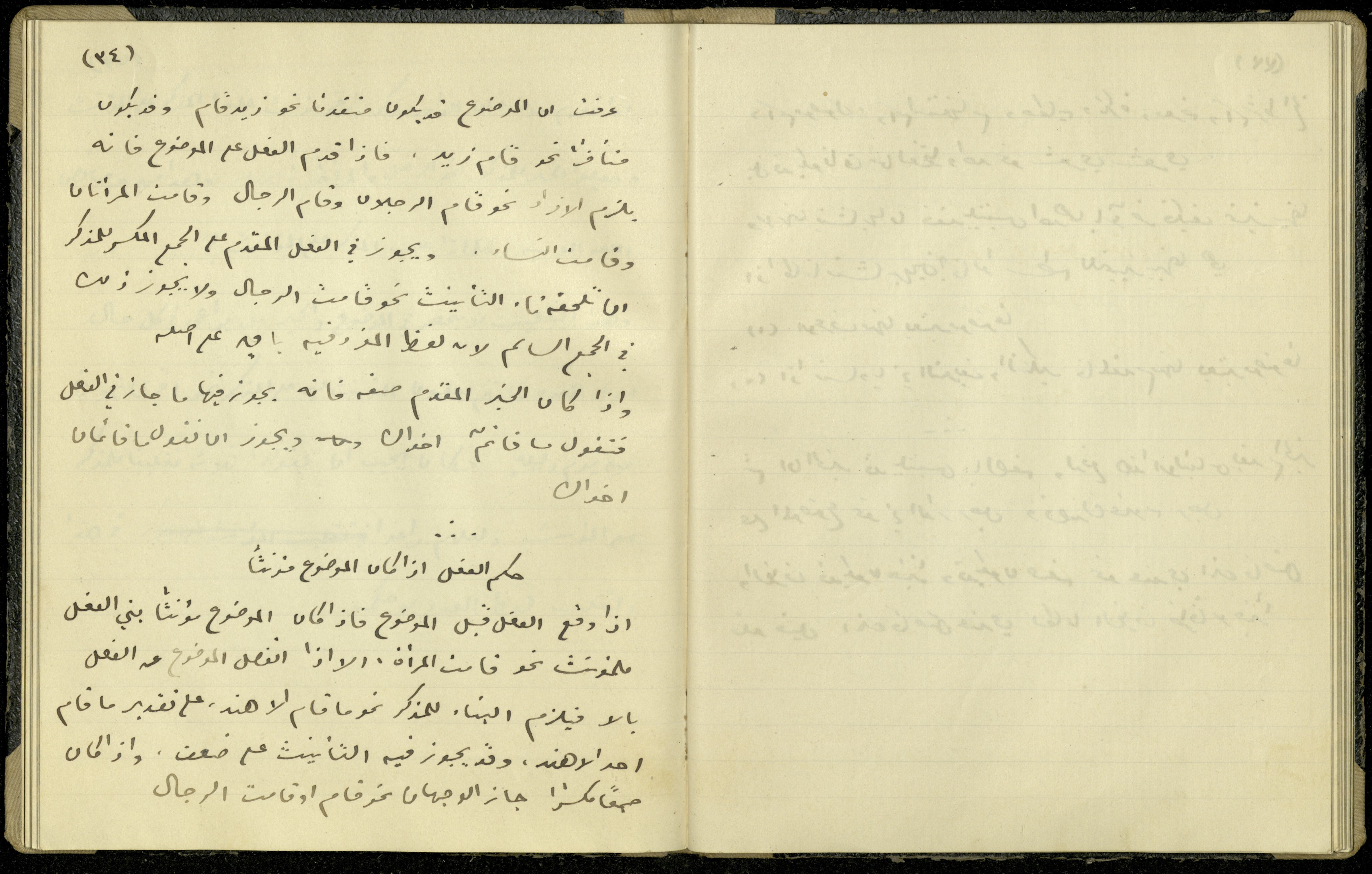 Titled “Fawaed Wa Araa Fi an-Nahw”, this is the written version of Khalil Sakakini’s book, which discussed different subjects such as I’rab signs and divisions, the 3 noun I’rab states: Raf’, Nasb and Khafd, then he mentions the subject and predicate, which is the most delicate door of grammar as sentences are not built without it, then he talks of the four Marfouat: the subject and its predicate, and the verb and its sub-verb. Purists divided them into two parts al-Musnad (includes the predicate) ad al-Musnad Elayh (including al-Mubtada, the verb and the sub-verb). Spelling was divided into installed and carried, where some stated that it was fine to put the subject ahead of the verb if necessary, while some prohibited that entirely, which led to the division of the sentence into noun and verb sentences, which in Sakakini’s opinion, a useless division and all this conversation regarding the origin is unneeded. Sakakini mentions that the noun in the sentence is considered the subject, as it has no meaning for being considered Mubtada if the verb comes first and a subject of it doesn’t, which led to the division of tools entering the sentence into two sections, one that specializes in entering to the nouns and one entering to the verbs. What intrigues Sakakini is grammarians consider that the origin of the Mubtada to come first and that the predicate comes second, if the Mubtadaa is held back, it is called a late Mubtada. Sakakini also mentions the grammarians’ opinion regarding prohibiting beginning the sentence with an indefinite noun has led them to several issues including allowing the verb to be indefinite and not allowing the Mubtadaa to be indefinite. Besides, what is an indefinite noun? Sakakini answers that it’s either truth, gender, number or an unknown. Due to the importance of the speech object and predicate, and that both rely on each other, they took the most important and strongest signs, as they are equal in importance and I’rab signs. The object is either a noun, pronoun, demonstrative, relative pronoun, interrogative noun, conditional sentence, an adjective replacing a noun, source, reverted source, thread or adverb. It could also be known or an indefinite noun, which includes two types, the general and specific, and it is specified with description or addition. A predicate could be a noun, a definition for a Mubtada that has no predicate, adjective, adverb, preposition, known past tense, noun sentence, pronoun or demonstrative, it can also be an indefinite noun, known, source or relative pronoun, as well as a thread, question noun or question sentence, and it could have a preposition. The subject proceeds its predicate if it was a question noun, a conditional sentence, exclamatory “Ma”, predicative “Kam” or the subject was genitive to the previously mentioned articles. The subject proceeds if the predicate is constructed by “Ella” or “Ennama”, as well as being proceeded by “Lam” of the Mubtada’, or if the subject is of more significance than the predicate. Another case in which it precedes if its predicate was connected with an added “Ba”, the predicate was a commanding verb, the predicate was lengthy and if the predicate was metaphorical. The predicate proceeds if it was a question, its subject by “Ella” or “Ennama”, the subject was an indefinite noun and the predicate was an adverb or preposition phrases if within the subject a pronoun belonging to the predicate or it was interesting for the listener. The subject and predicate are similar in importance, Raf’, proceeding and delaying, they are also both a noun, adjective, verb, pronoun, demonstrative, relative pronoun, thread, indefinite noun, definite noun and conditional. Sakakini mentions that if the subject is feminine, the verb must be as well, and the masculine proceeds the feminine in the subject. Sakakini ended his book by mentioning 3 benefits including the description could be by expression or implication, the indefinite noun could be similar to the definite by adding “Al” of the gender and “Allahuma” is used in three ways: pure calling, enabling the answer and pointing out rarity, unlikeliness or after.