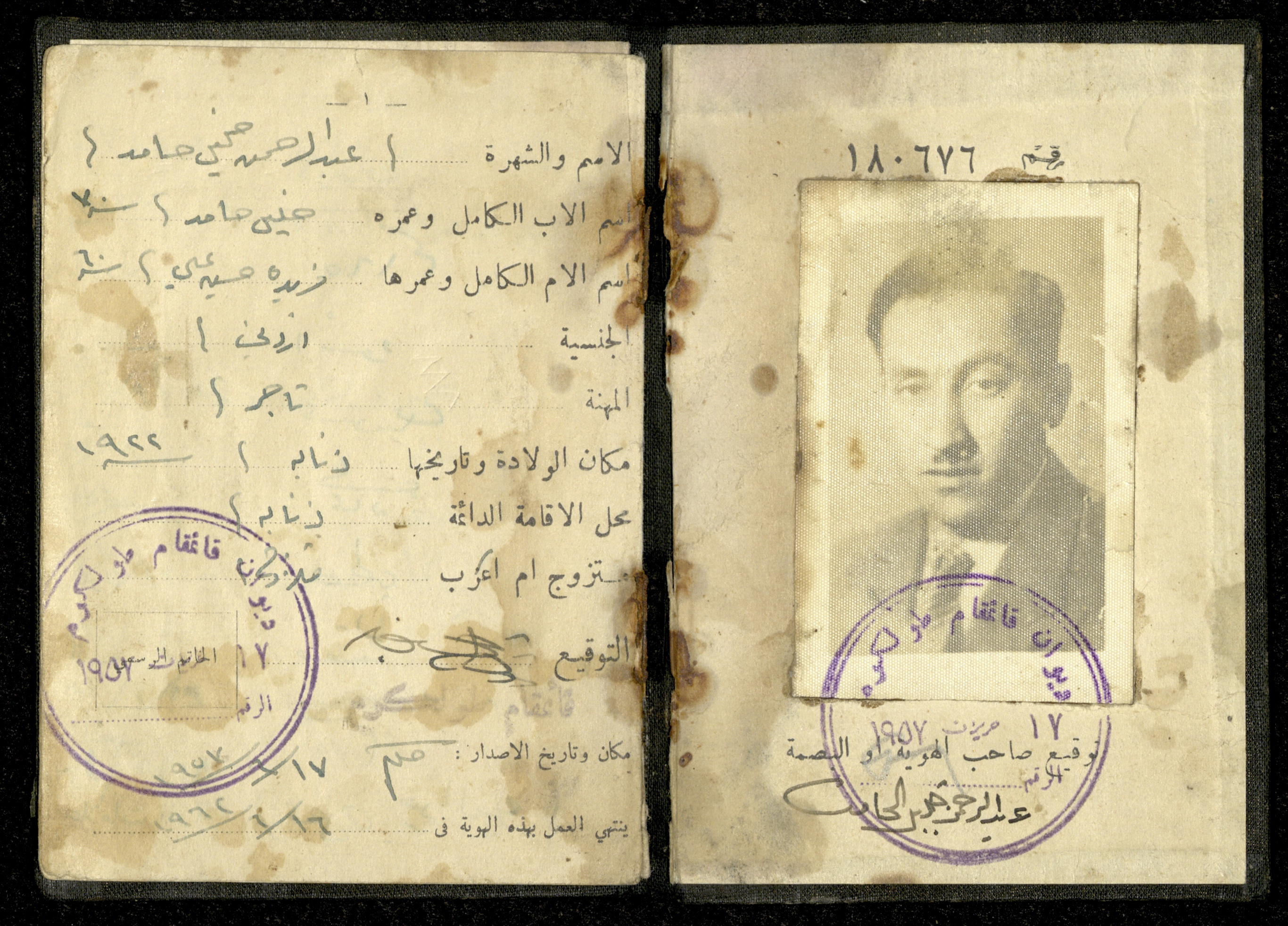بطاقة هوية لعبد الرحمن حامد، طولكرم، 17 حزيران 1957