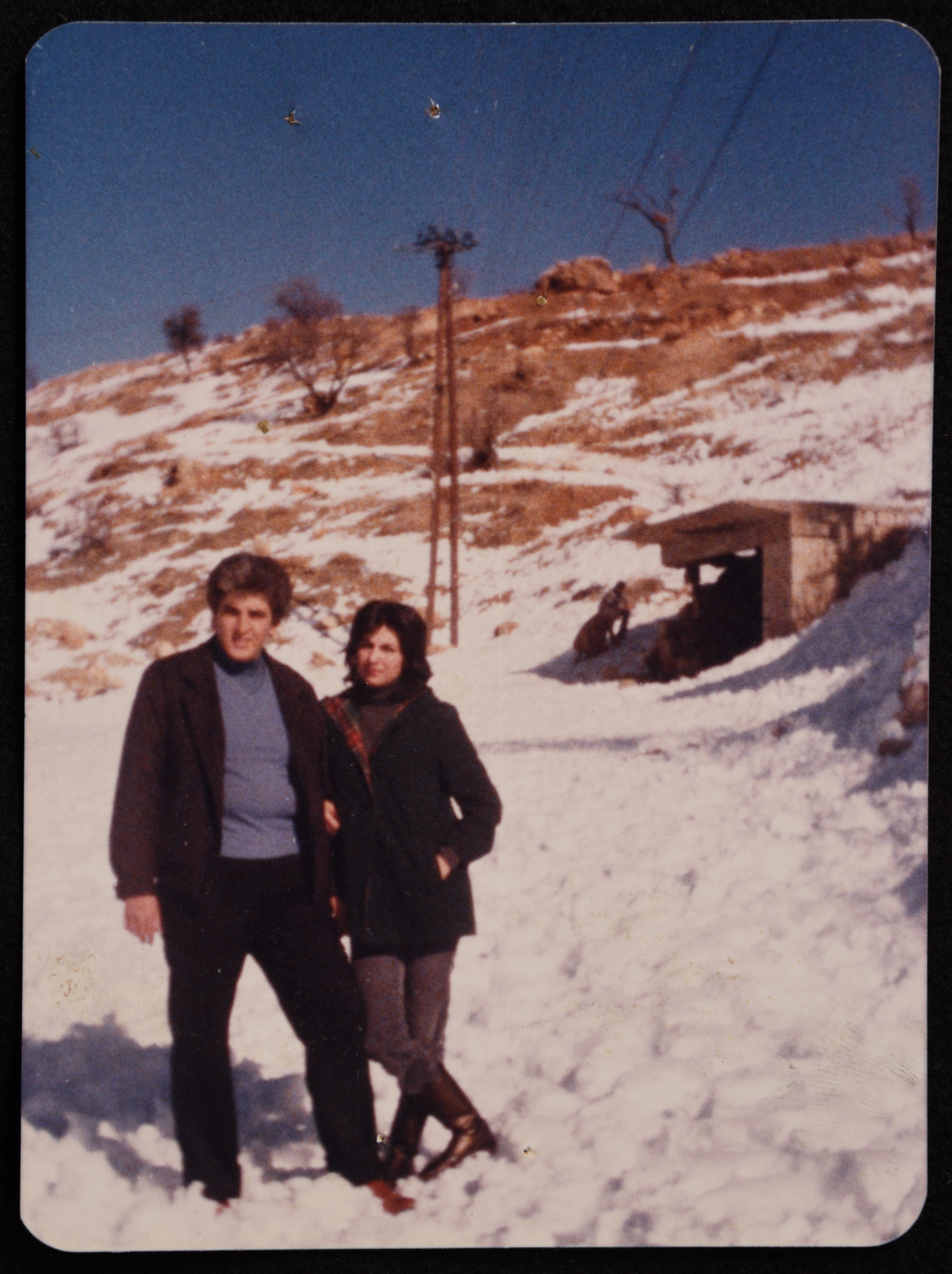 صورة ملونة يظهر فيها الدكتور سمير غوشة برفقة زوجته سحر عم علي في بلودان في سوريا عام 1985