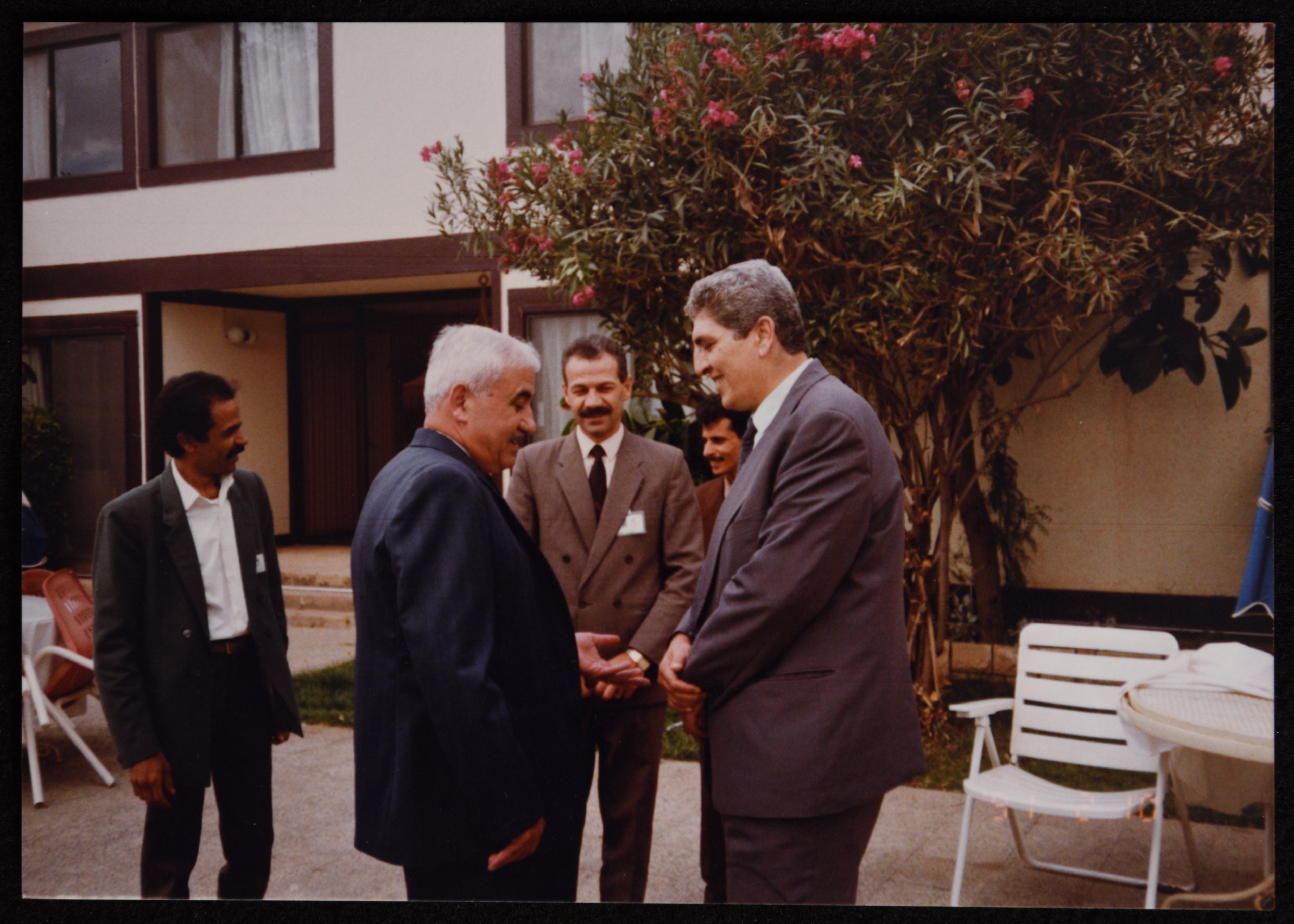 صورة ملونة يظهر فيها الدكتور سمير غوشة برفقة الدكتور جورج حبش في قصر الصنوبر في الجزائر عام 1993