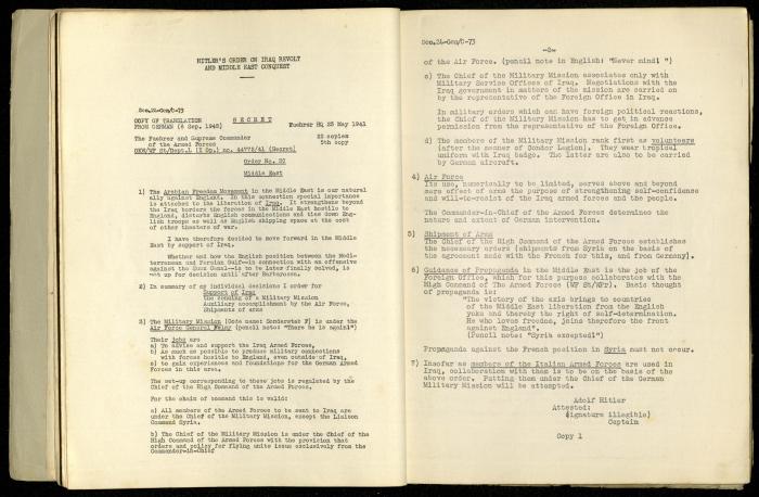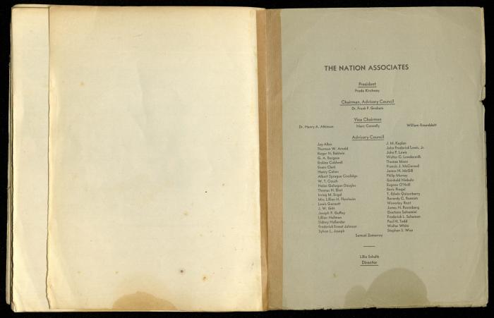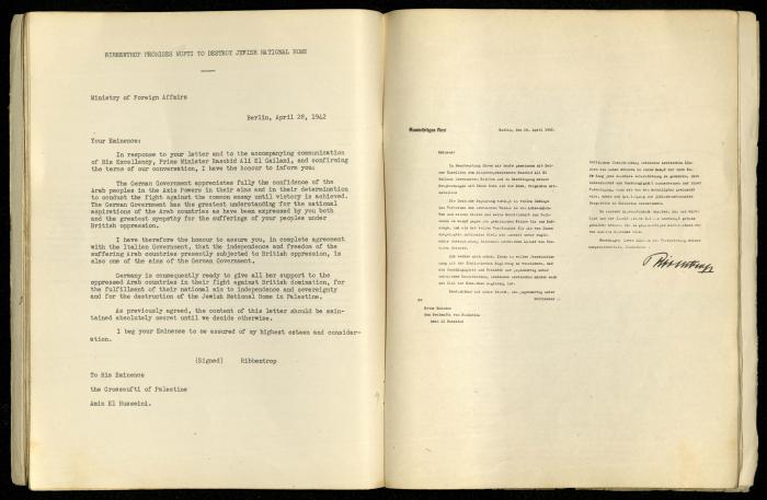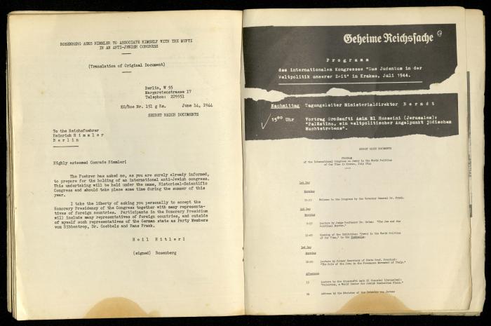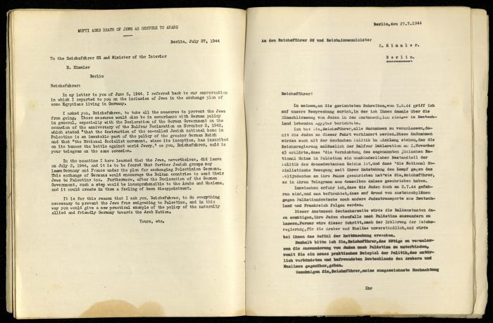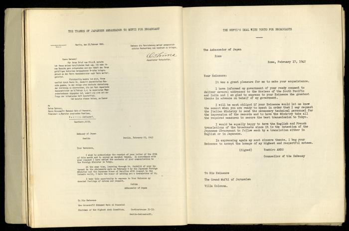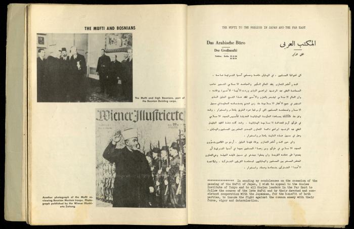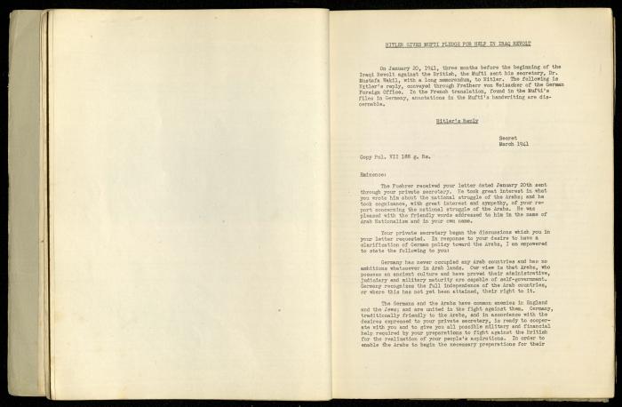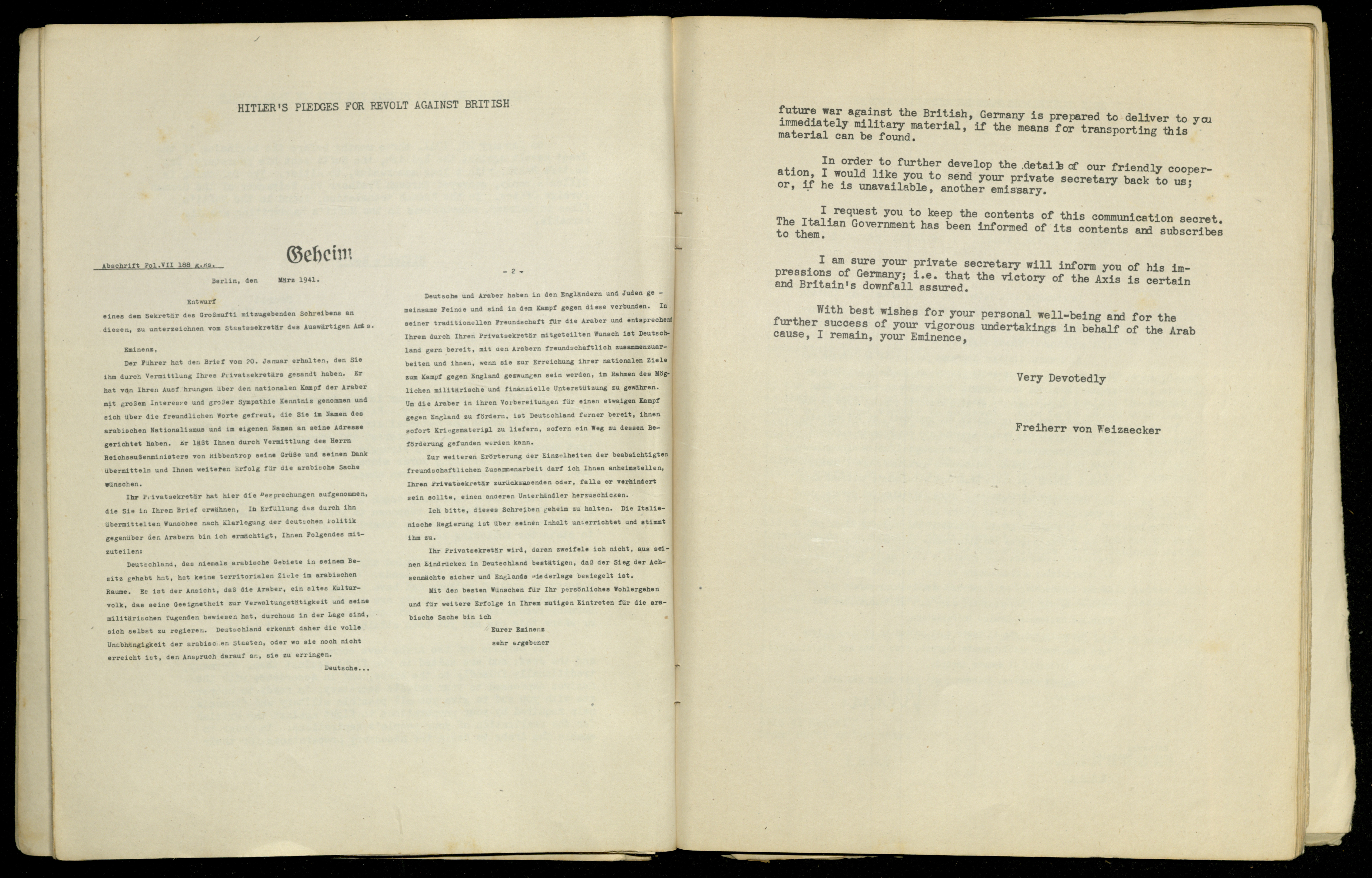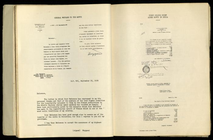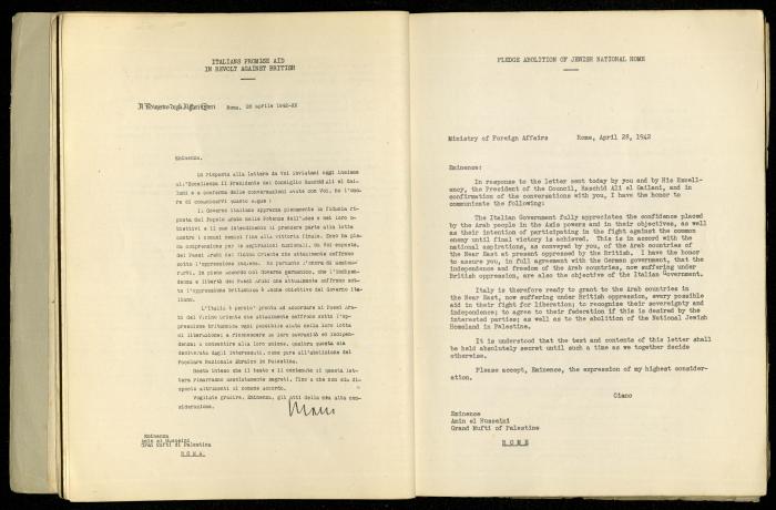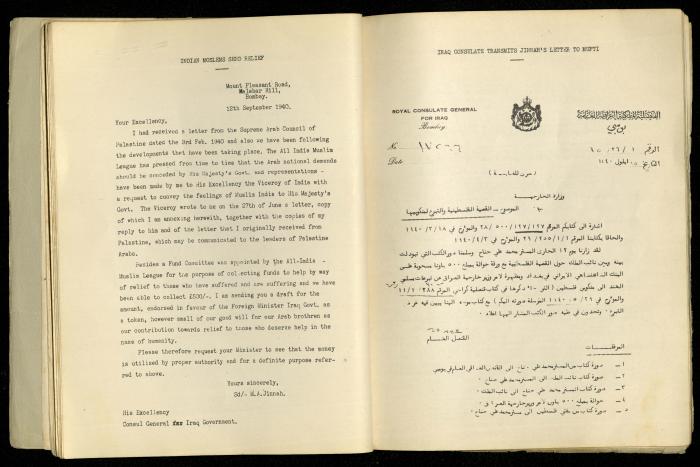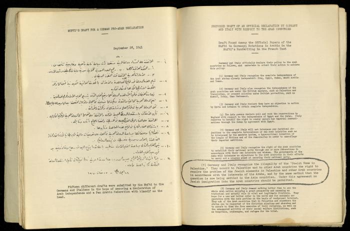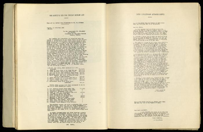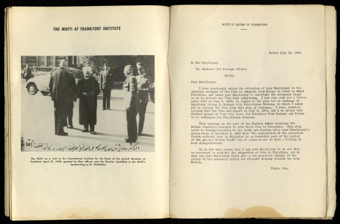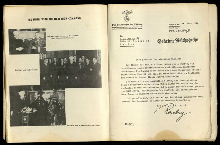 Printed in English and attached with documents in German and Italian, this archival item is a documentary record putting together written and visionary material of the Arab Higher Committee, prepared by the Nations Magazine and delivered to the United Nations in May 1947, in this record, the magazine attaches a brief on the committee between (1936-June 1946) inaugurated by recalling one of the official testimonials addressed by the committee for the benefit of the Palestinian Question when the Political Committee of the General Assembly of the United Nations invited it on 7 May 1947 without a dissenting vote at that time, in addition to a timeframe tracing its pollical origins by the Arab League and the committee’s president, the Grand Mufti of Jerusalem, Haj Amin Husseini and the founding members whom were in close ties with the Mufti and they are Wasef Kamal, Rasem al-Khalidi, Emil Ghouri and Jamal al-Husseini and this was after it was limited to Jamal al-Husseini as the Vice President, Hasan al-Khalidi as the General Secretary with the membership of Emil Ghouri and Ahmad Helmi and their motives behind such membership, afterwards it tracks the history of the Arab League’s relationship with Palestine including member states all the way down to copies of scattered documents which varies between photographs, paper clippings, minutes of meetings; both official and non-official, handwritten financial records of the committee’s expenses, letters between the Mufti and his allies in Germany and Italy and copies of his diaries in which he recorded his talks with the German Leader Adolf Hitler on the Question of Palestine. It is worth to mention that the “Nations” is America’s oldest magazine producing a weekly press production on progressive politics and cultural issues in addition to providing political analysis since July 1865.