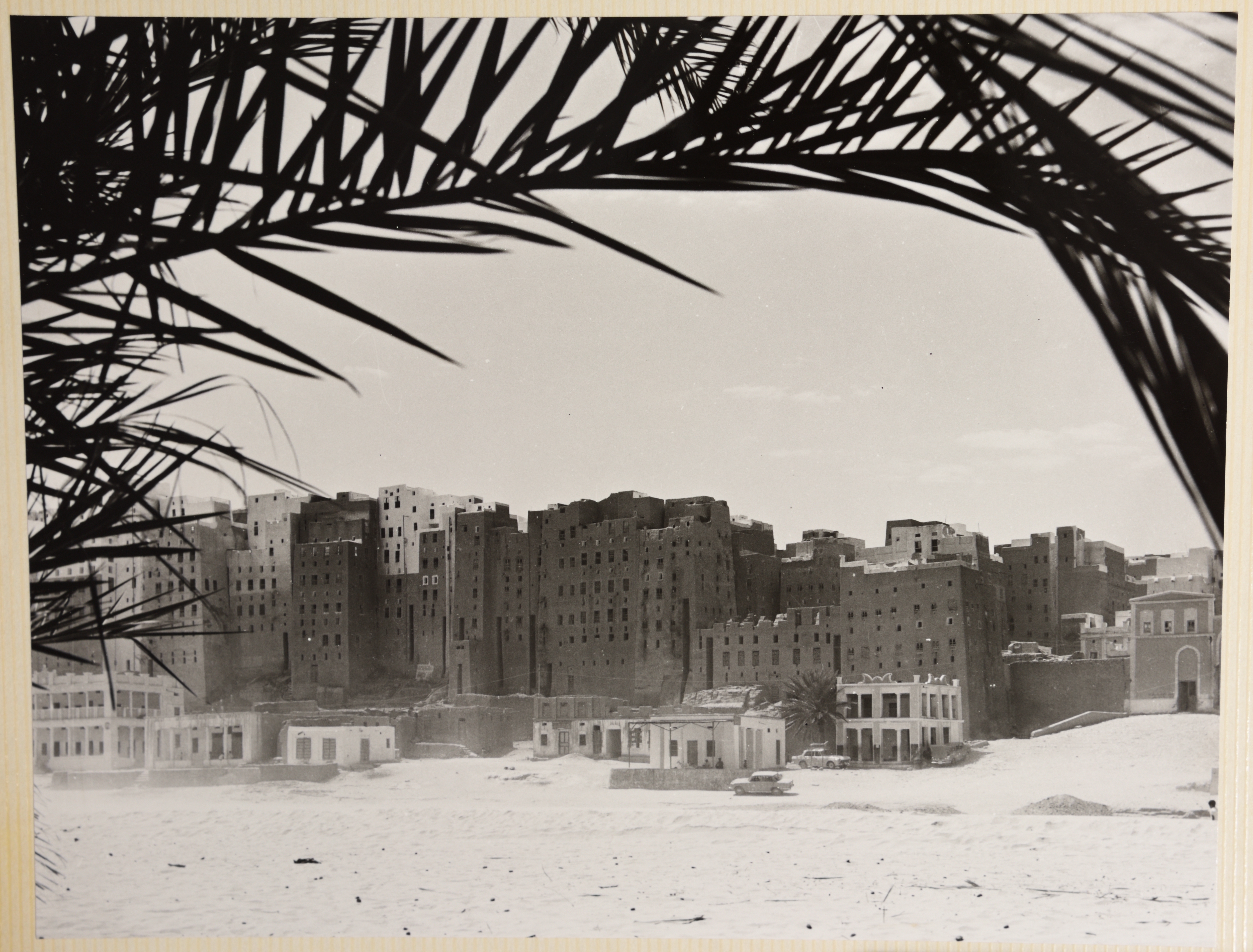 صورة بالأبيض والأسود يظهر فيها مجموعة من المباني السكنية في جمهورية اليمن الشعبية الديمقراطية