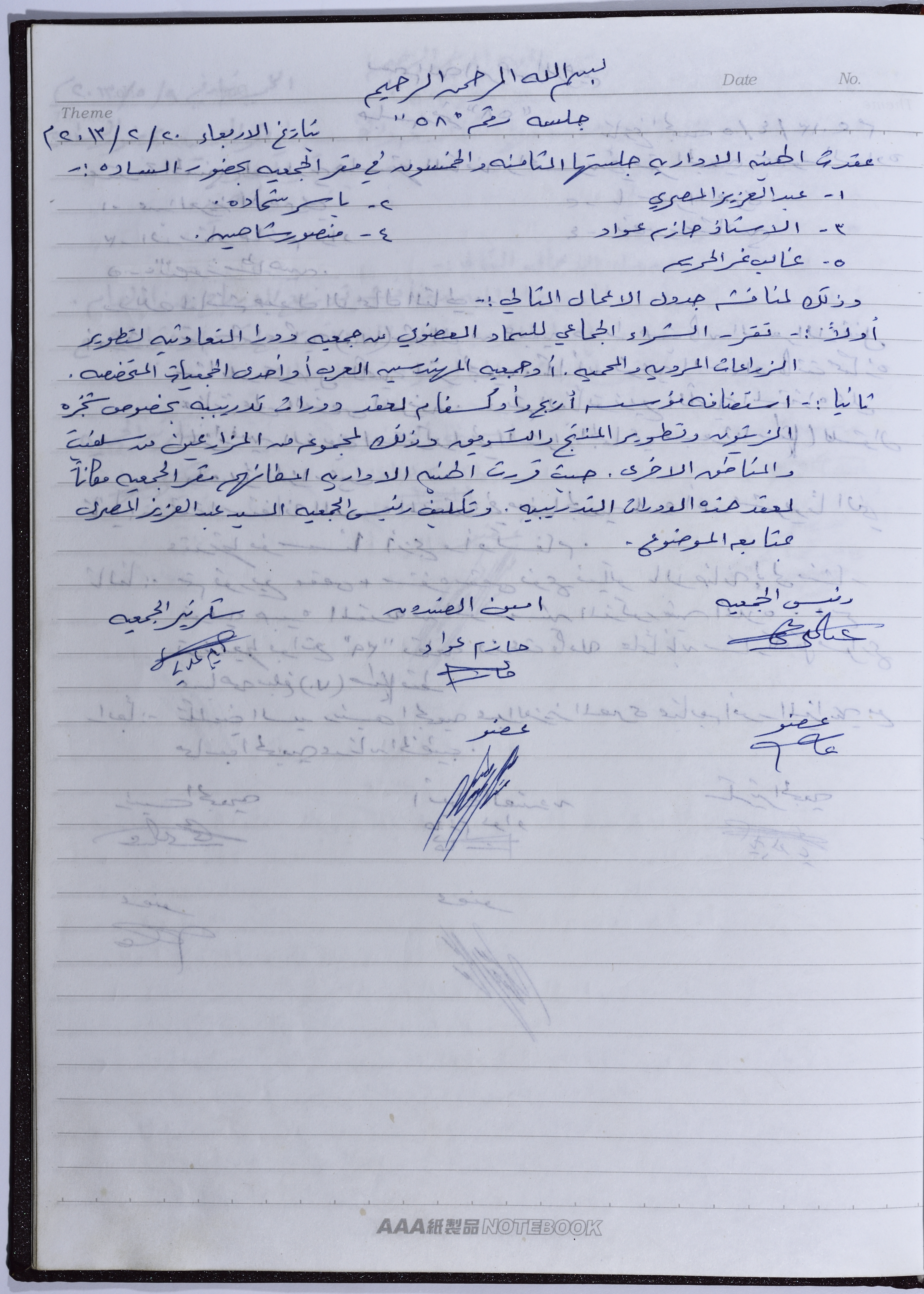 محضر اجتماع للهيئة الإدارية للجمعية التعاونية لعصر الزيتون في سلفيت، 20 شباط 2013
