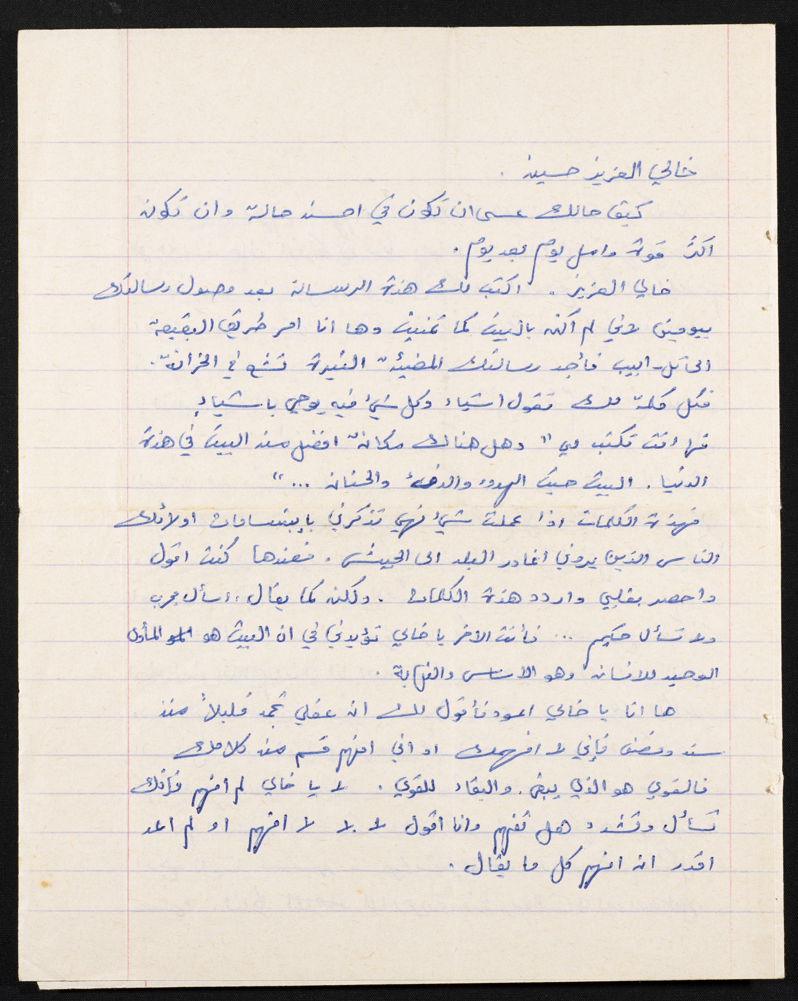 توثق هذه الوثيقة رسالة من هايل ابن اخت حسين مهنا اليه، أثناء فترة اعتقاله في السجون الإسرائيلية من شهر نيسان 1978 حتى شهر تموز 1978، وذلك بسبب رفضه ان يشارك في الجيش الاحتياطي الإسرائيلي في حرب أكتوبر عام 1973 وبذلك أرسلت له قوات الاحتلال تهديدات بالسجن، حيث قاموا بإرسال تهديدات باعتقاله من عام 1973 حتى قاموا بتنفيذ الاعتقال بشهر نيسان 1978. حيث يطمئن بها على احواله، ويخبره ان رسالته قد وصلته، ويتمنى ان يكون بأفضل حال وان يبقى قويا وصامدا حتى يعود الى بيته وعائلته وعمله.