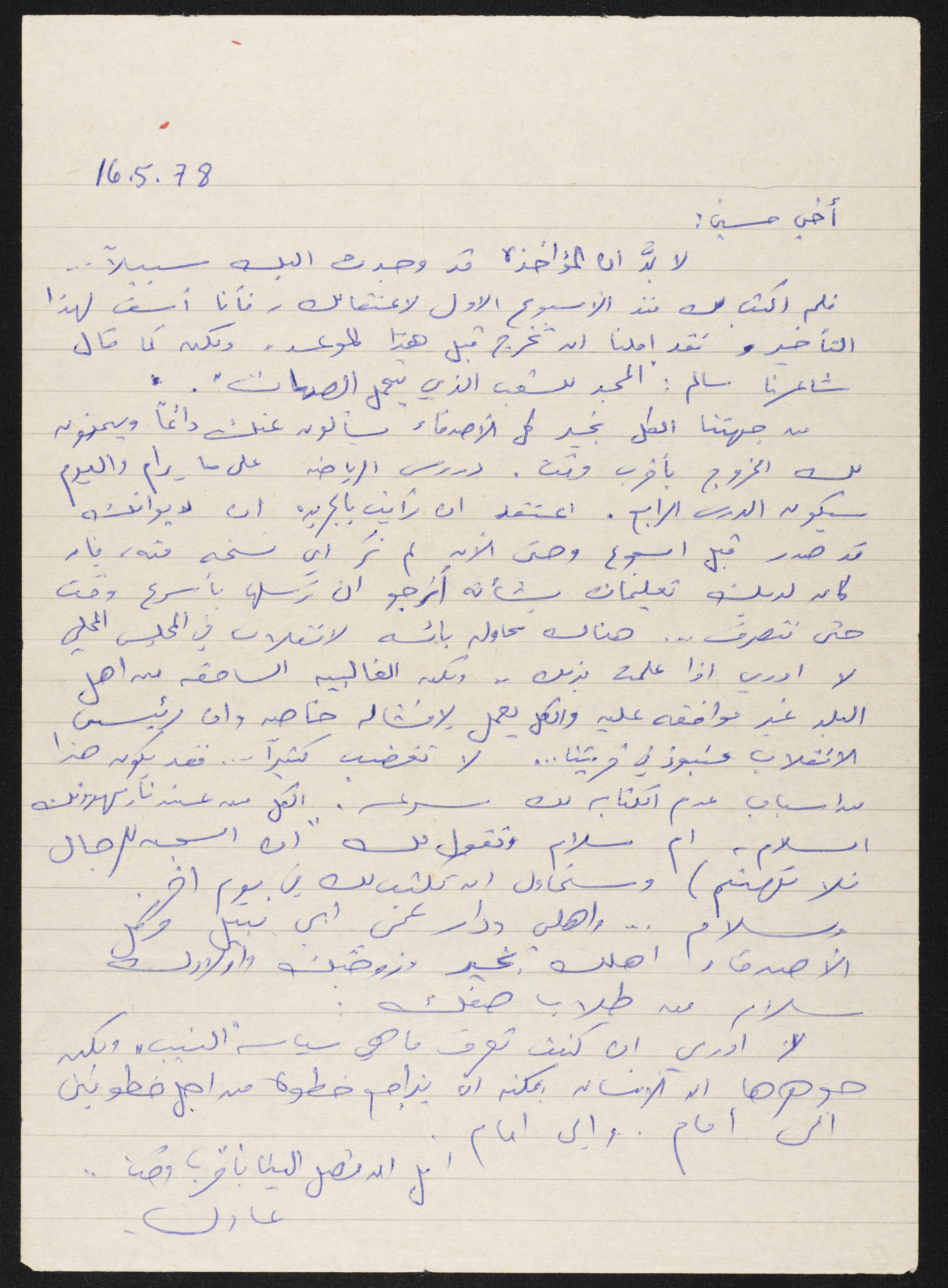 رسالة من عادل الى حسين مهنا، 1978