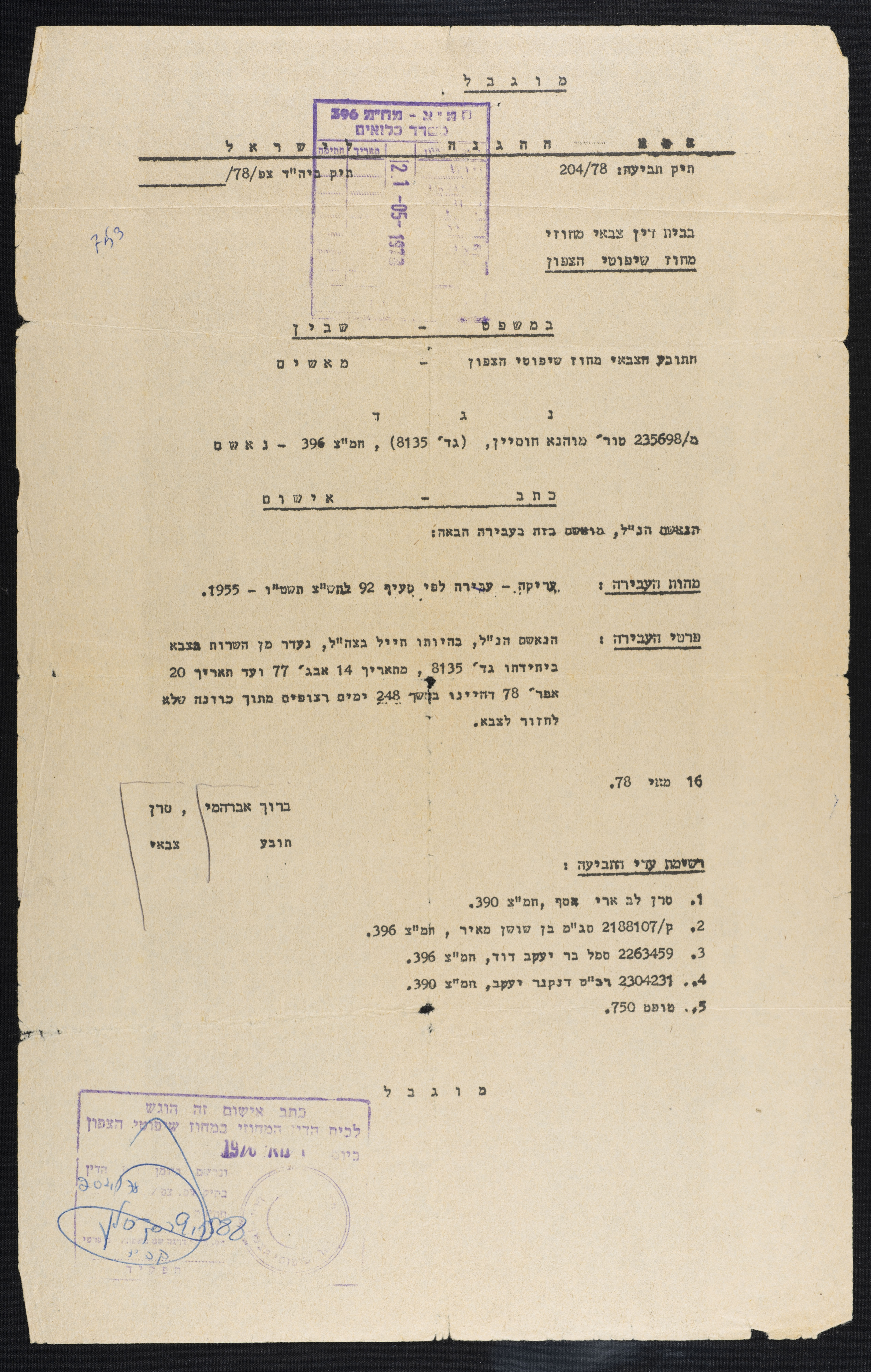 ورقة من المحكمة العسكرية في منطقة الشمال، 1978