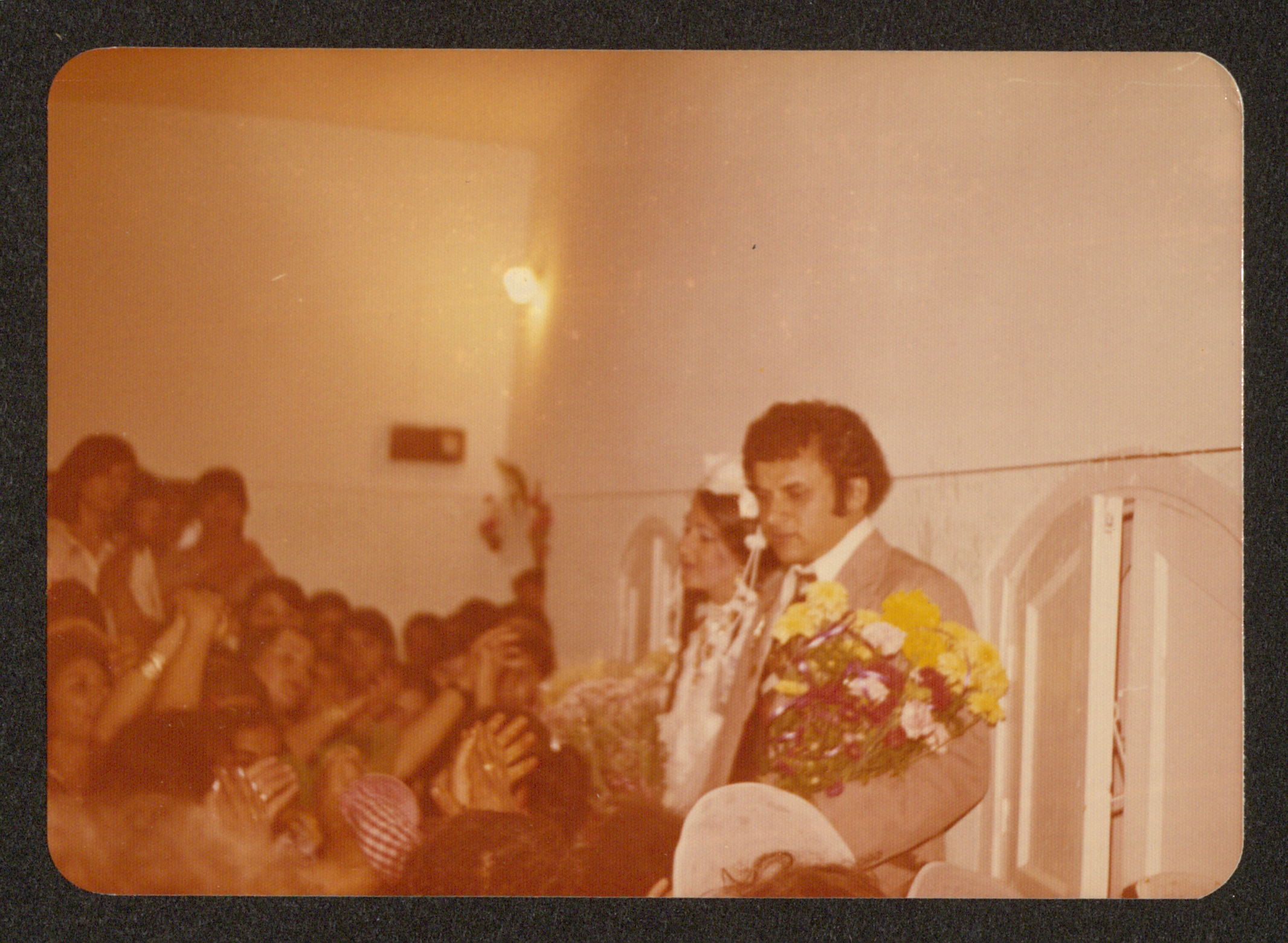 Taken in 1975, this photograph shows Shareef Masarwa with his wife Rabaa Mohammad al-Bitar during their wedding day at the groom's house.