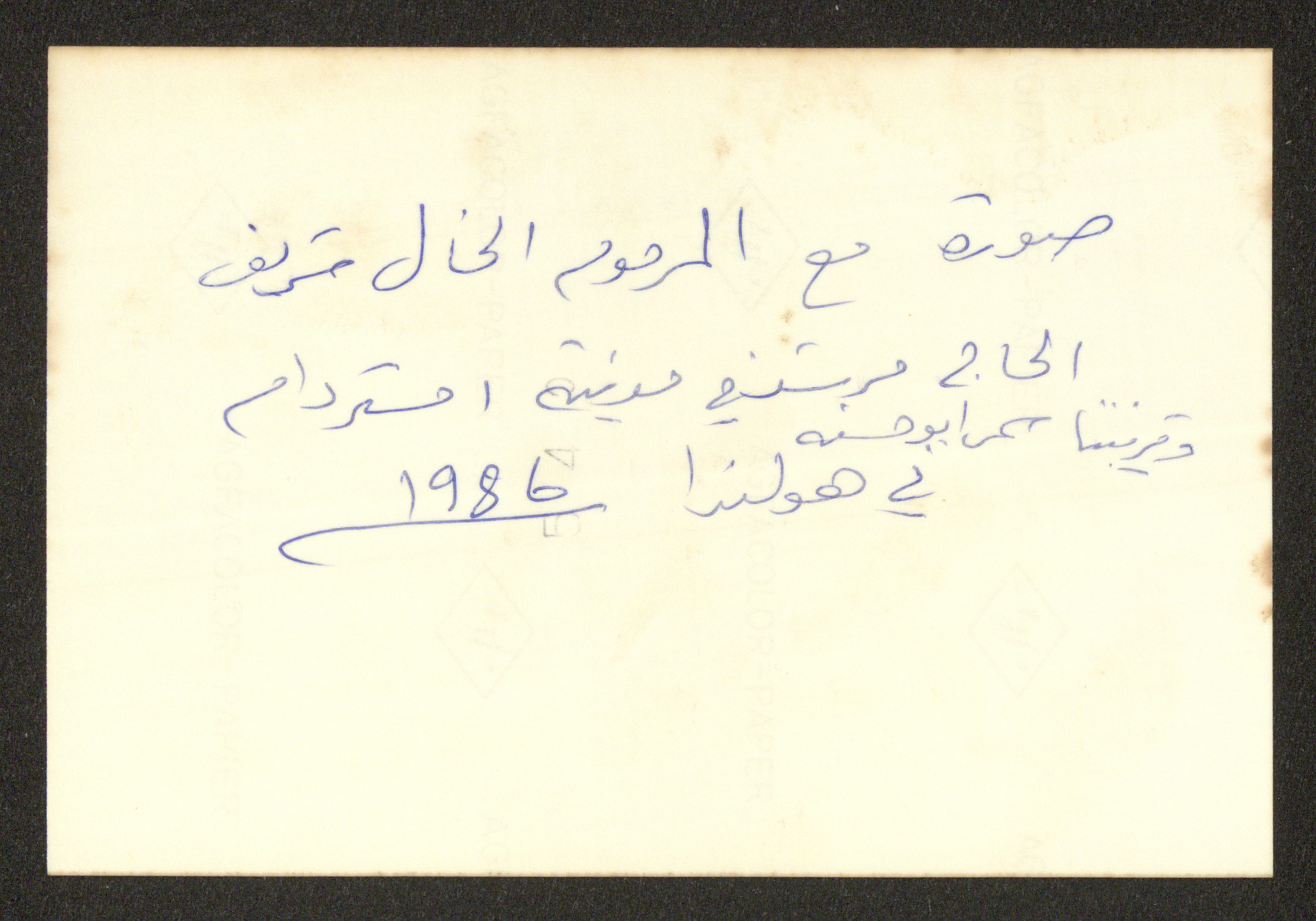 Taken in Amsterdam, in 1986, this photograph shows Shareef Masarwa with his uncle Shareef Alhaj Murshed and a relative Samar Abu Hasna.