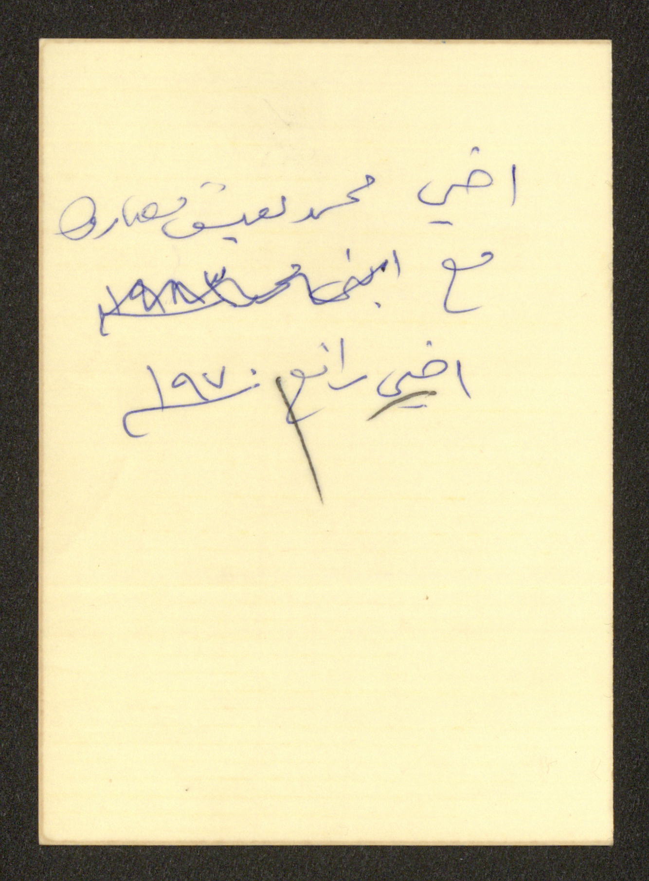 Taken in 1970, this photograph shows Mohammad Yousef Masarwa, Shareef Masarwa's brother, holding his brother Rafe'.