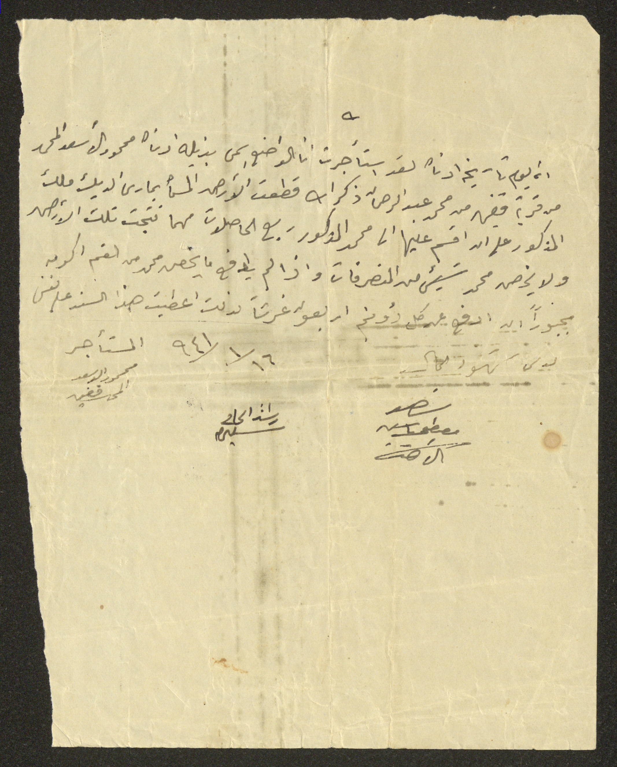 A Rental Contract Between Mahmmoud al-Asad and Muhammad Abedrrahman, 16 December 1941