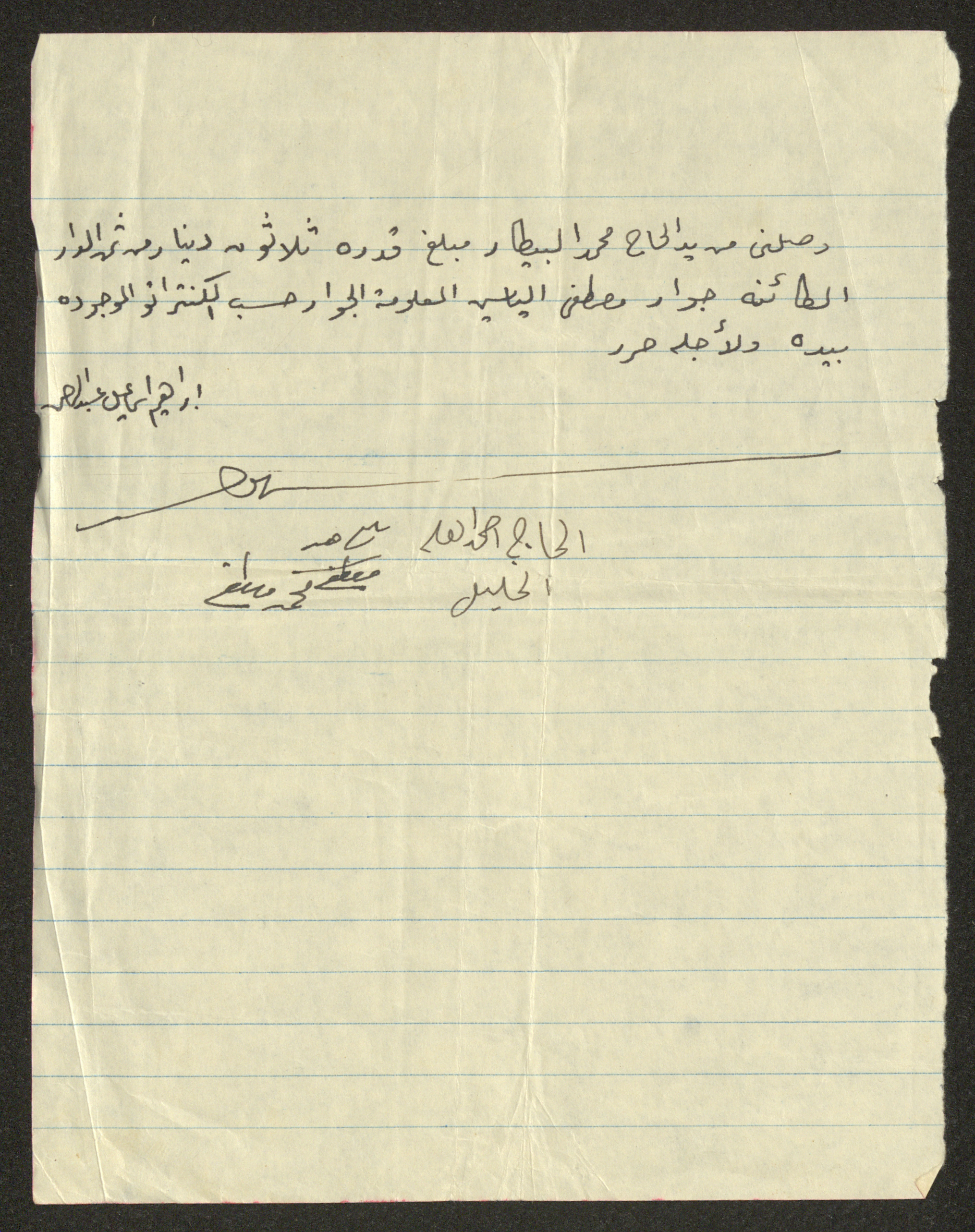 A Financial Receipt from Muhammad al-Bittar to Ibrahim Abederrahman
