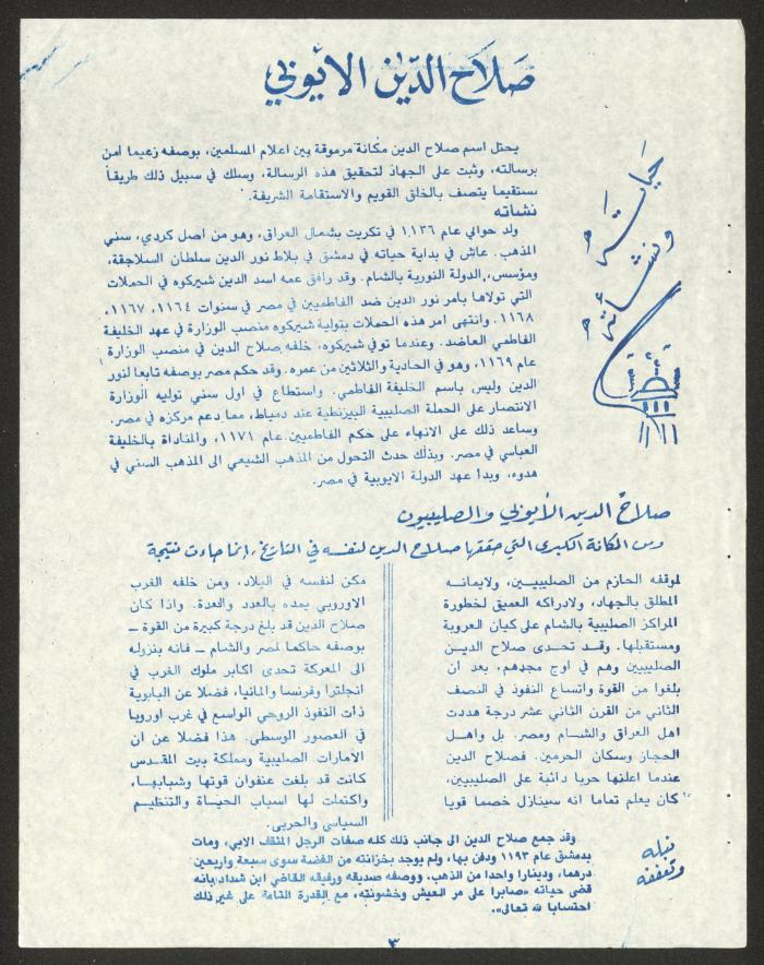"Muslim Figures", a Booklet by al-Ghazali Elementary School, Baqa al-Gharbiyye, 1987