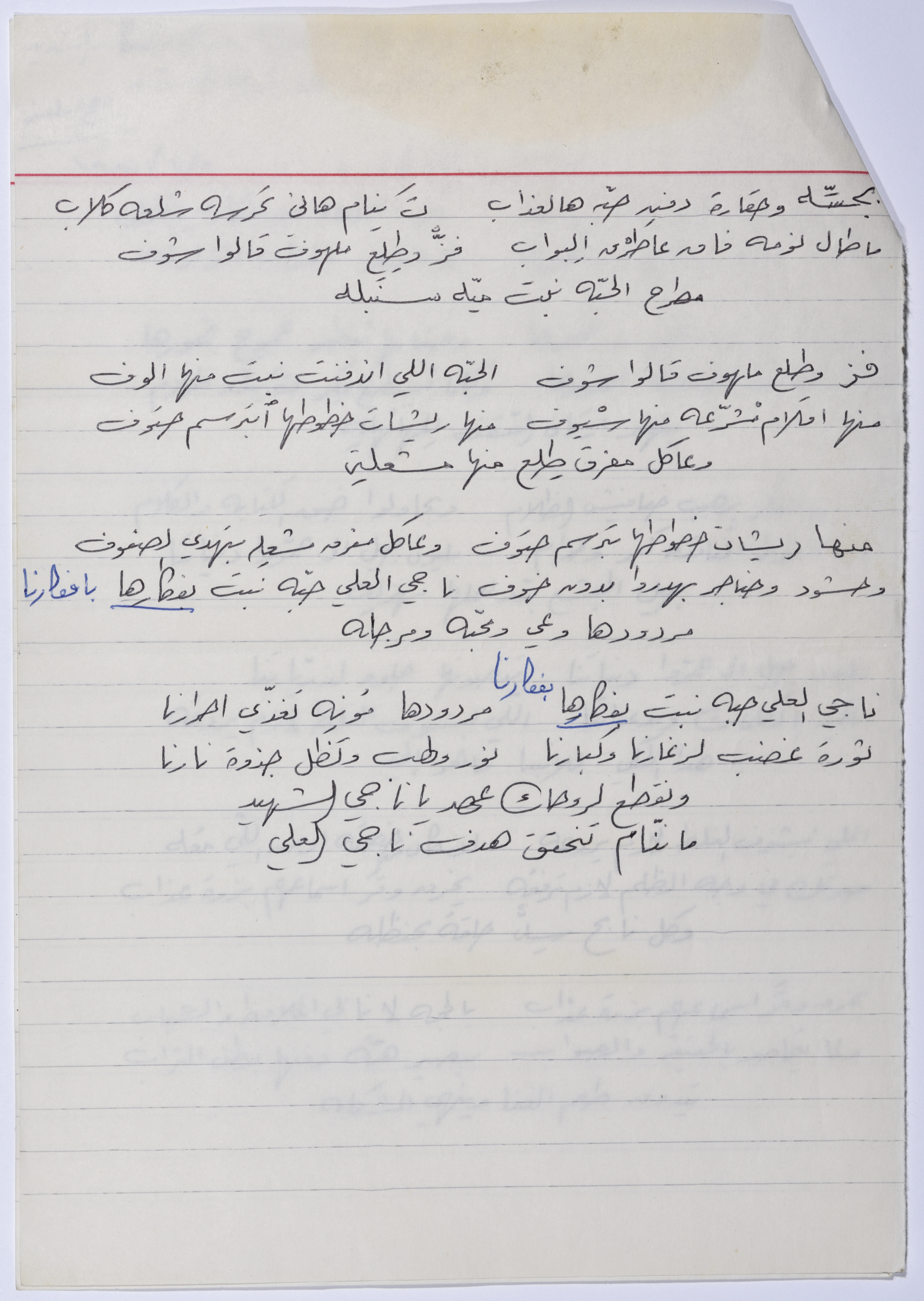 وثيقة مكونة من ورقتين، تتضمن قصيدة بعنوان ناجي العلي، كتبها راجح السلفيتي راثيا فيها الفنان الفلسطيني ناجي العلي، كتبت القصيدة بتاريخ 5/9/1987، وألقاها راجح السلفيتي في نادي الصداقة في عكا في اليوم التالي، أمام جمهور النادي، حيث كان راجح السلفيتي من اللجنة التحضرية لمهرجان الصحافة الشيوعية في 25-26/9/1987