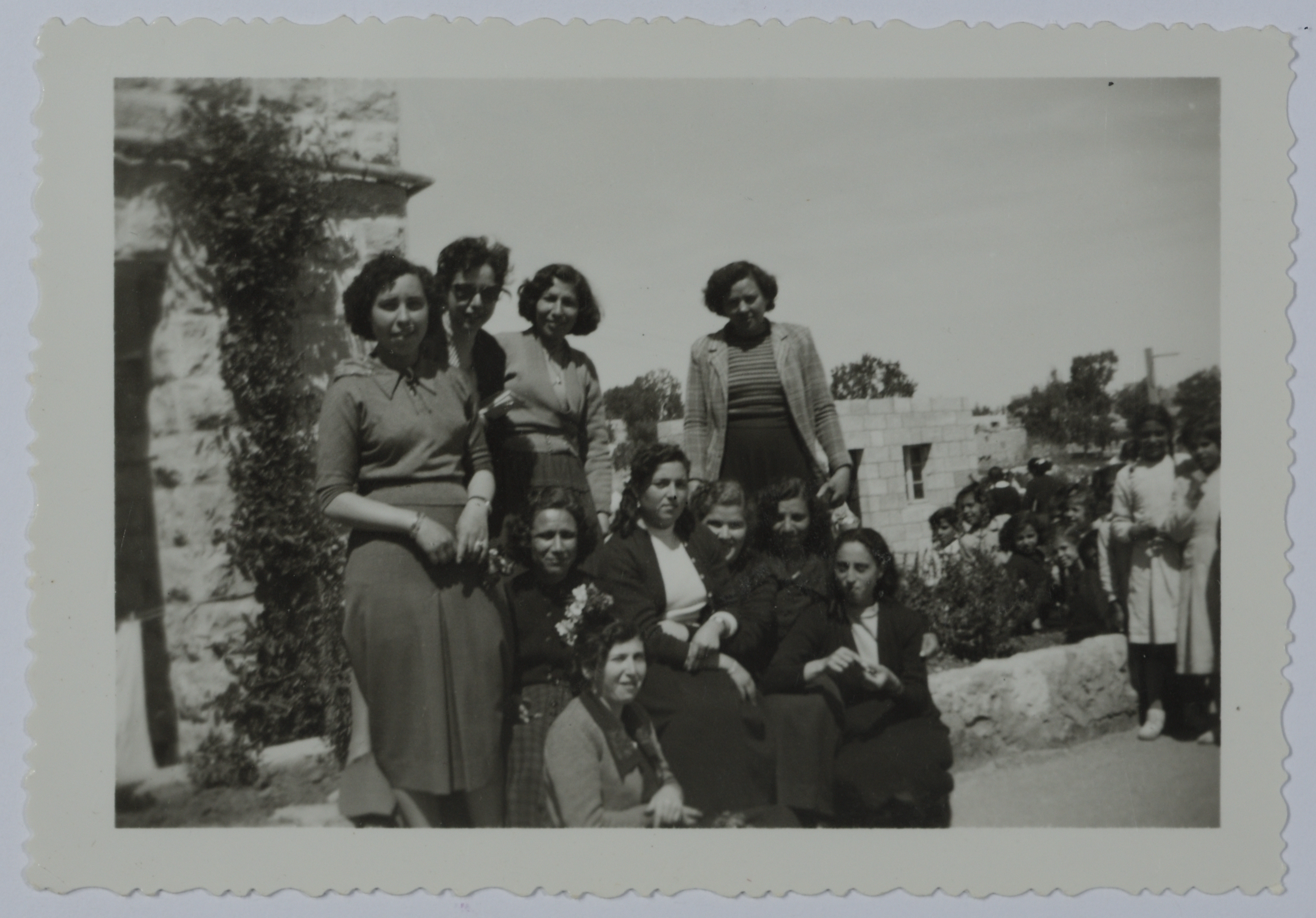 صورة لفتيات في مدرسة إناث البيرة الثانوية، في آذار 1954. وجدت الصورة في مجموعة ماهرة الدجاني.