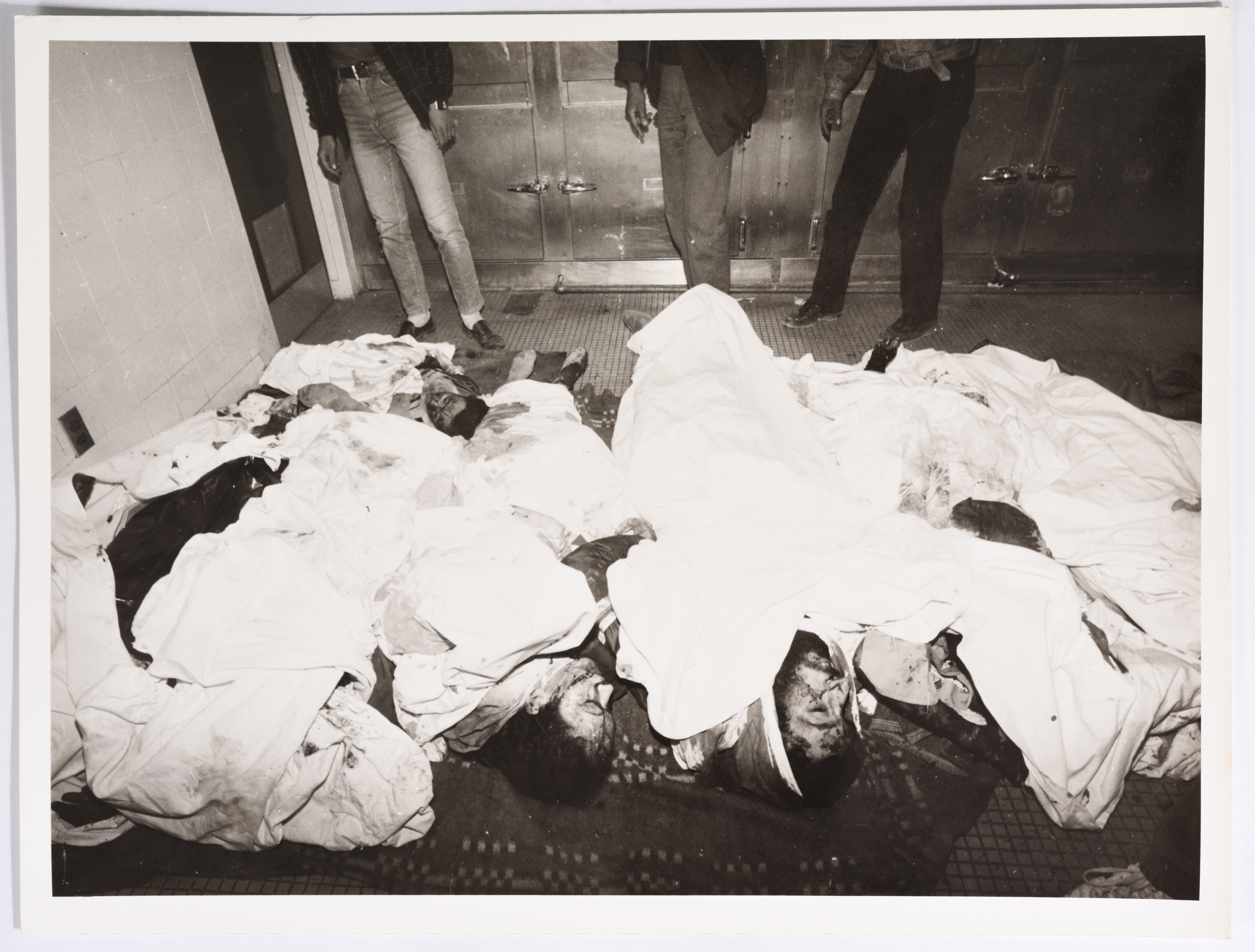 صورة لجثث ضحايا القصف خلال حرب المخيمات في بيروت، التُقطت في الفترة من 1985 إلى 1988.