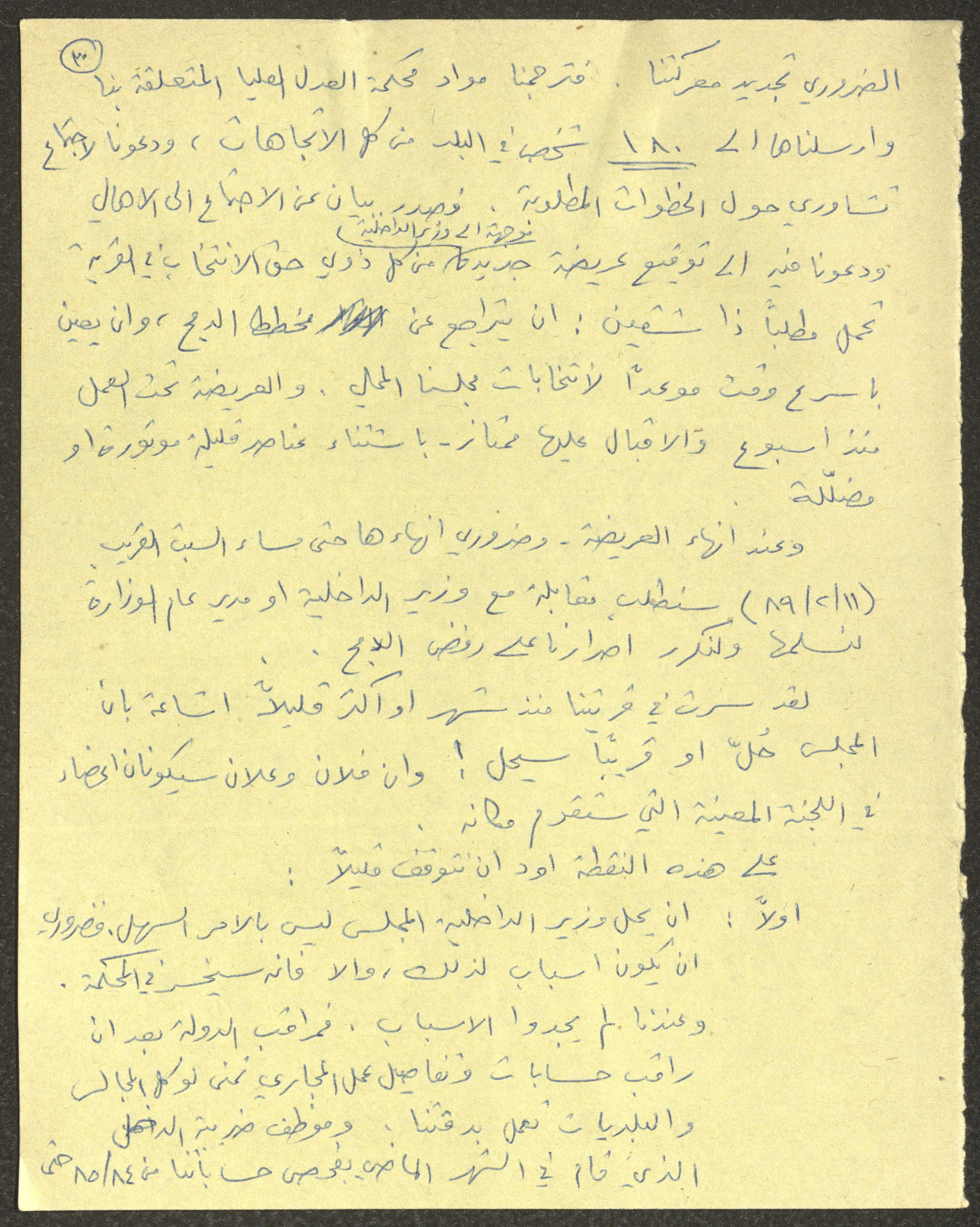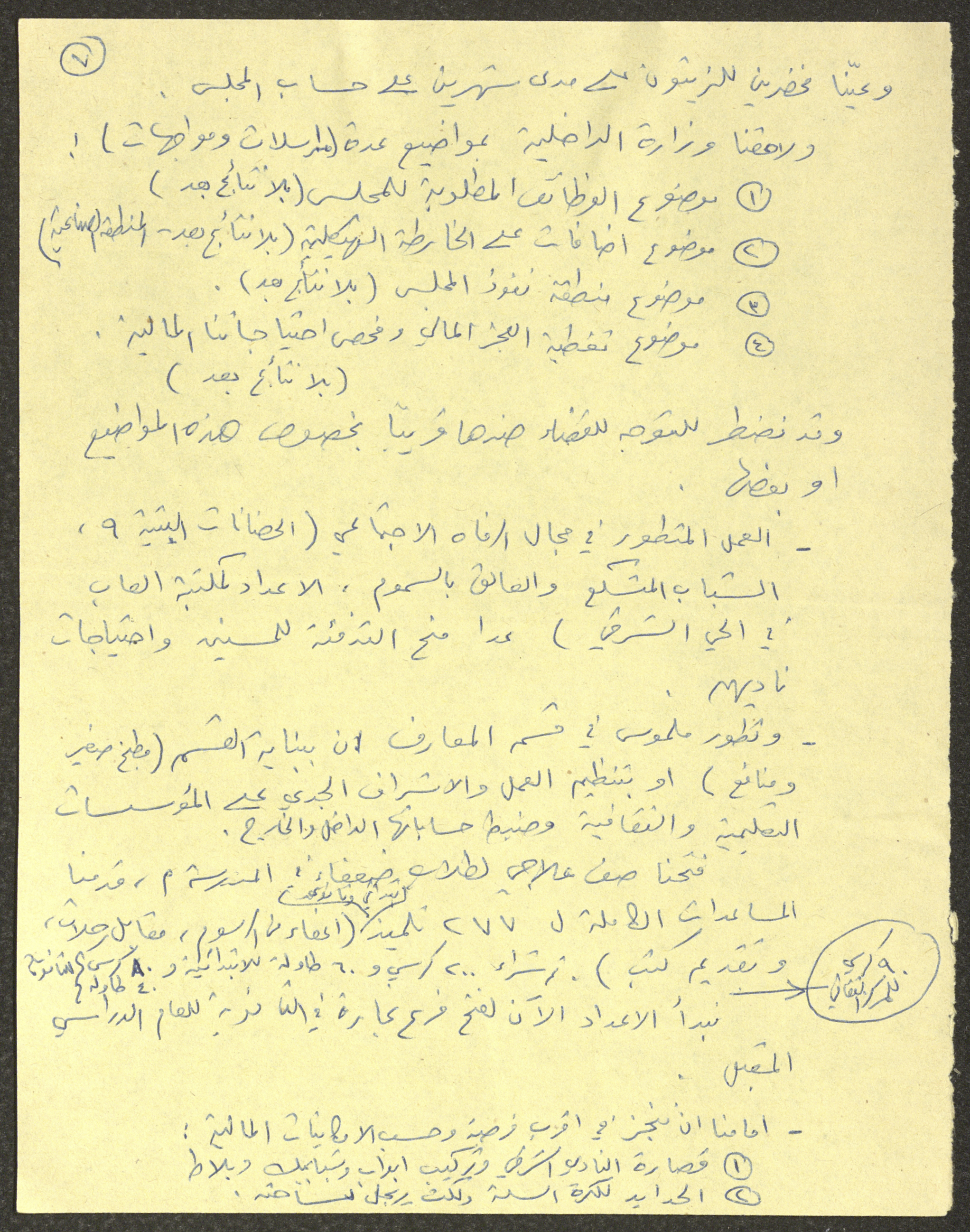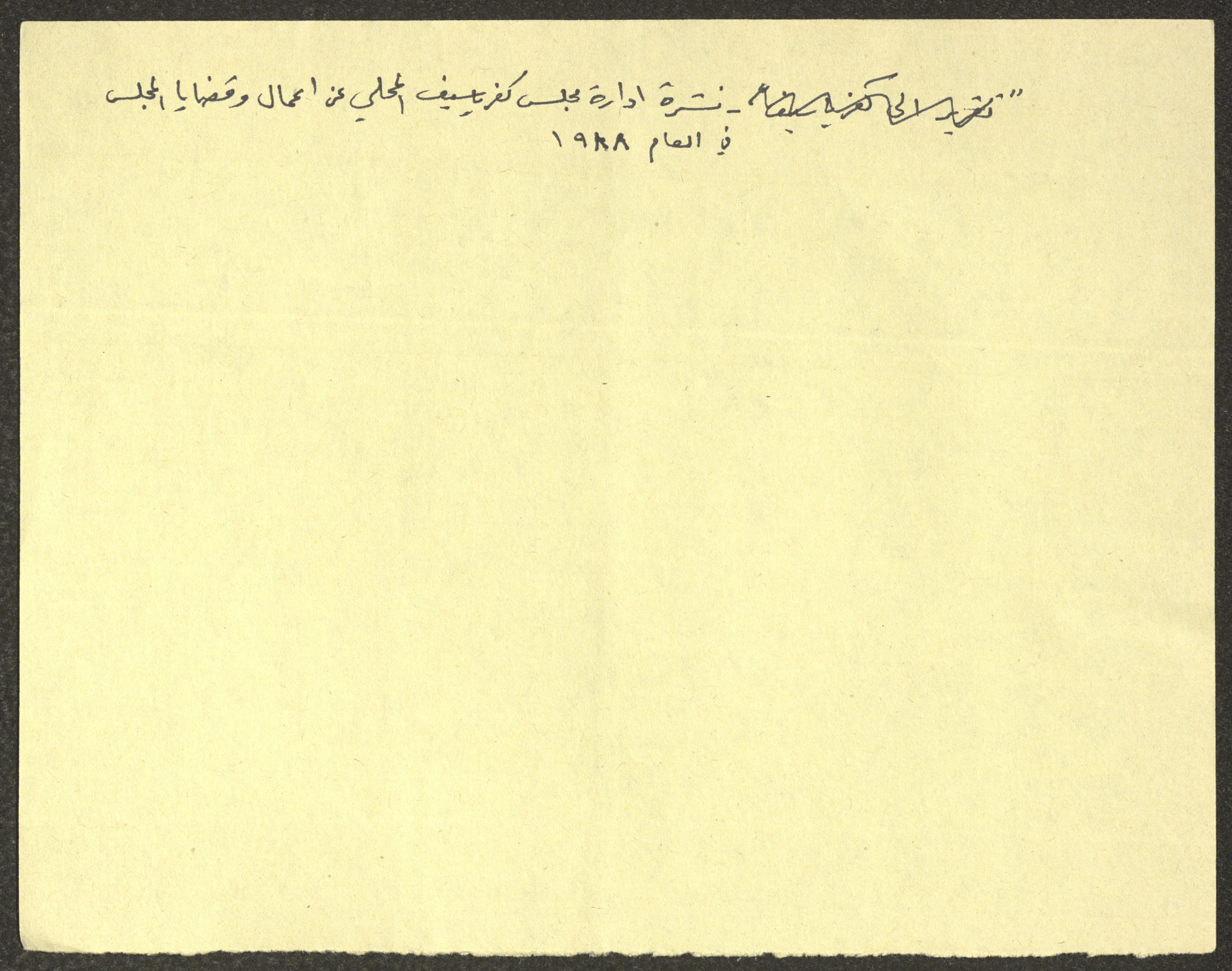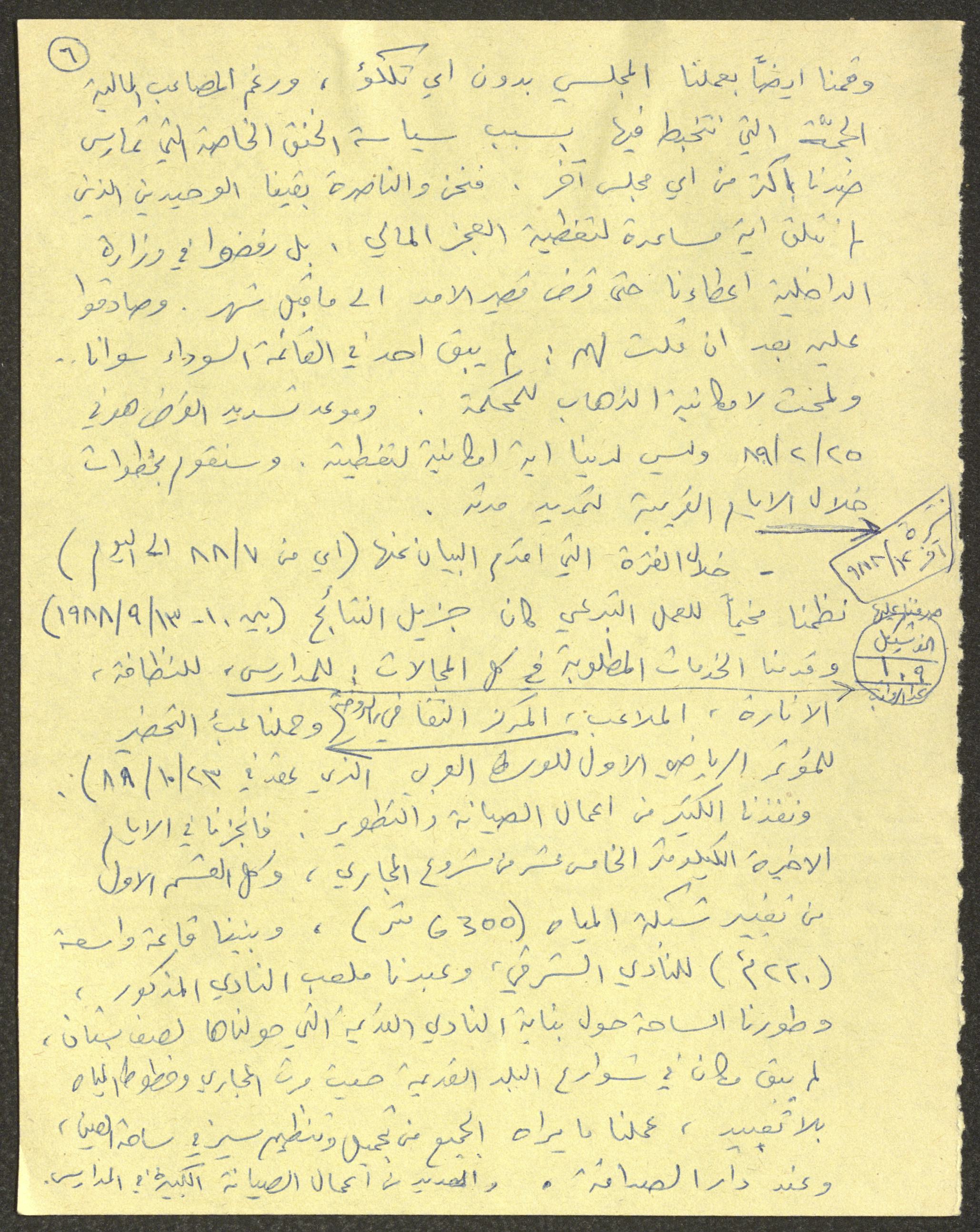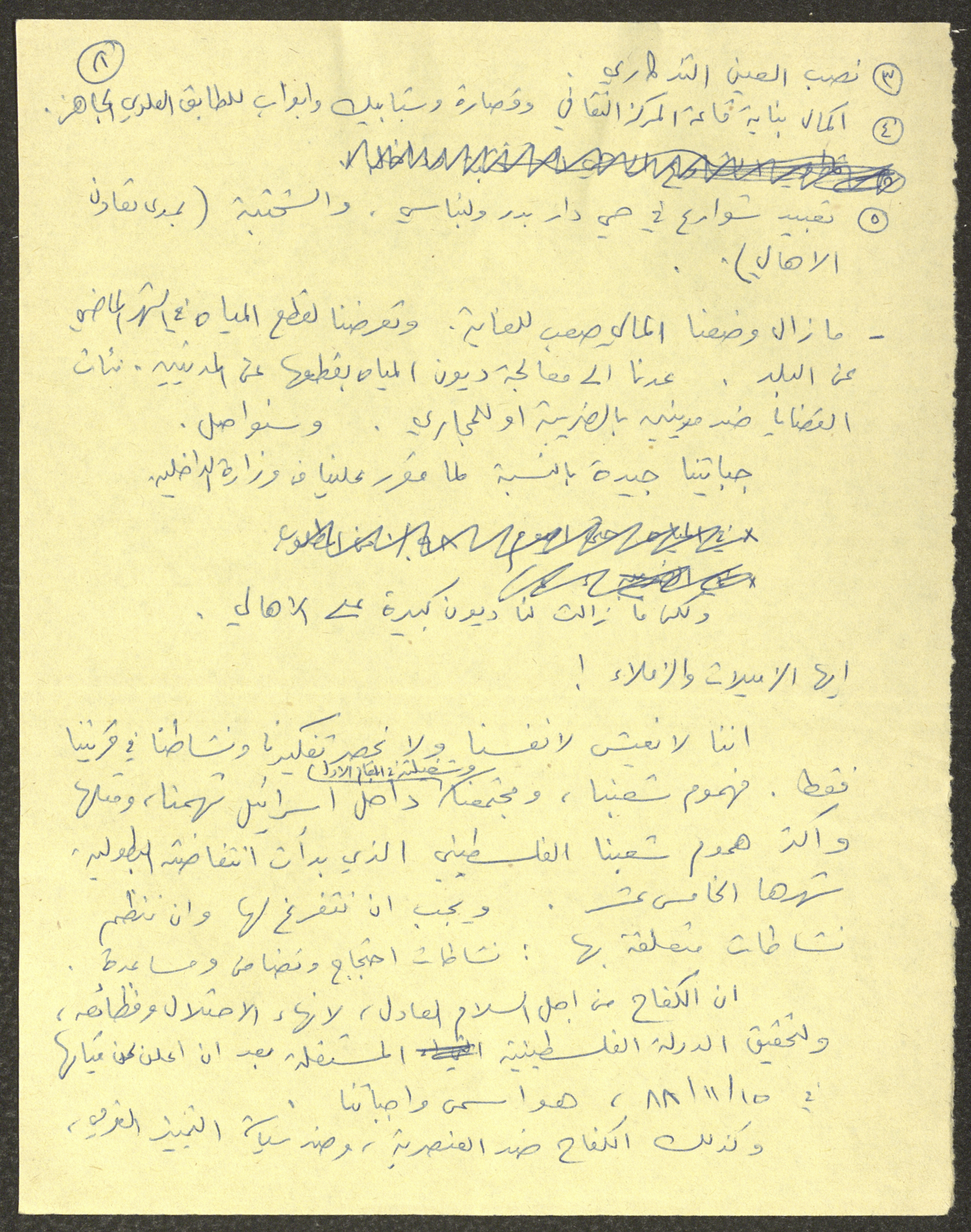 Found in the Nimr Murqus Collection, this document shows a statement submitted to the Council of the Popular Front branch in Kafr Yasif on 9 February 1989.