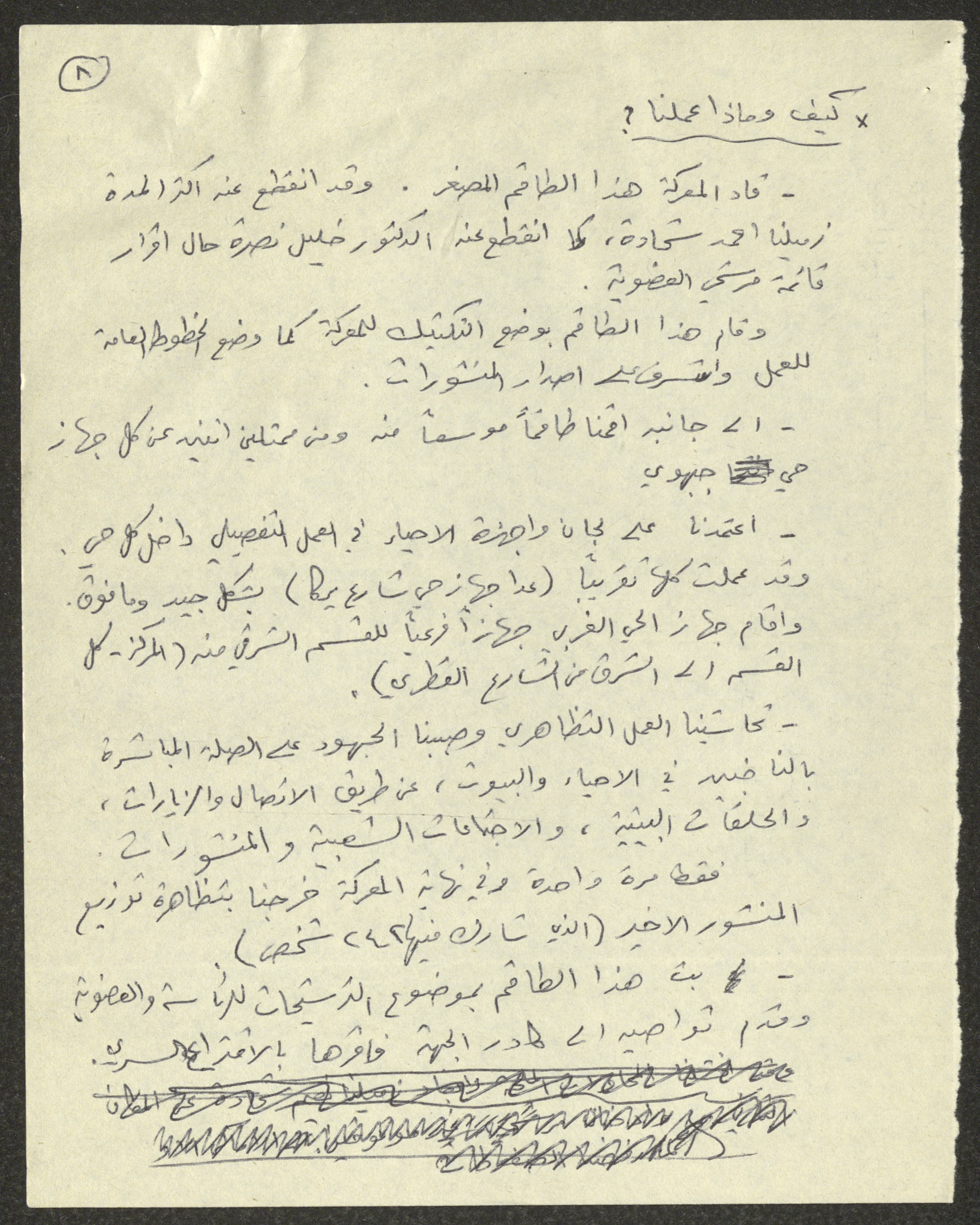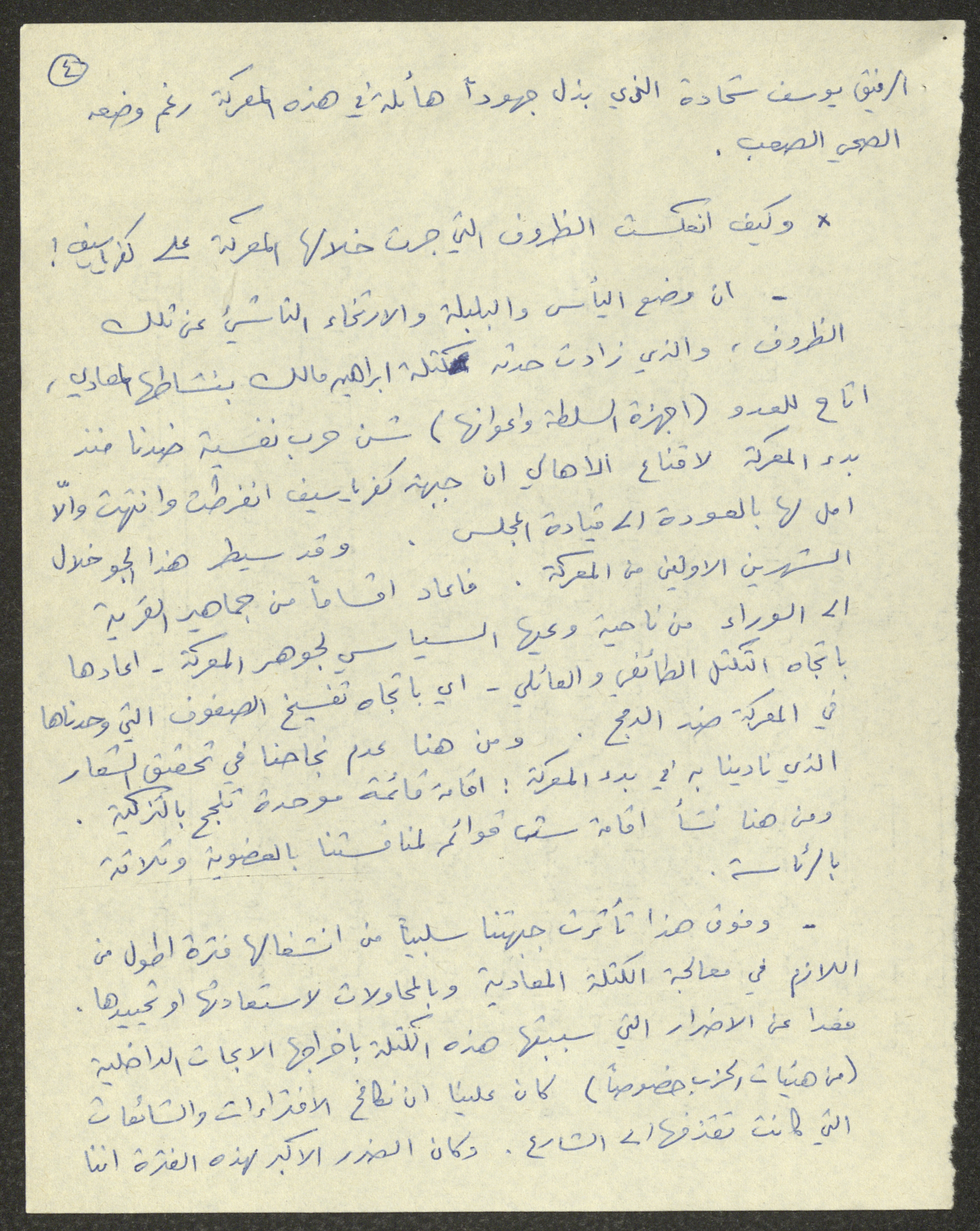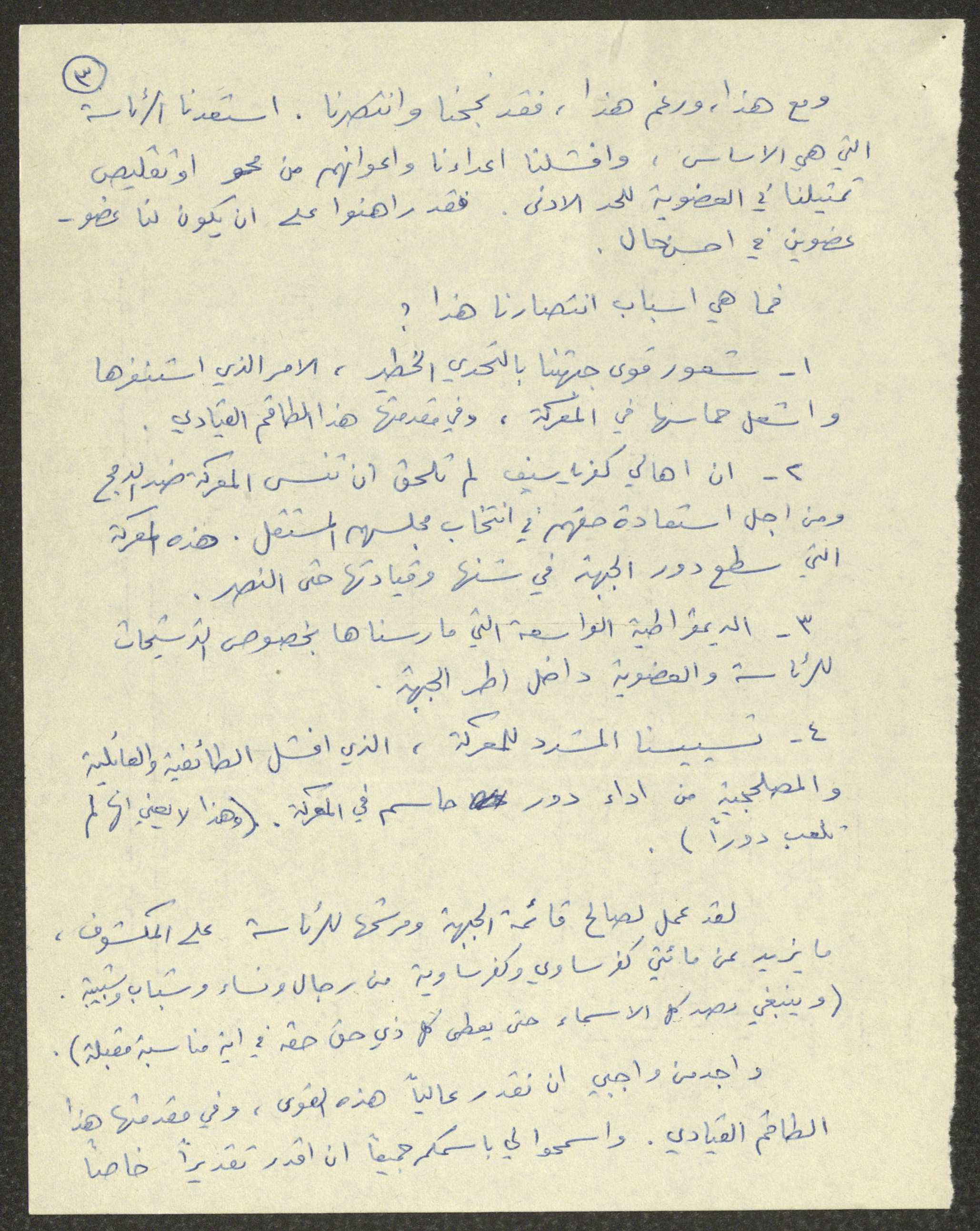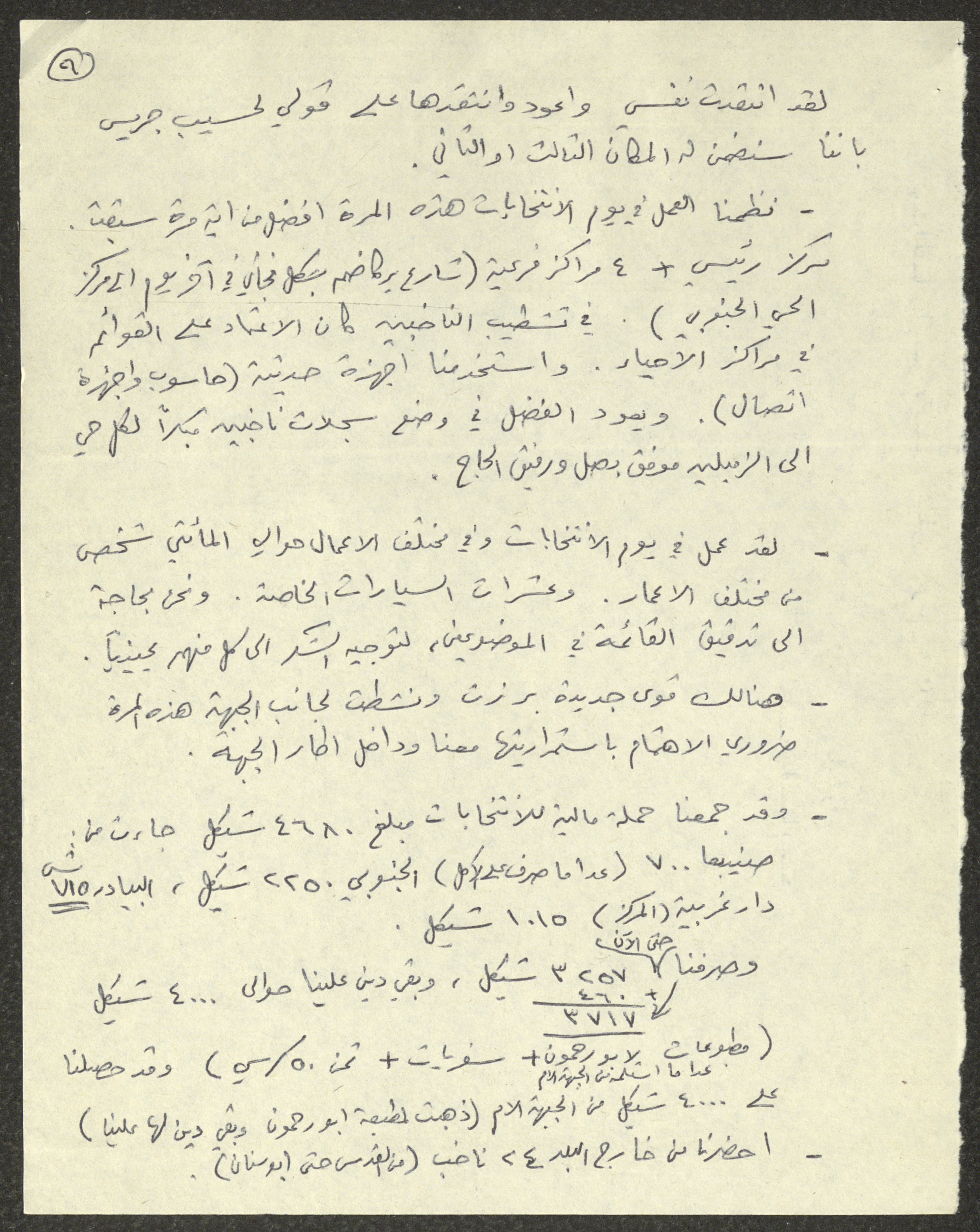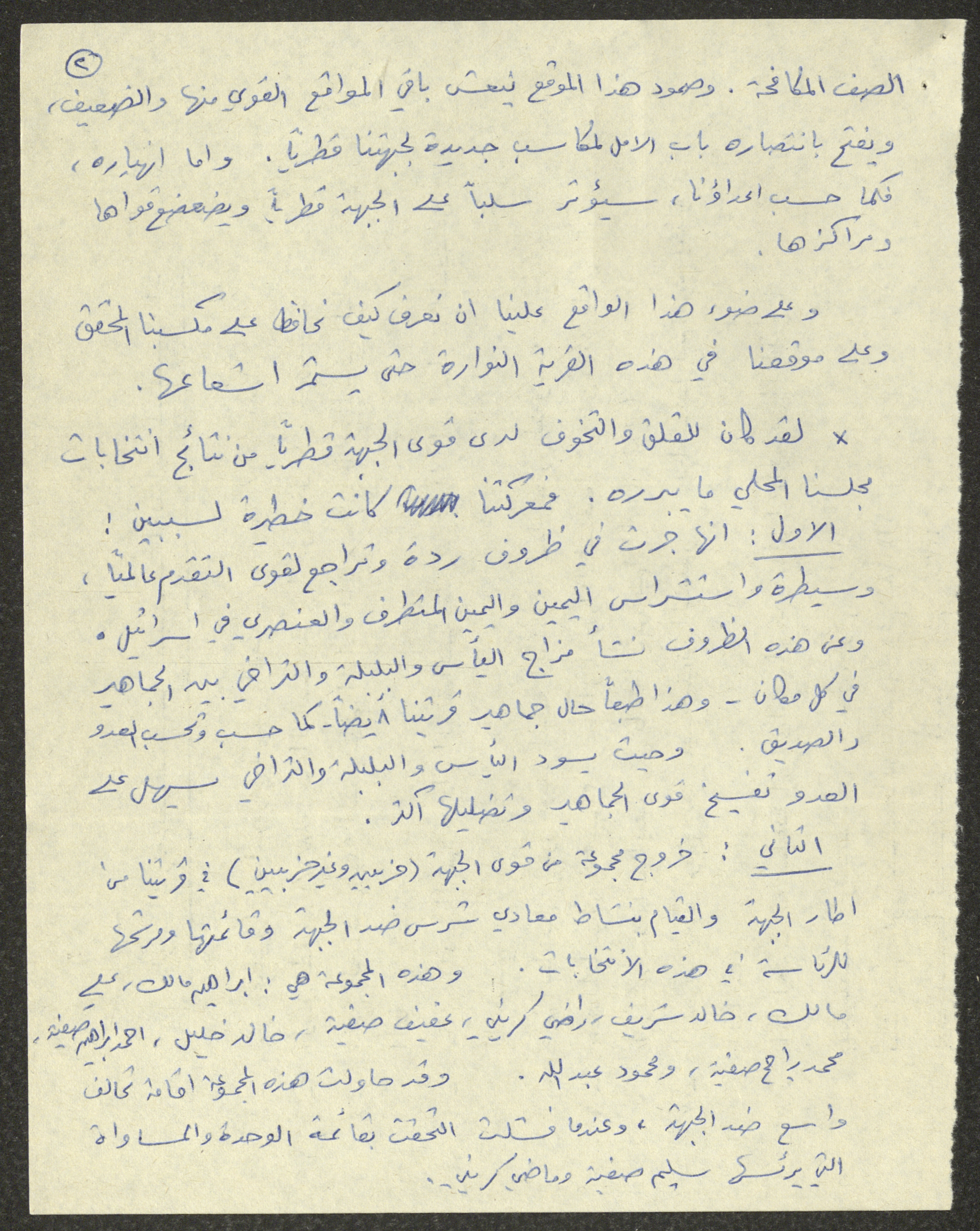 Found in the Nimr Murqus Collection, this document shows a summary of the 1990 local council elections in the village of Abu Snan in Galilee, which was written on 5 January 1991.