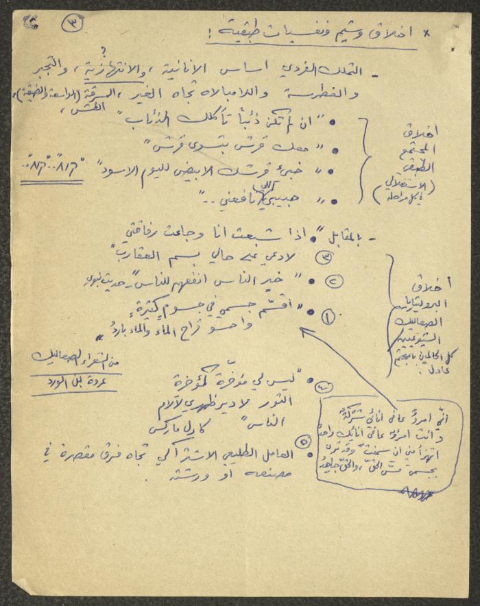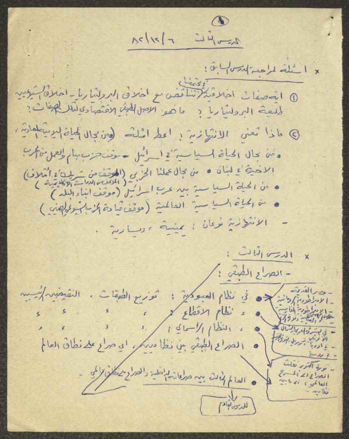 تمثل الوثيقة أحد الدروس التي قدمها نمر مرقس والذي حمل عنوان "الصراع الطبقي"، أُرخ في السادس من كانون الأول 1982، تحدث فيها عن الأنظمة الثلاث العبودية والإقطاعية والرأسمالية.