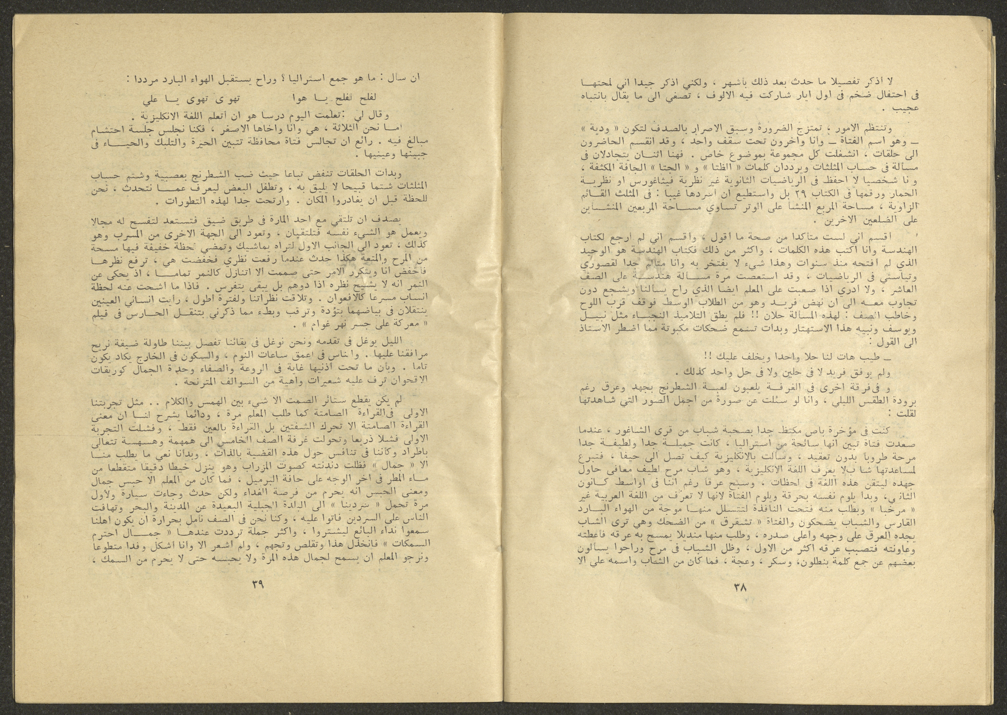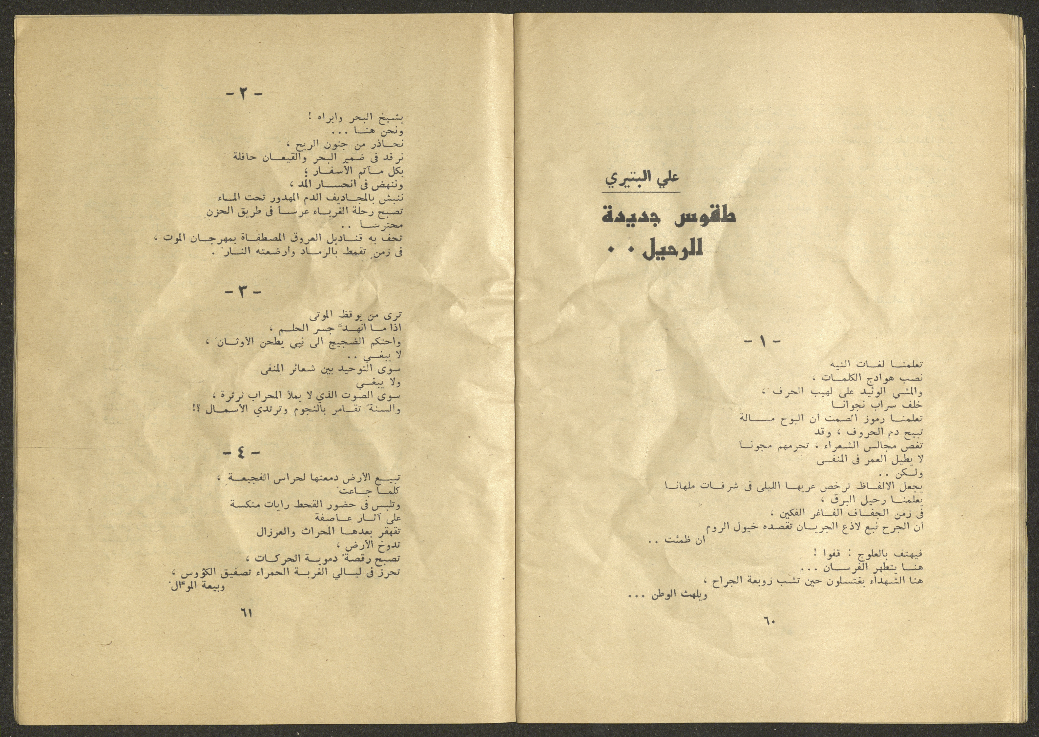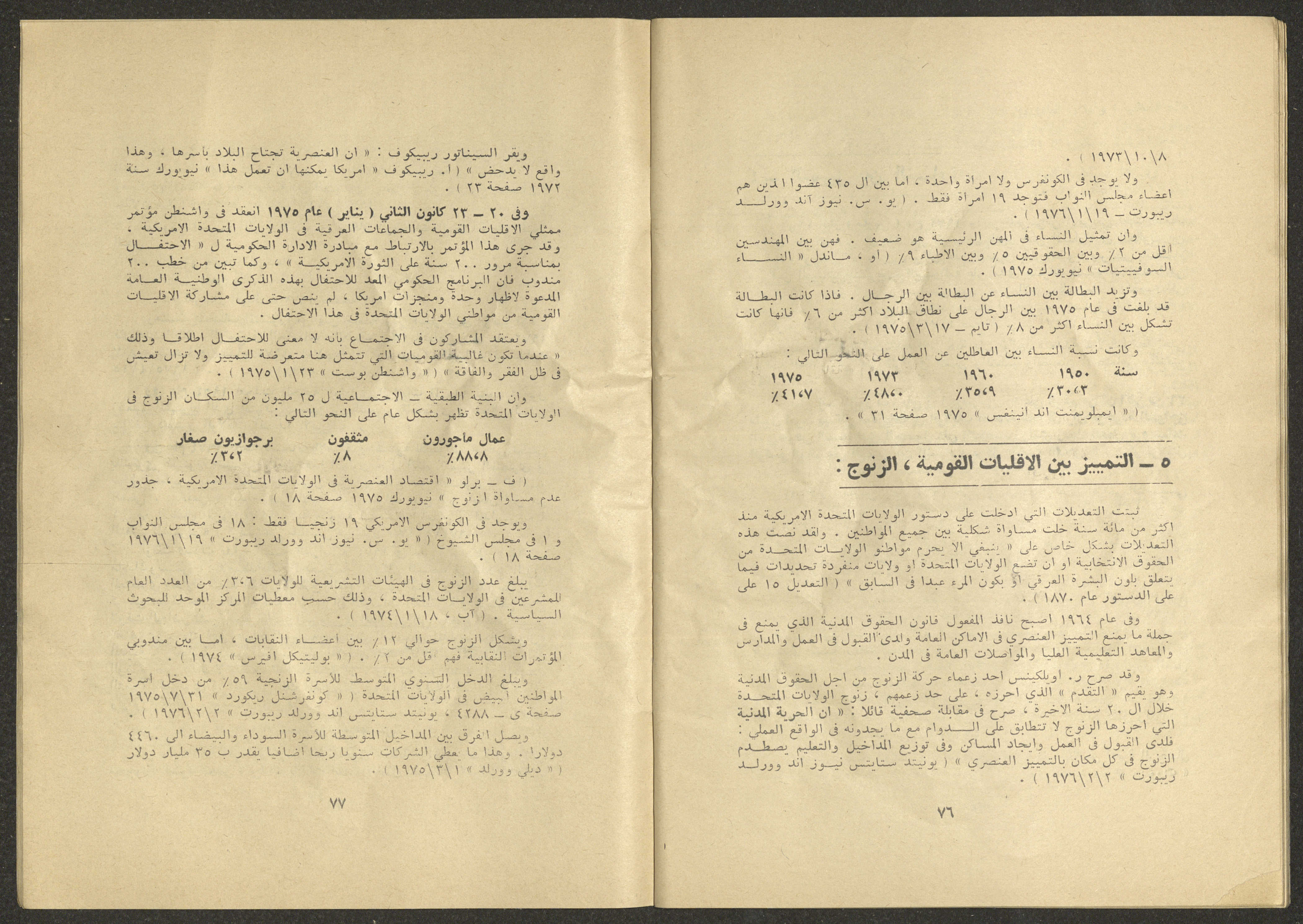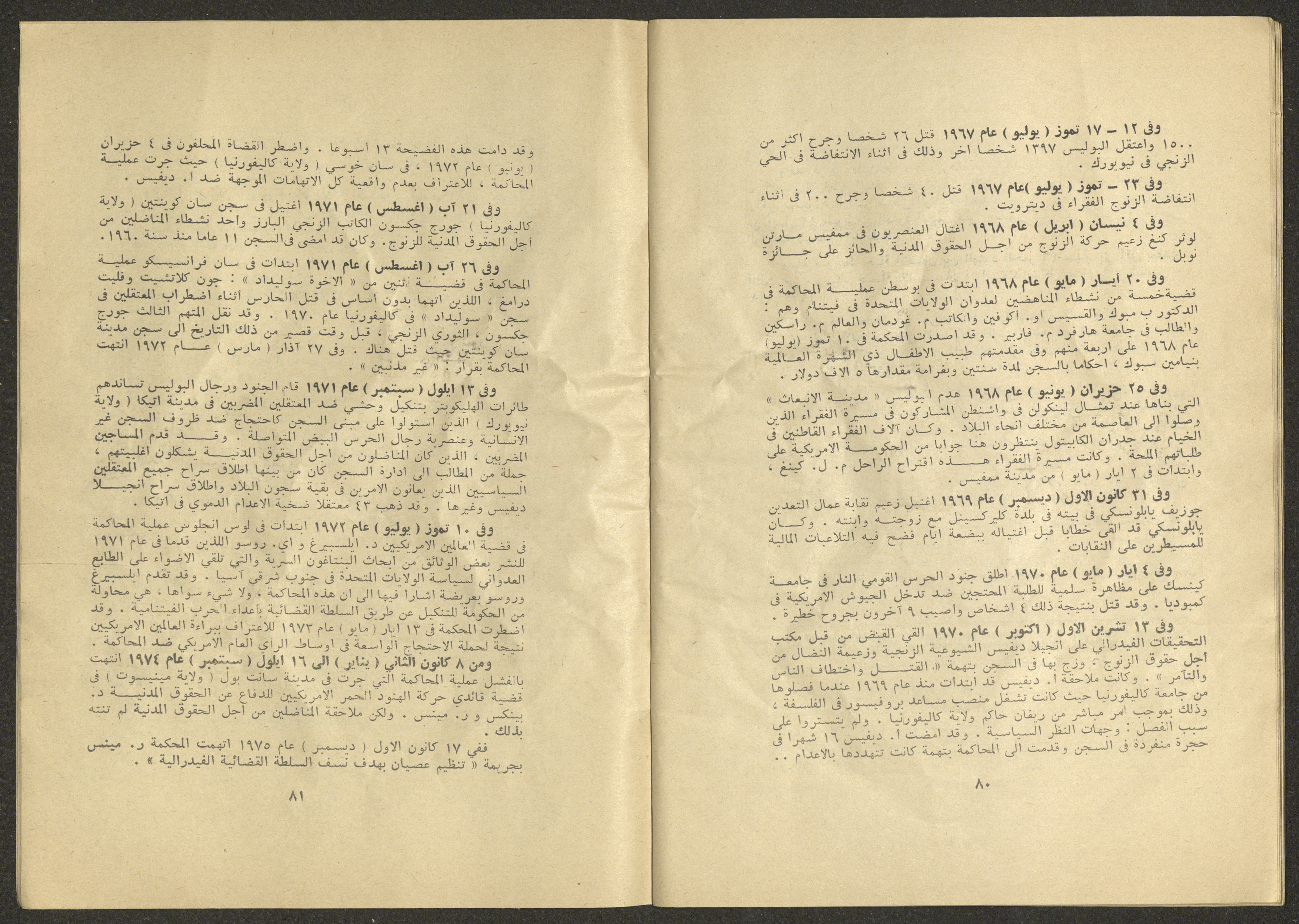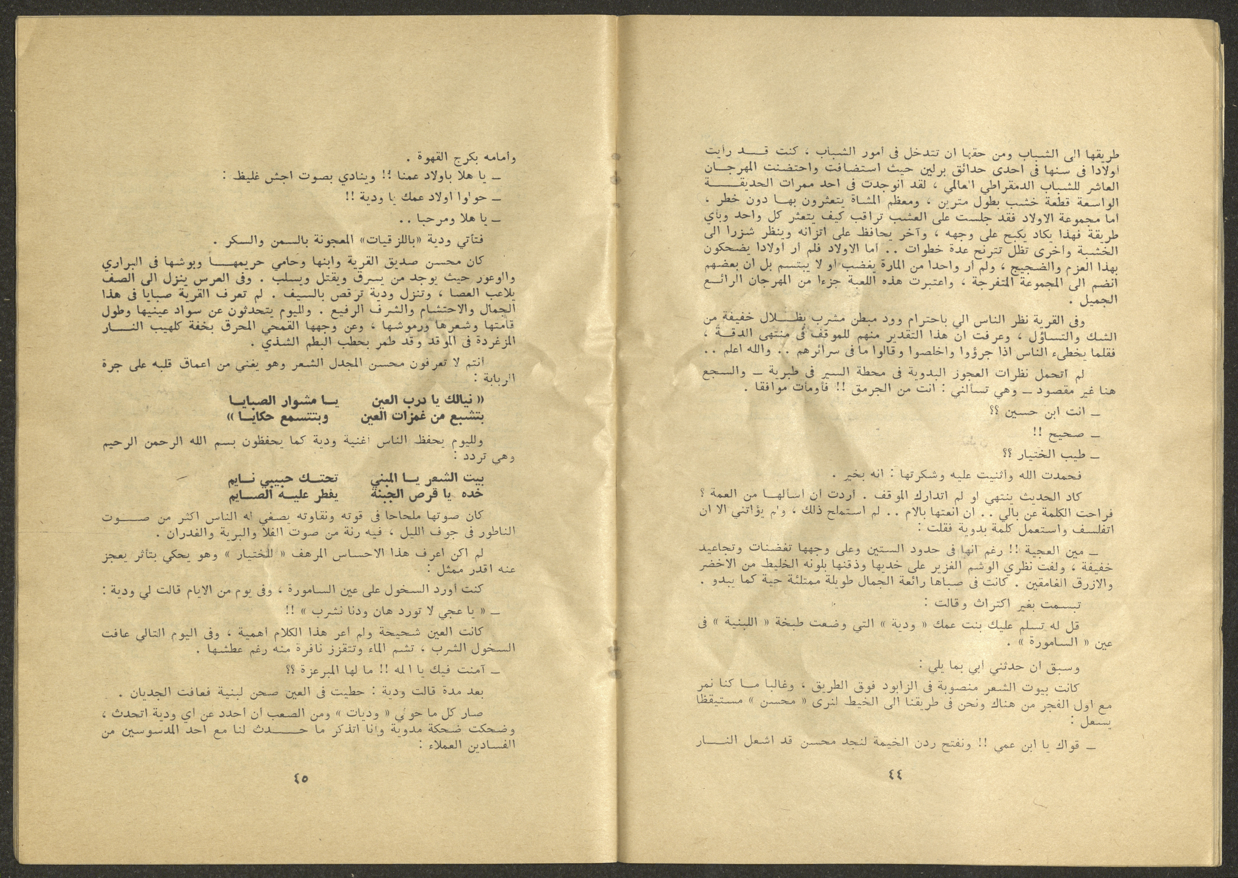 Printed at al-Ittihad Cooperative Press in Haifa, this issue is of al-Jadeed Magazine, which is a monthly magazine of progressive national thought and culture, established in 1851 and its first editor was Hanna Naqqara, while its editor-in-chief was Antoine Shalhat. The issue included the following: 1. The opinion of al-Jadeed by the editor. 2. Statement of Arab writers, poets and artists to public opinion. 3. “On the Youth Working in Israel,” by Yoram Gujansky. 4. “Hub Bela Bedaya Wa Bela Nehaya (Love Without Beginning Nor End)” a poem by Hussein Muhanna. 5. The play "The Prisoner" by Jamal Bannoura. 6. "The Evolution of the Arabic Poetic Language in Form and Content" by Farouk Mwasi. 7. A poem titled "Qabl Kharab al-Basra (Before the Destruction of Basra)" by Nayef Salim. 8. The issue's symposium titled "The Story (of My Village) by Abdel-Hakim Qasem" by Farouk Mwasi. 9. "Ash-Shaheed Wal Qafela (The Shaheed and the Convoy)" a poem by Salim Mwasi. 10. Violation of constitutional and civil liberties in capitalist countries, by Novosti Agency. 11. A "Friendly" story by Muhammad Nafaa. 12. The story "Song of the Next Seasons" by Issam Khoury. 13. The story of "The Chains" by Naji Thahir. 14. “A New Ritual of Departure” poem by Ali al-Battiri. 15. "Alef, Lam, Meem" is a poem by Muhammad Hamzeh Ghanyem. 16. "Taab as-Sabah (The Fatigue of the Morning" poem by Wahib Nadim Wahba. 17. "Al-Atfal Yotaredoon al-Jarad (Children Chasing Locusts)" a poem by Abdel Latif Akl. 18. "Jerahi Lam Tamot (My Wounds Are not Dead)" poem by Abdel-Qadir Saleh. 19. Fadwa Toukan and the poetry of resistance by Fakhri Saleh.