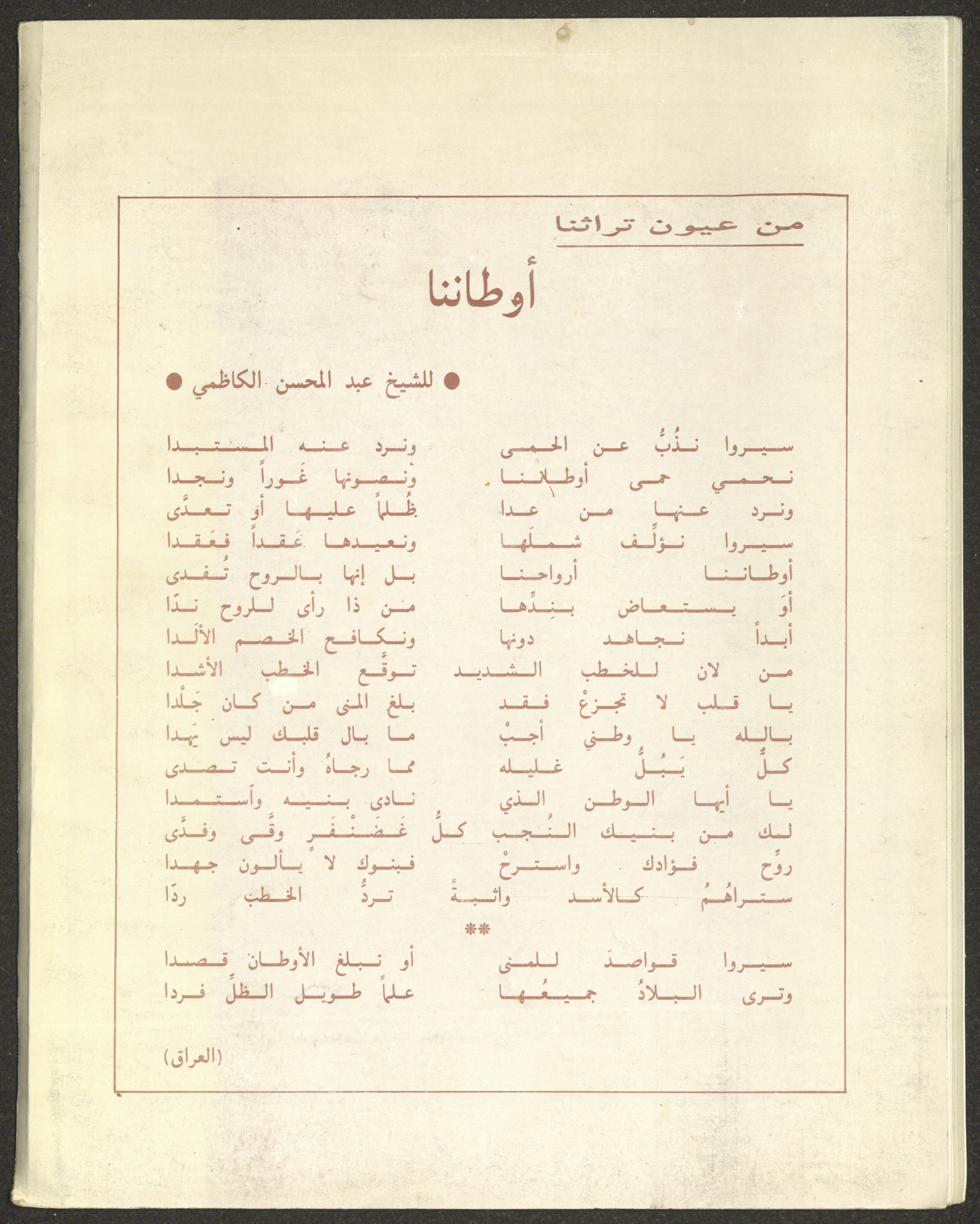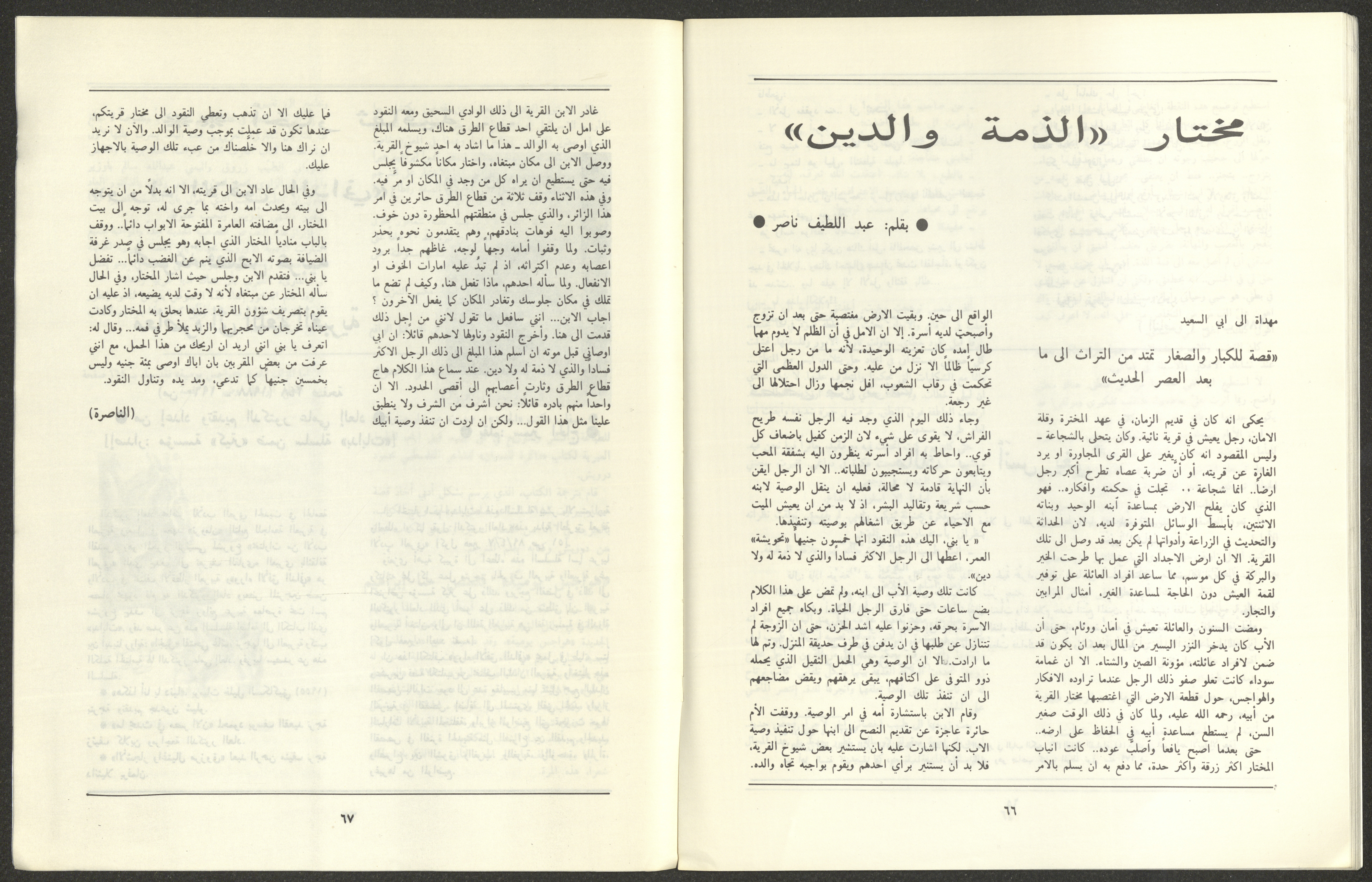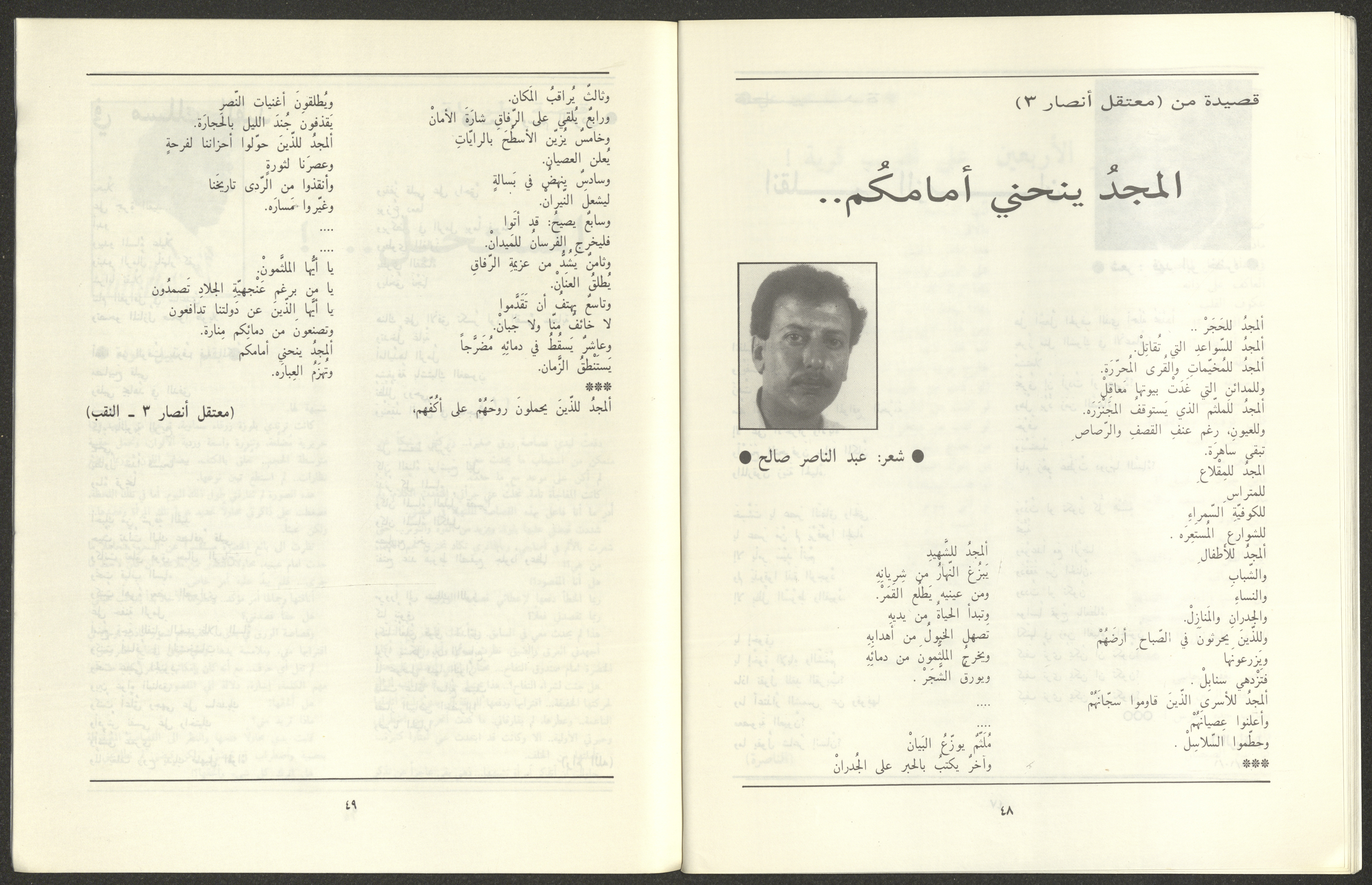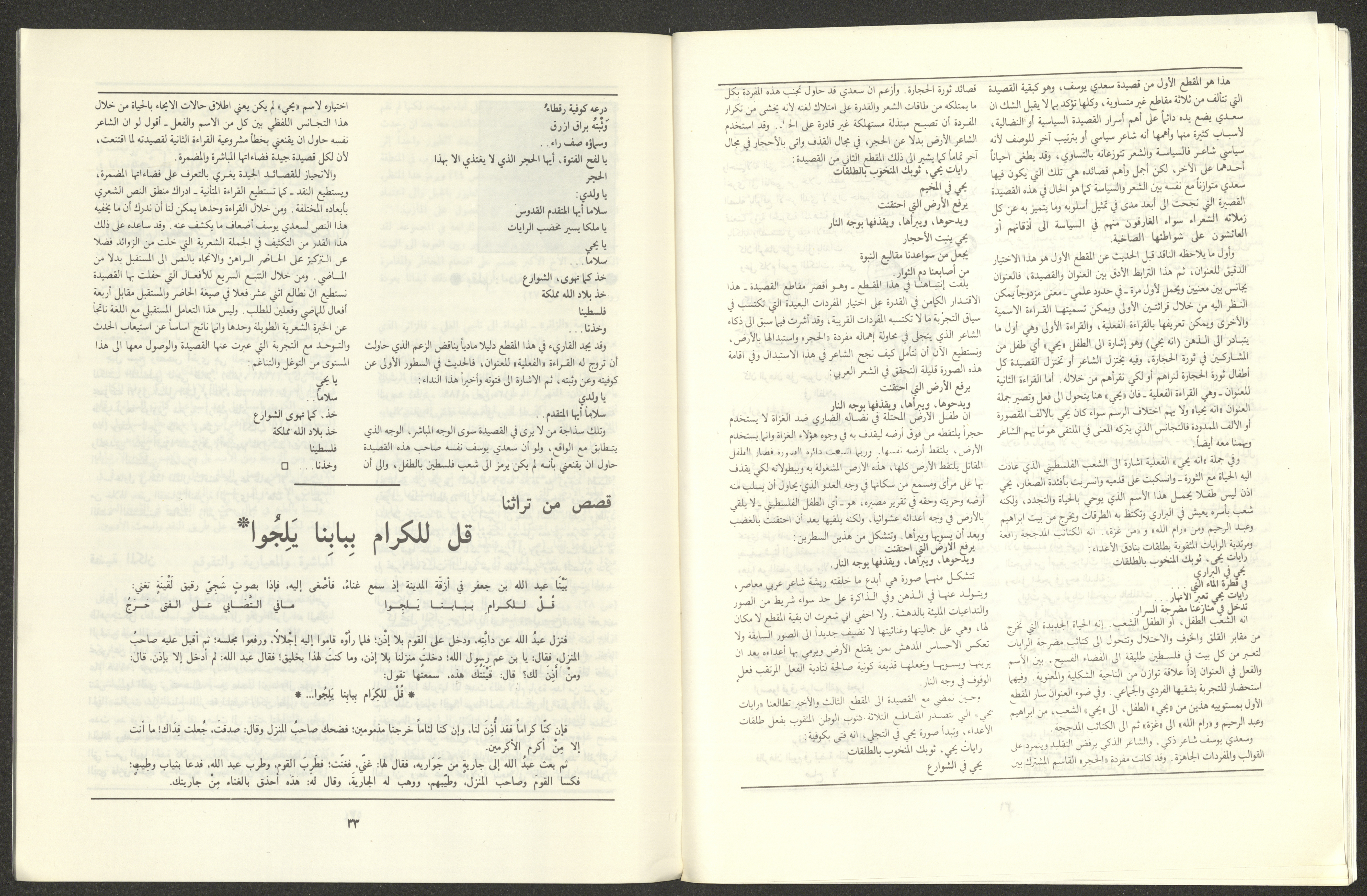The tenth issue of the al-Jadeed magazine, a monthly magazine for progressive national thought and culture established in 1951, issued in October 1989 under the supervision of its first editor Hanna Naqara and its chief editor Ibrahim Malik. It was printed at the Union Cooperative Press in Haifa and two drawings by the artist Sanjana Awad were printed on the cover of the magazine. The issue included the following: 1. The talk of the month, "I'm Going to Get Revenge," by the magazine's editorial board. 2. A word for readers titled "Al-Jadeed Welcomes a New Year and Says Goodbye to Another" by Samih Sabbagh. 3. A series of episodes titled "The Intellectual and Political Development of the Palestinian Communist Party from 1936 -1943 (Episode 1) by Marwan Mashreqi. 4. A study titled "The Dialectic of Death and Life in the Bayatian Poem (The Mask)" by Suleiman Jubran. 5. A study titled “A Study in the Poems of the Intifada: The Shock of the Stones,” by Abdel-Aziz l-Maqaleh. 6. An article titled "Literary Issues through (Jabal Sikh and Other Stories)" by Mahmoud Ghanayem. 7. A critical article titled "Poetry Grows Through Communication and Bereavement in Abdennasser Saleh's Diwan (Glory Bows Before You)" by Sobhi Shahrouri. 8. A poem titled "Maqos Muroor al-Arabaeen Ala Takhrib al-Qaryah" (The Bill of 40 Years Passing Since the Destruction of the Village) by Taha Mohammad Ali. 9. A poem titled "Enqalaba az-Zaman" (The Time Overturned) by Fahd abu Khadra. 10. A poem titled "Al-Majdo Yanhani Amamakom" (Glory Bows Before You) by Abdennaser Saleh while at Ansar Prison 3 "The Naqab". 11. A poem titled "Fi Maslak al-Qayd" (In the Path of Chains) by Waseem al-Kurdi. 12. A long story titled "The Impossible" by Nabil Odeh. 13. A story titled "Mukhtar (Dhimma and Religion) by Abdel-Latif Naser. 14. A variety of cultural news, including "news about the release of new books", "news about Palestinian theatre and art" and others.