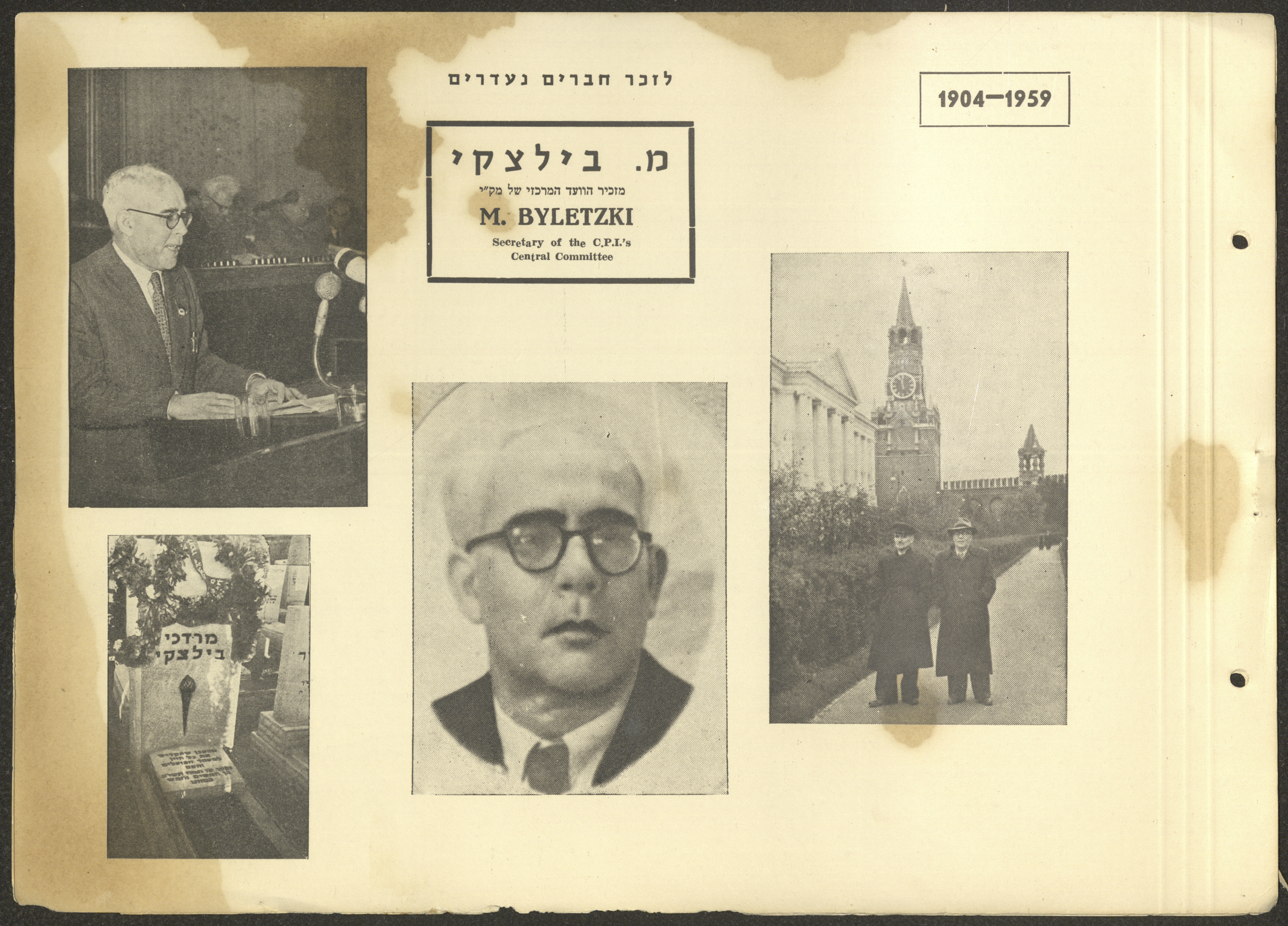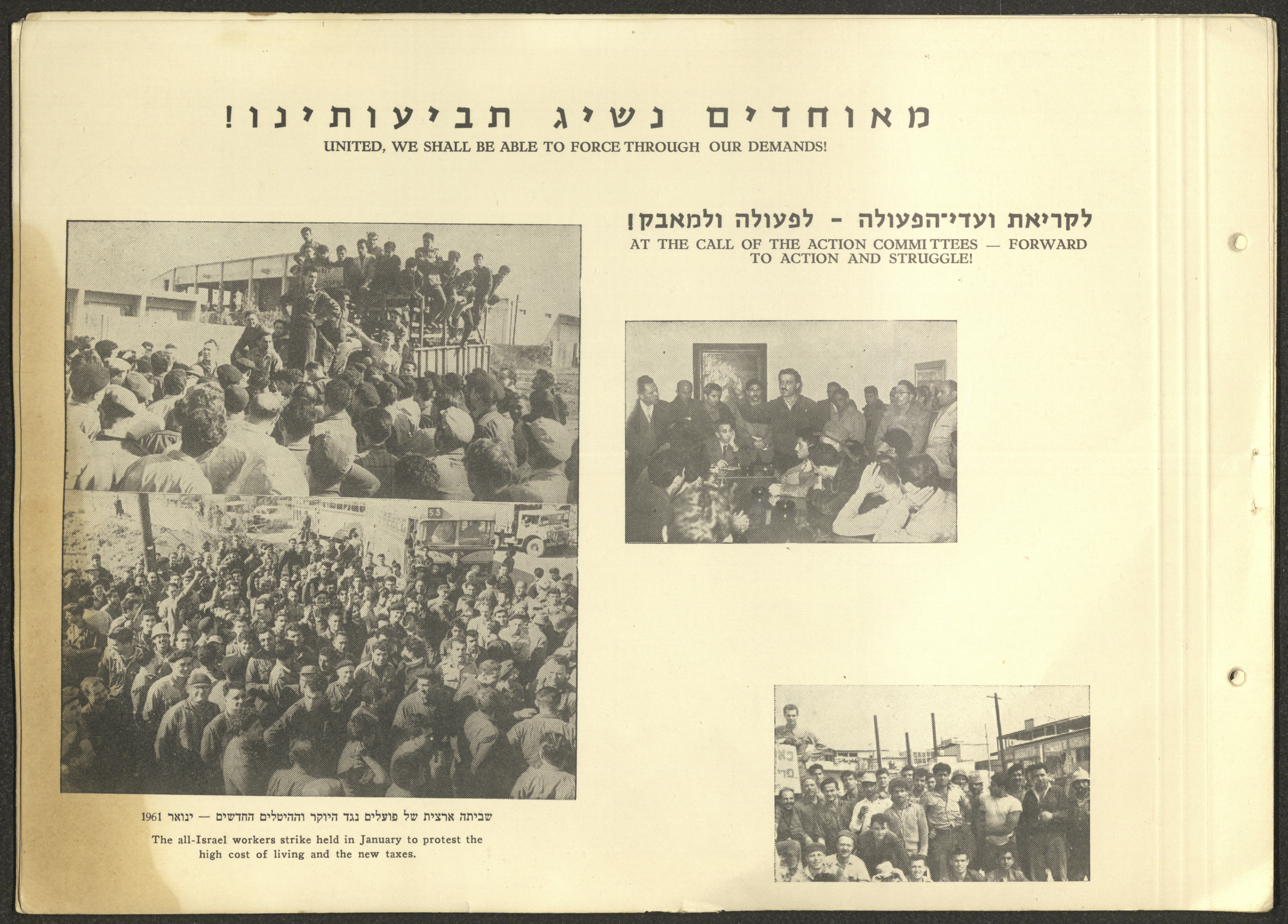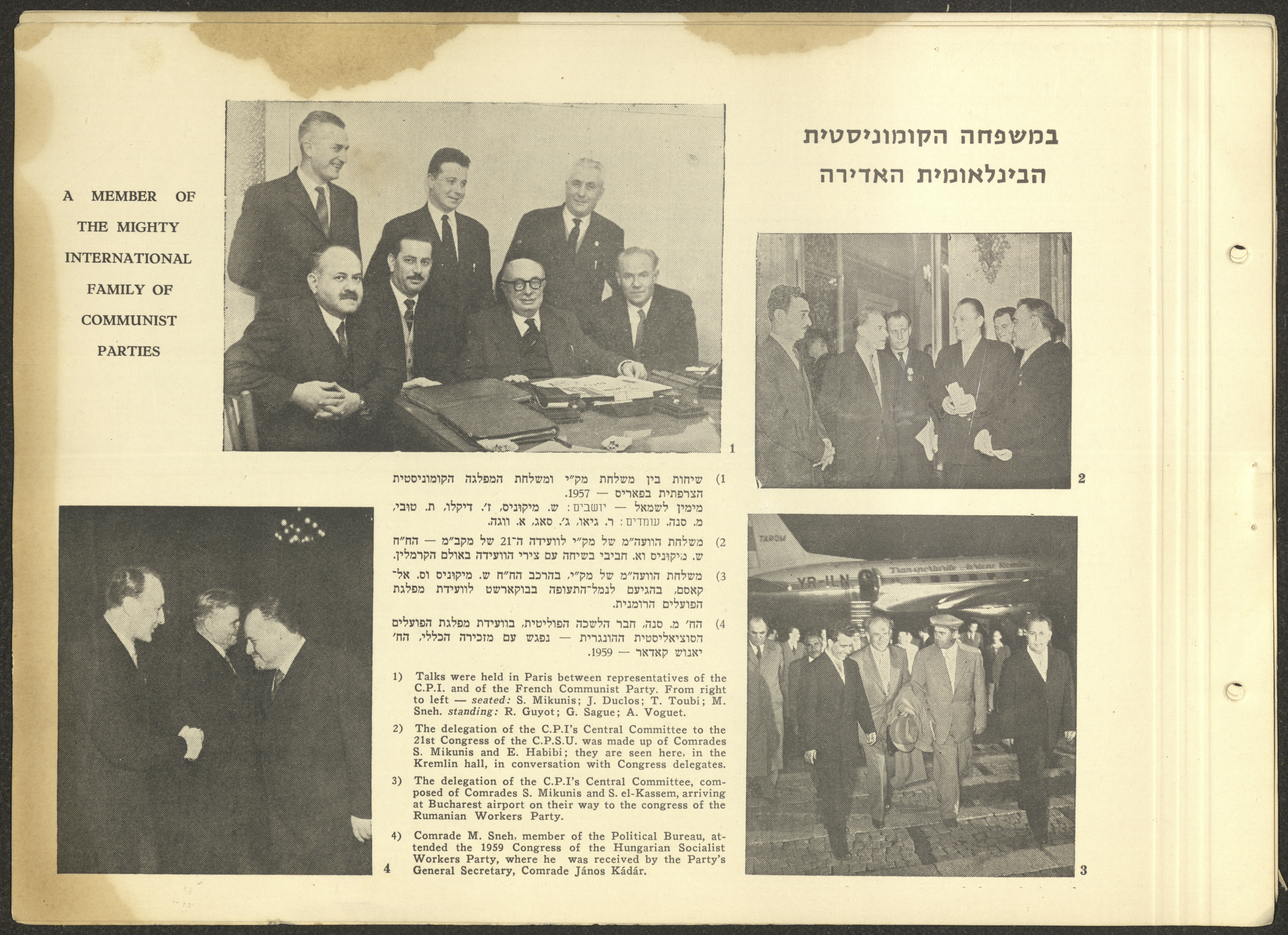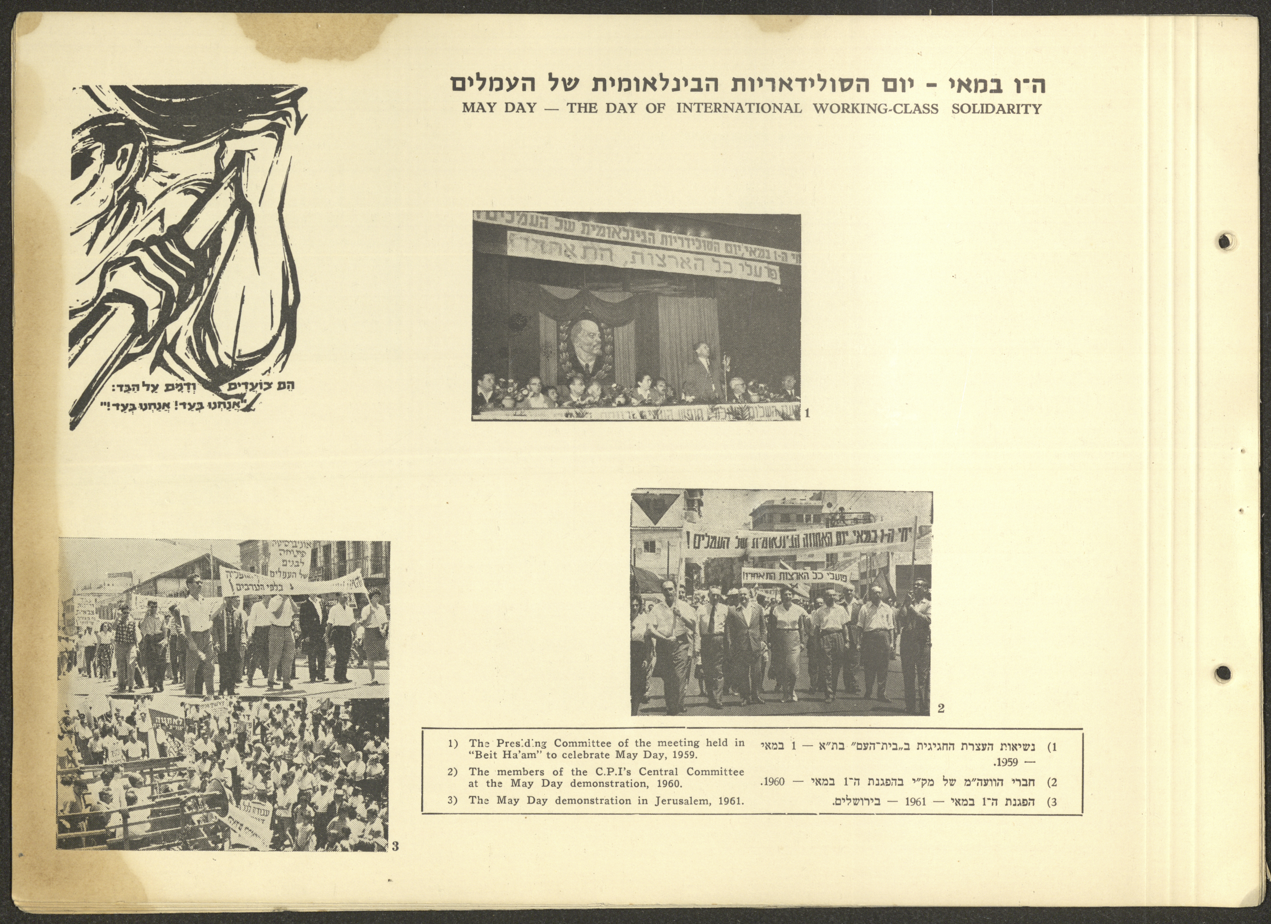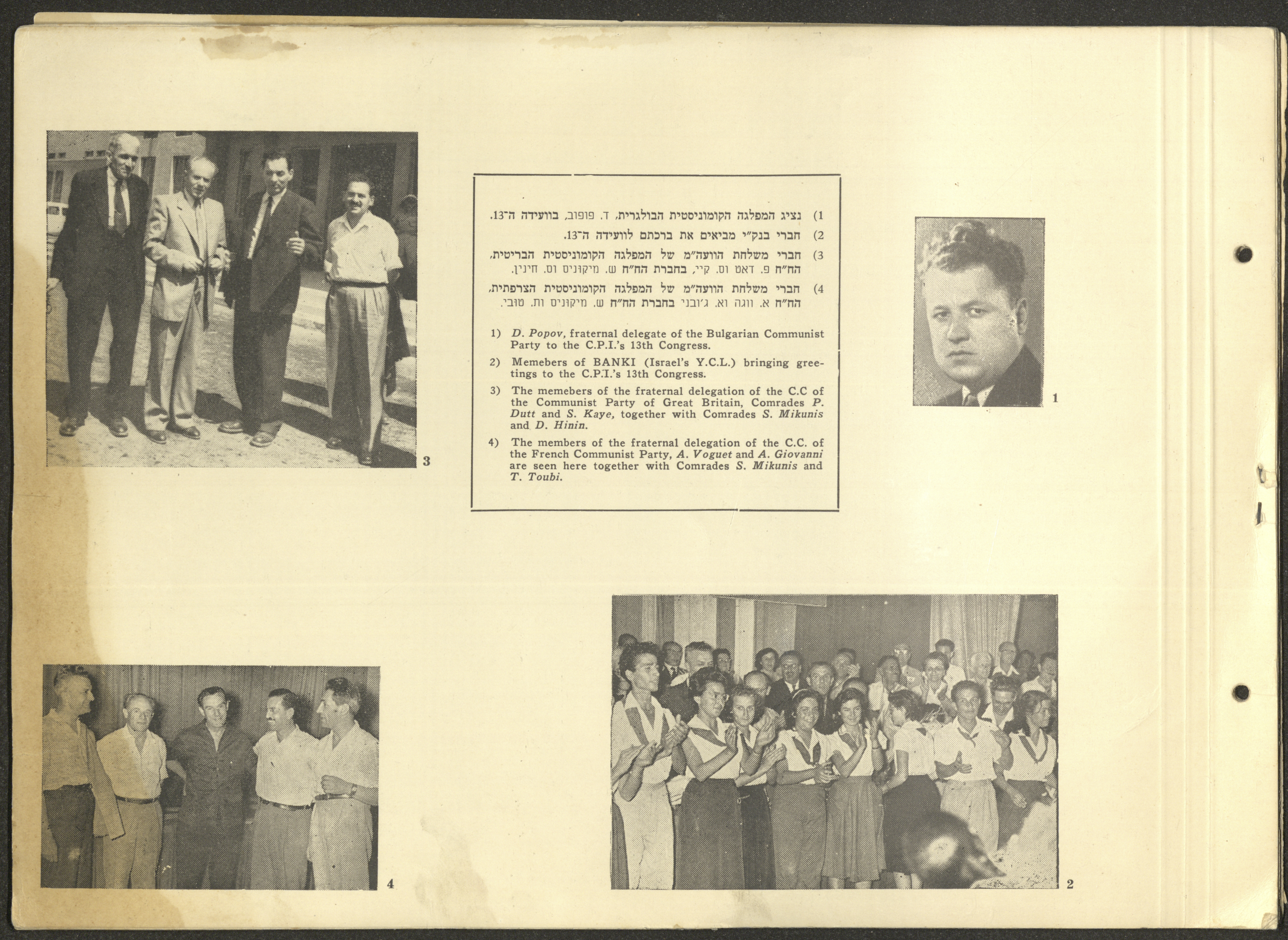 وثيقة مكتوبة باللغة العبرية تتضمن ملخصًا لأهم نشاطات الحزب الشيوعي الاسرائيلي في الفترة الممتدة ما بين دورتي مؤتمر الحزب الثالثة عشر والرابعة عشر الواقعة بين 1957-1961 بعنوان "معارك النضال بين مؤتمرين".
