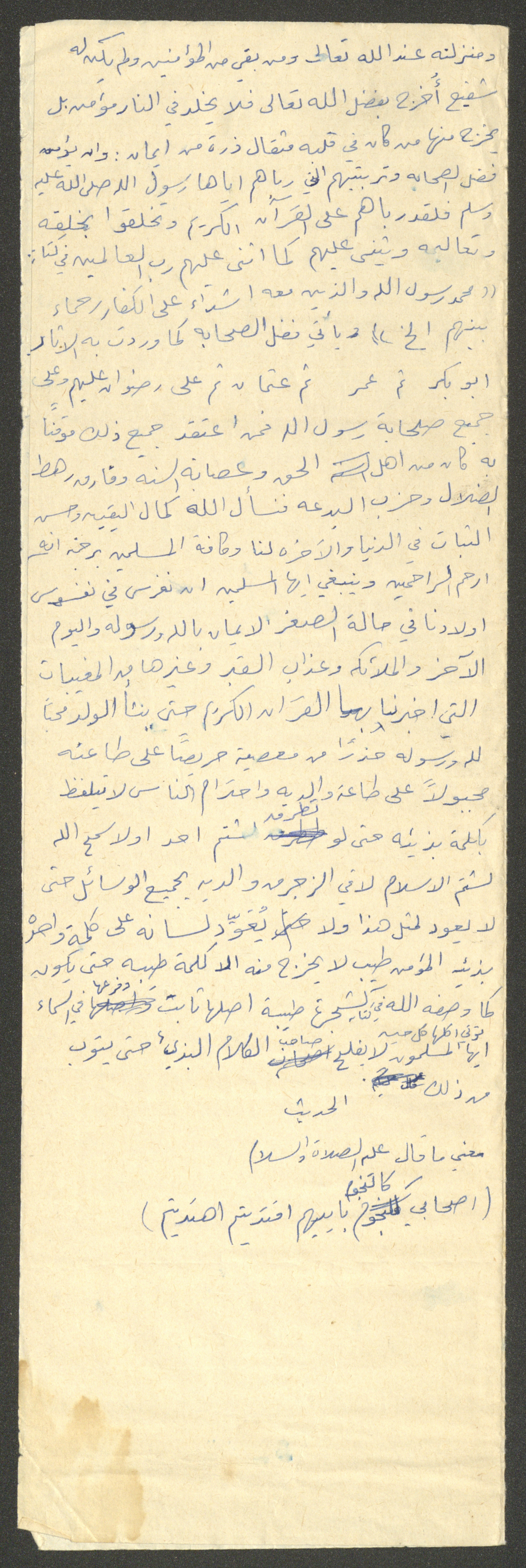 وثيقة مكتوبة بخط اليد تتضمن خطبة يوم الجمعة غير معنونة، ألقاها الإمام معروف اشتية في مسجد في قرية سالم شمال شرق نابلس في ثمانينيات القرن العشرين. بدأها بحمد الله وتحدث فيها حول أهمية شهادة التوحيد والإيمان بعذاب القبر، كما دعم خطبته بعدد من الآيات القرآنية والأحاديث النبوية.