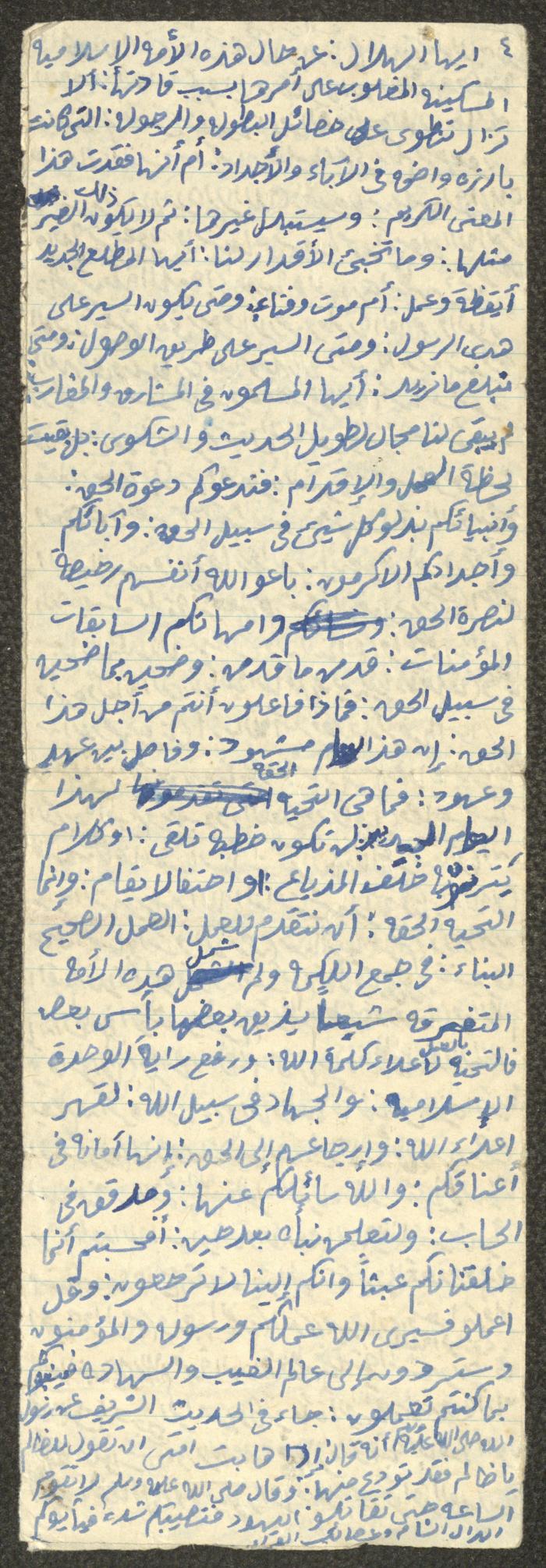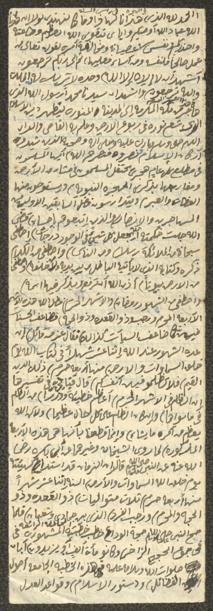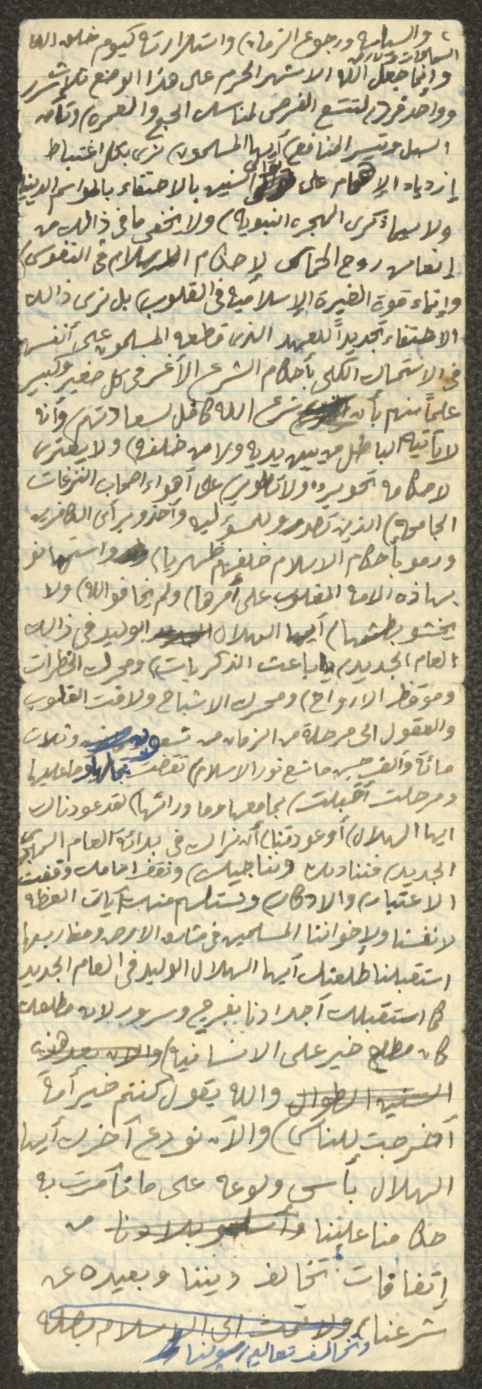 وثيقة مكتوبة بخط اليد تتضمن خطبة يوم الجمعة بعنوان "في الهجرة في رأس السنة"، ألقاها الإمام معروف اشتية في مسجد في قرية سالم شمال شرق نابلس في سبعينيات القرن العشرين. بدأها بحمد الله وتحدث فيها عن الهجرة النبوية وعن بداية السنة الهجرية، مدعمًا خطبته بعدد من الآيات القرآنية والأحاديث النبوية.