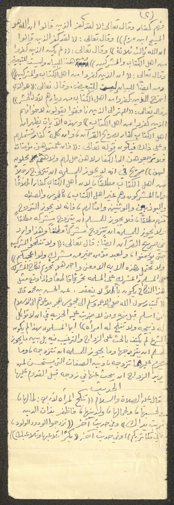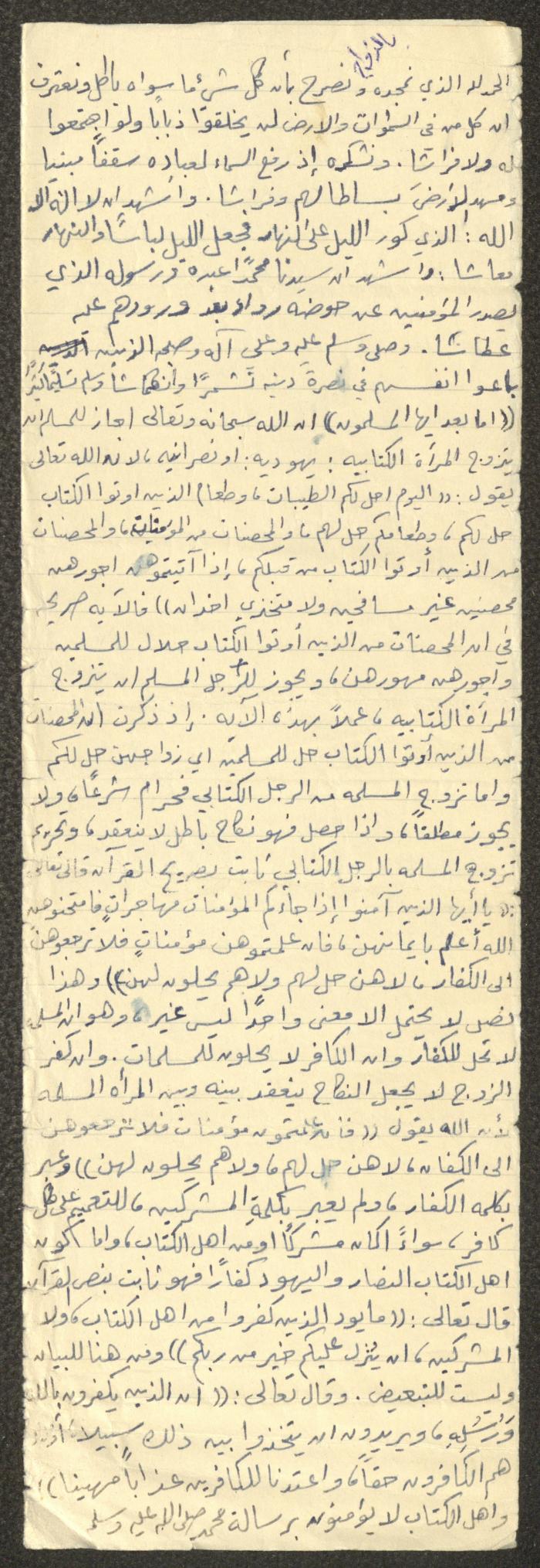 وثيقة مكتوبة بخط اليد تتضمن خطبة يوم الجمعة بعنوان "بالزواج"، ألقاها الإمام معروف اشتية في مسجد في قرية سالم شمال شرق نابلس في ثمانينيات القرن العشرين. بدأها بحمد الله وتحدث فيها عن تحليل زواج الرجل المسلم بالمرأة الكتابية أي اليهودية أو النصرانية، مدعمًا خطبته بعدد من الآيات القرآنية والأحاديث النبوية.