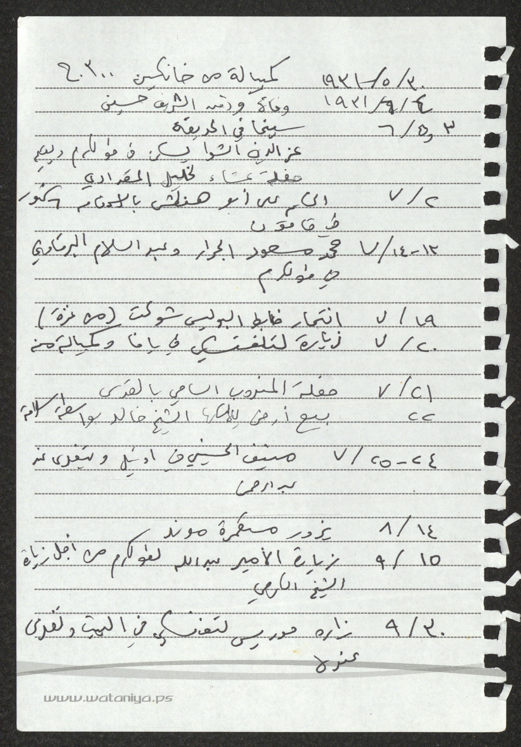 وثيقة مدونة بخط يد سميح حمودة وباللغة العربية، احتوت ملاحظات حول تسلسل لأحداث تاريخية على الصعيد الفلسطيني من تاريخ 30 أيار 1931 حتى 8 كانون الأول 1931.