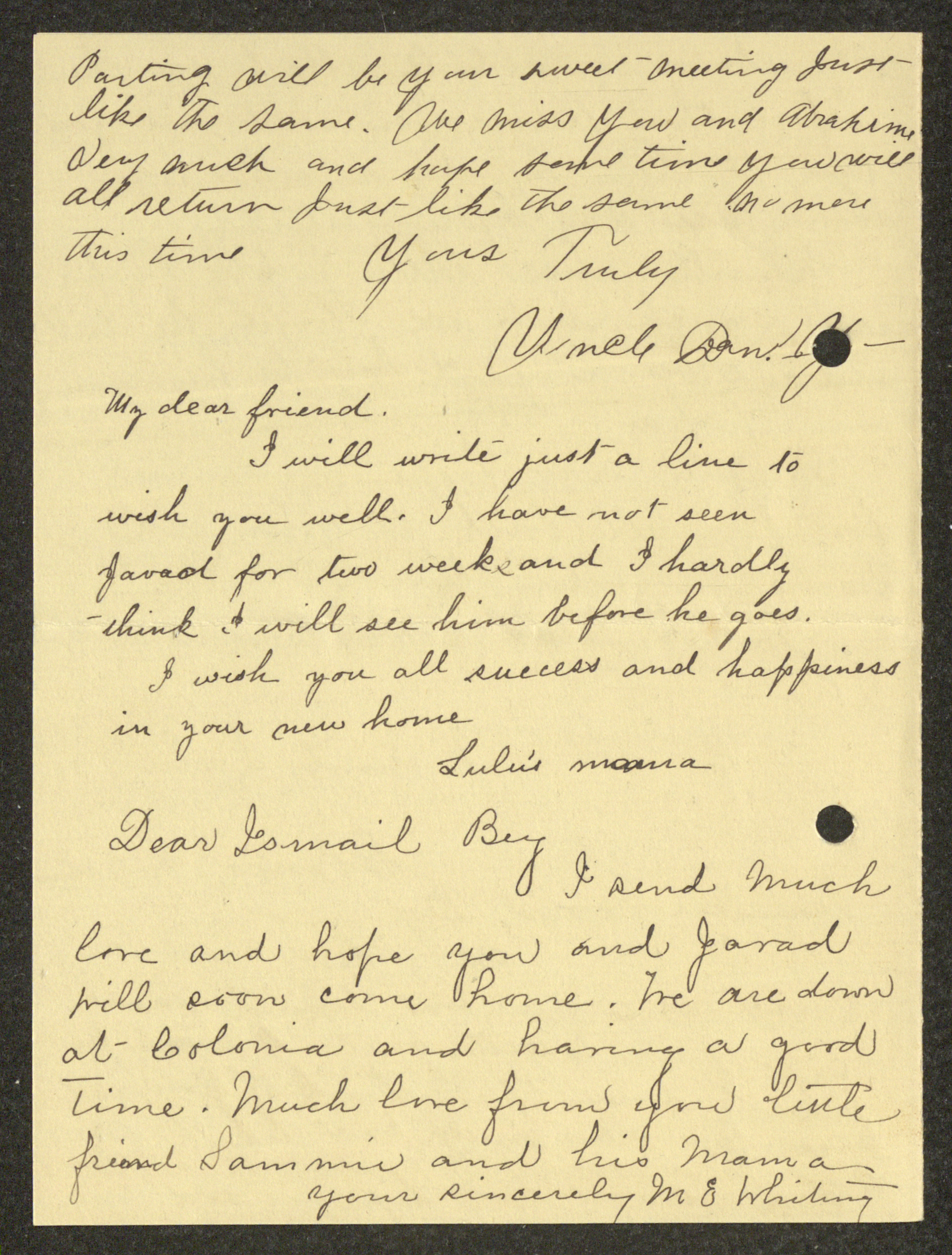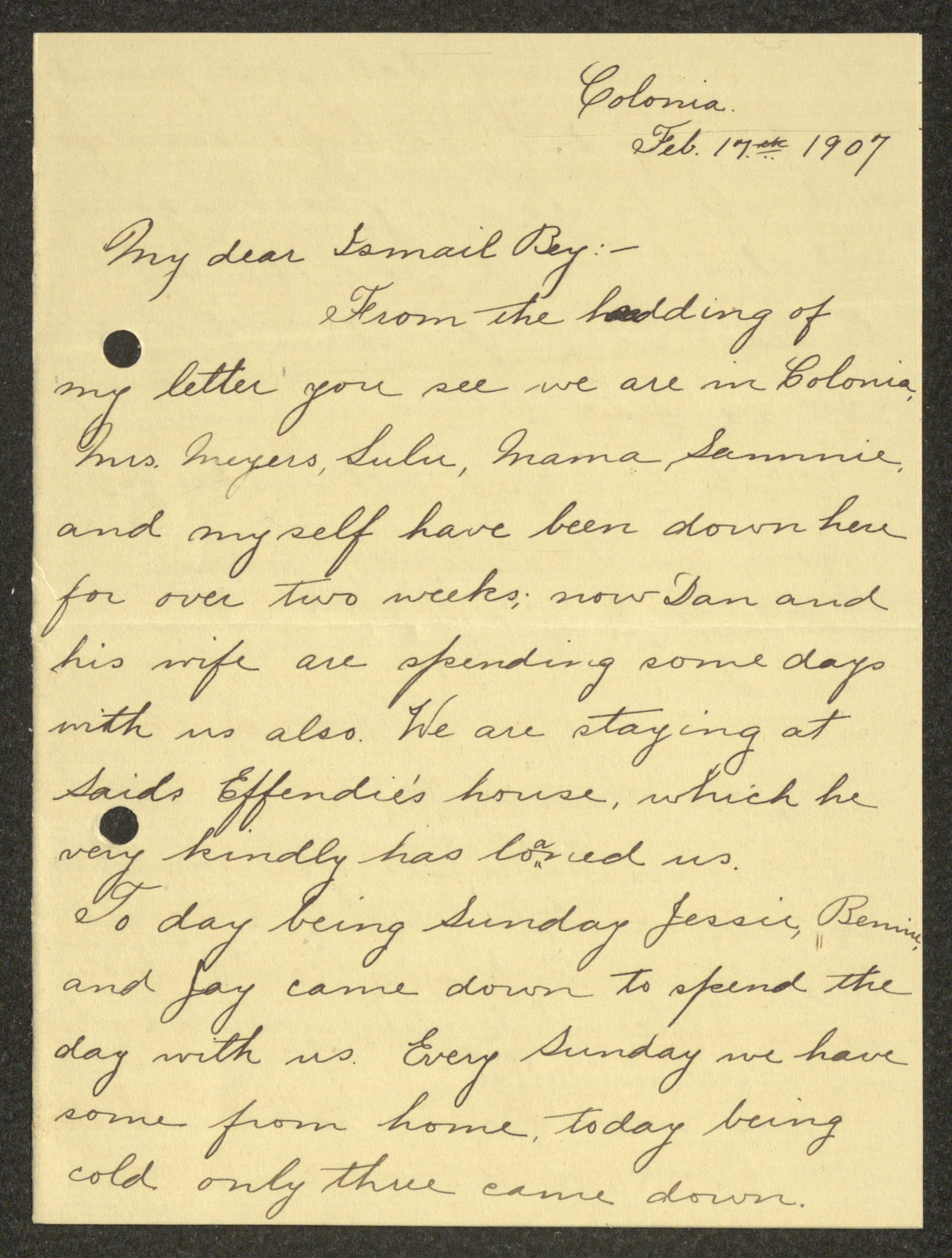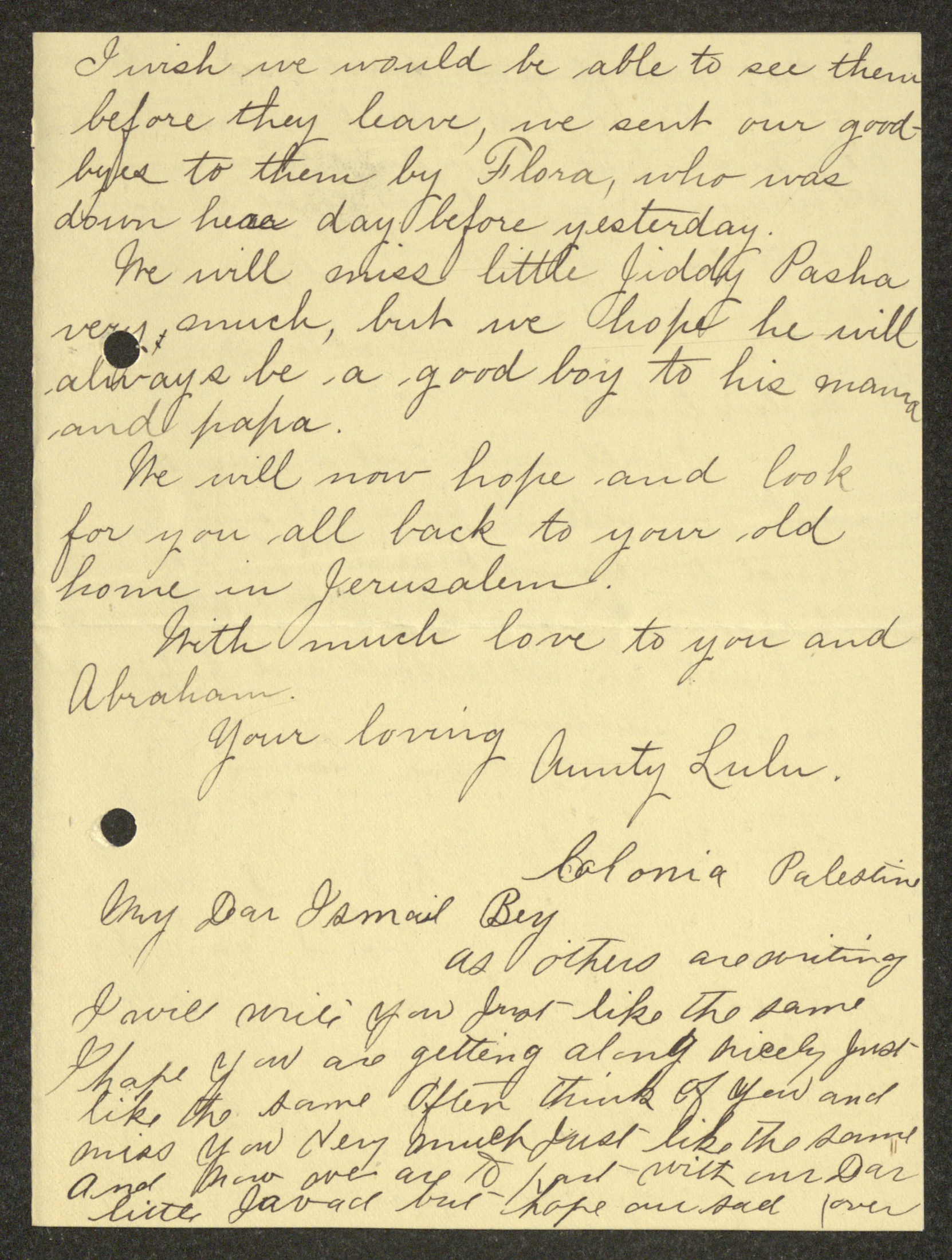 Handwritten in English, this document shows a letter from the Sameeh Hammoudeh Collection.