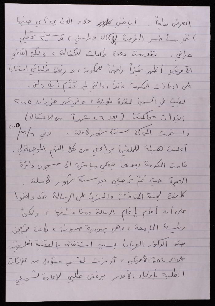 مسودة "عرض حال" لسميح حمودة، يضيء فيها على حياته الشخصية وتعليمه، واستكمال تعليمه في الولايات المتحدة الأمريكية، واعتقاله هناك بتهمة الإرهاب عام 2003، وصولاً إلى ترحيله من الولايات المتحدة الأمريكية مما أدى إلى خسارته فرصة استكمال دراسة الدكتوراه.
