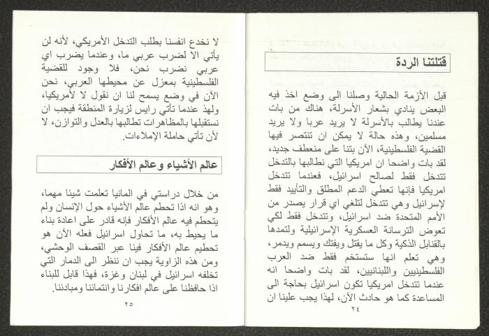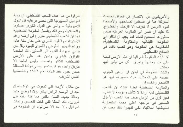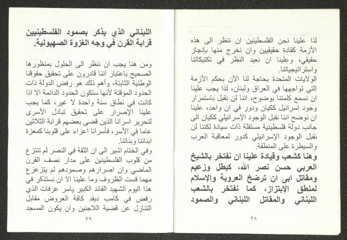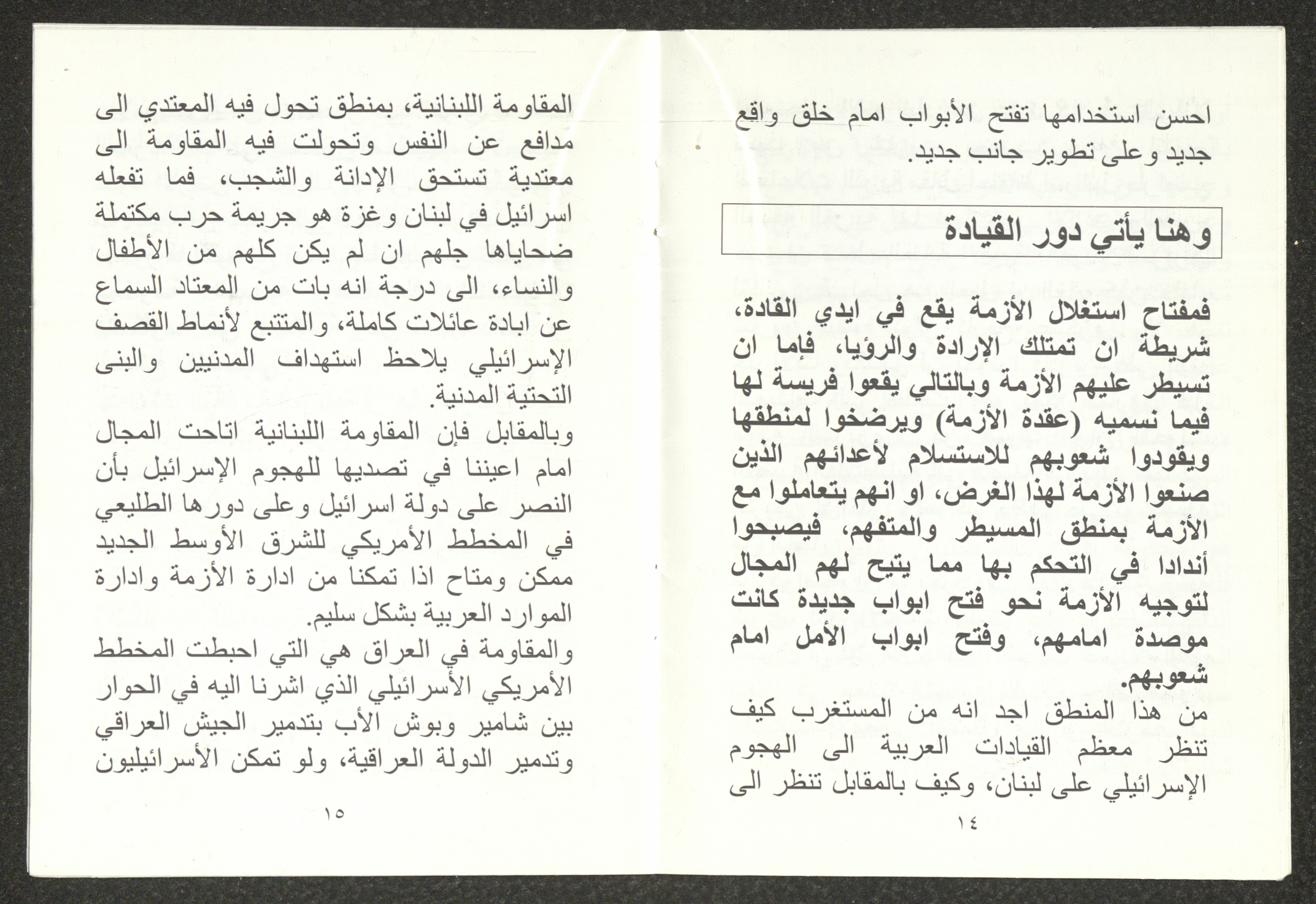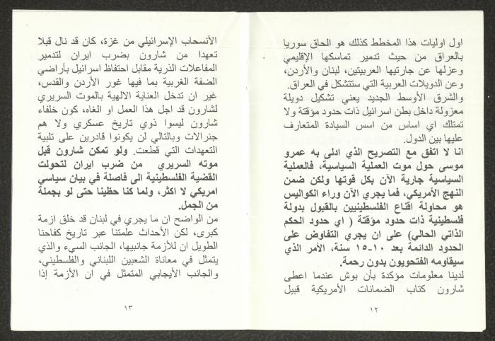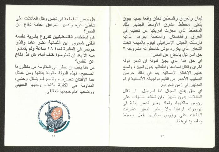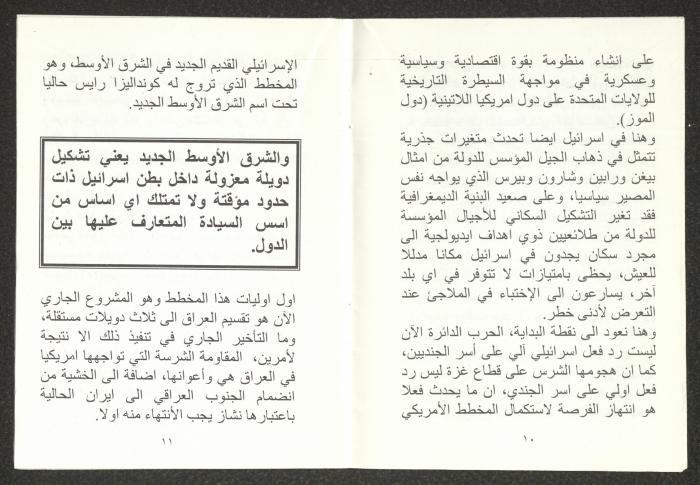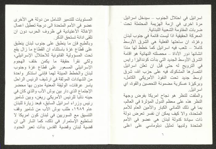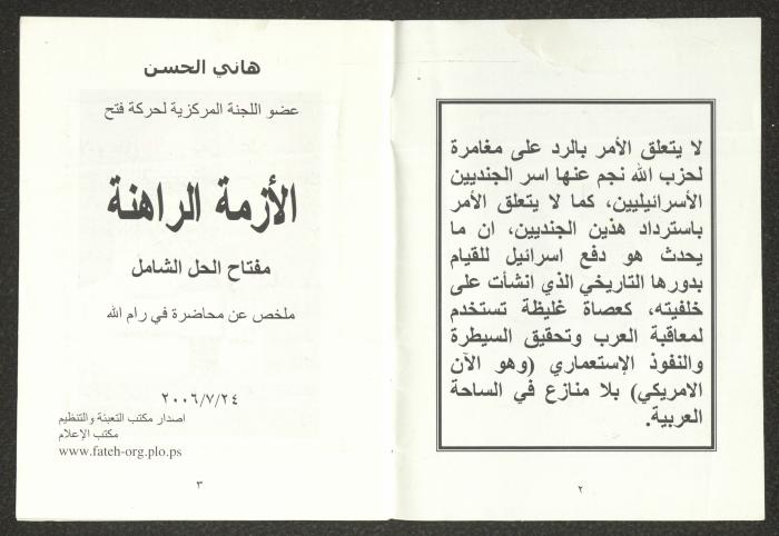 "الأزمة الراهنة"، كتيب يتضمن ملخص محاضرة لهاني الحسن، 24 تموز 2006