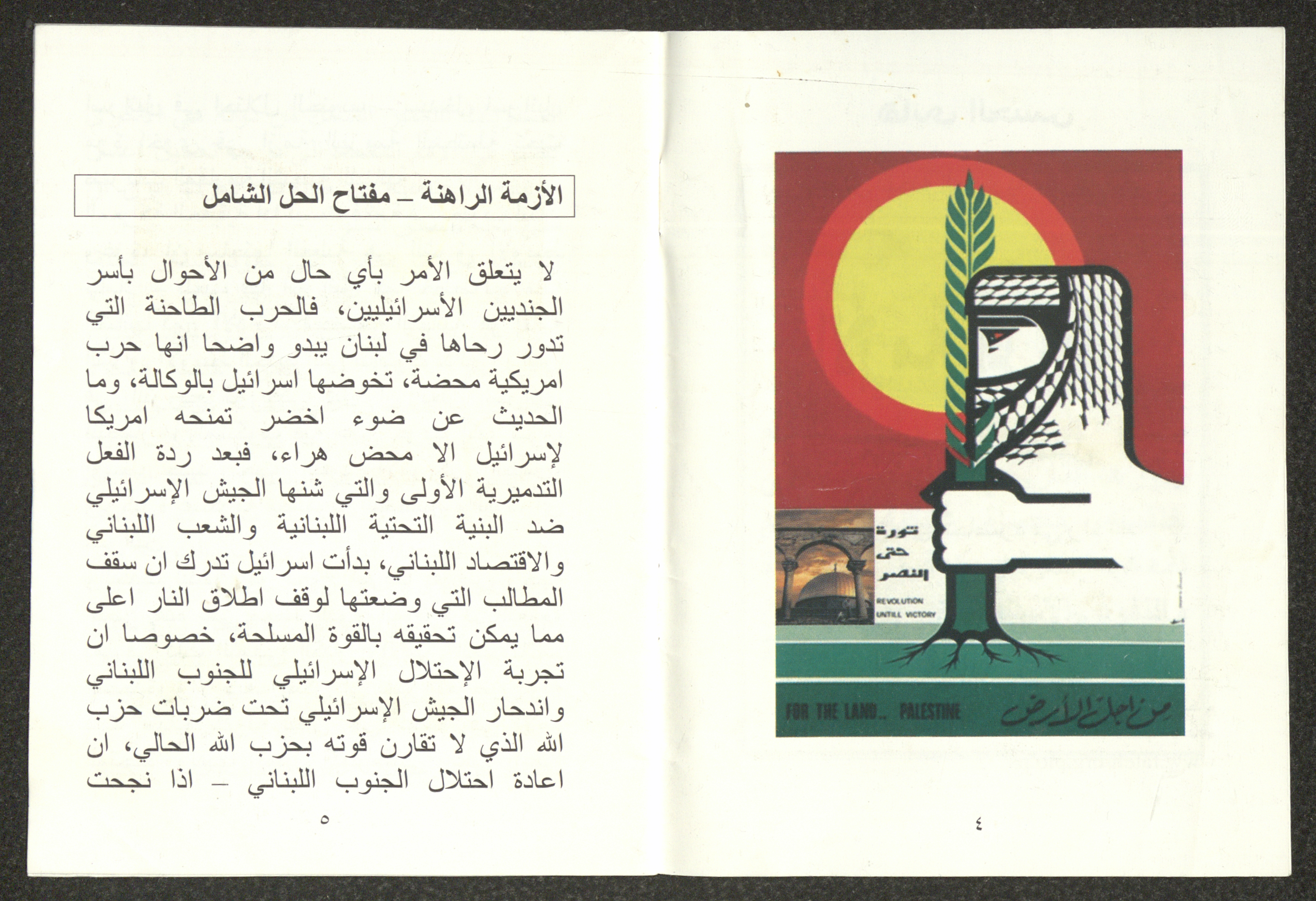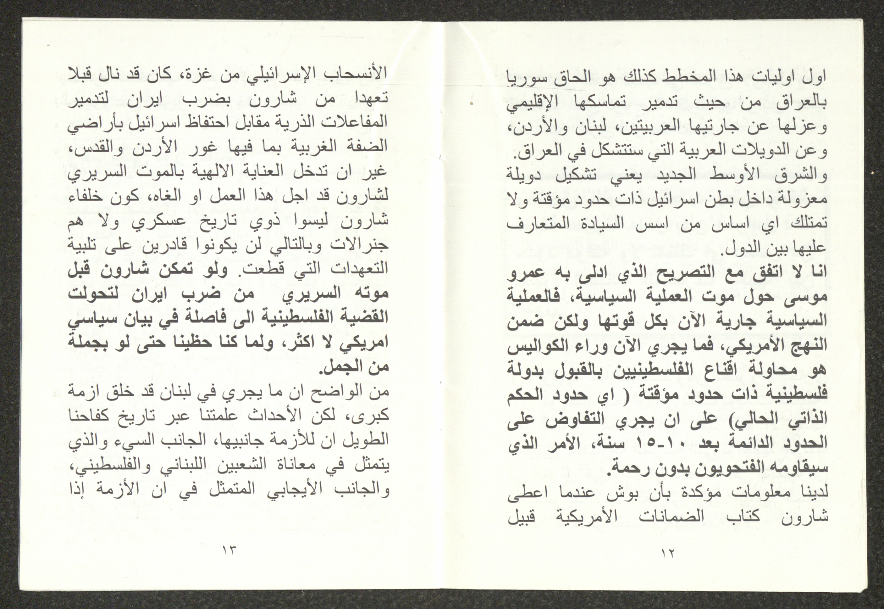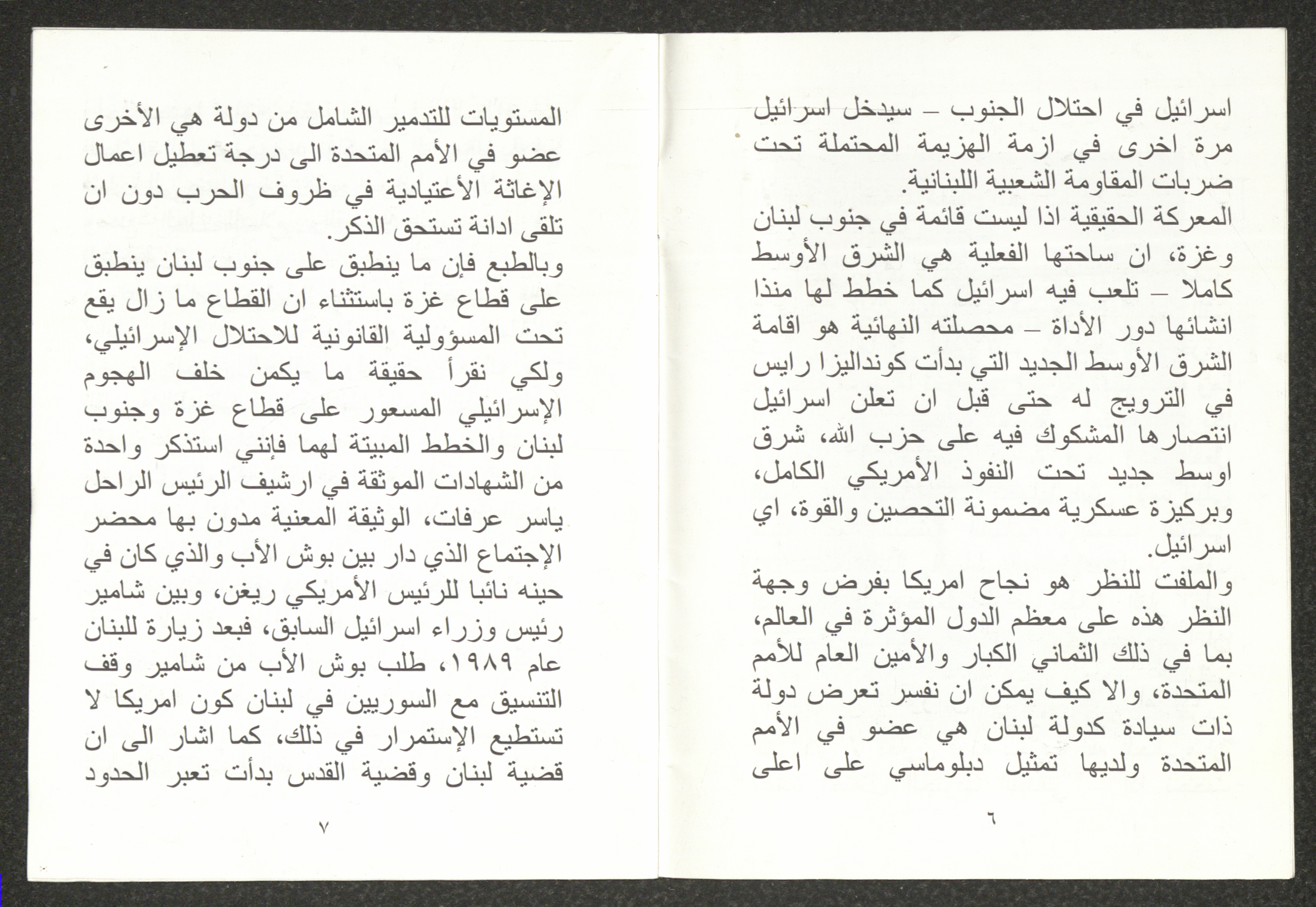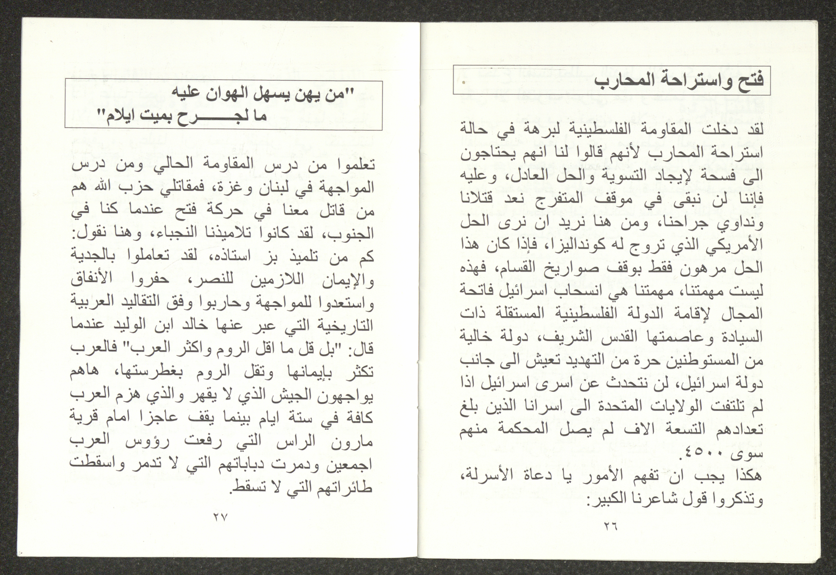 "الأزمة الراهنة"، كتيب يتضمن ملخص محاضرة لهاني الحسن، 24 تموز 2006