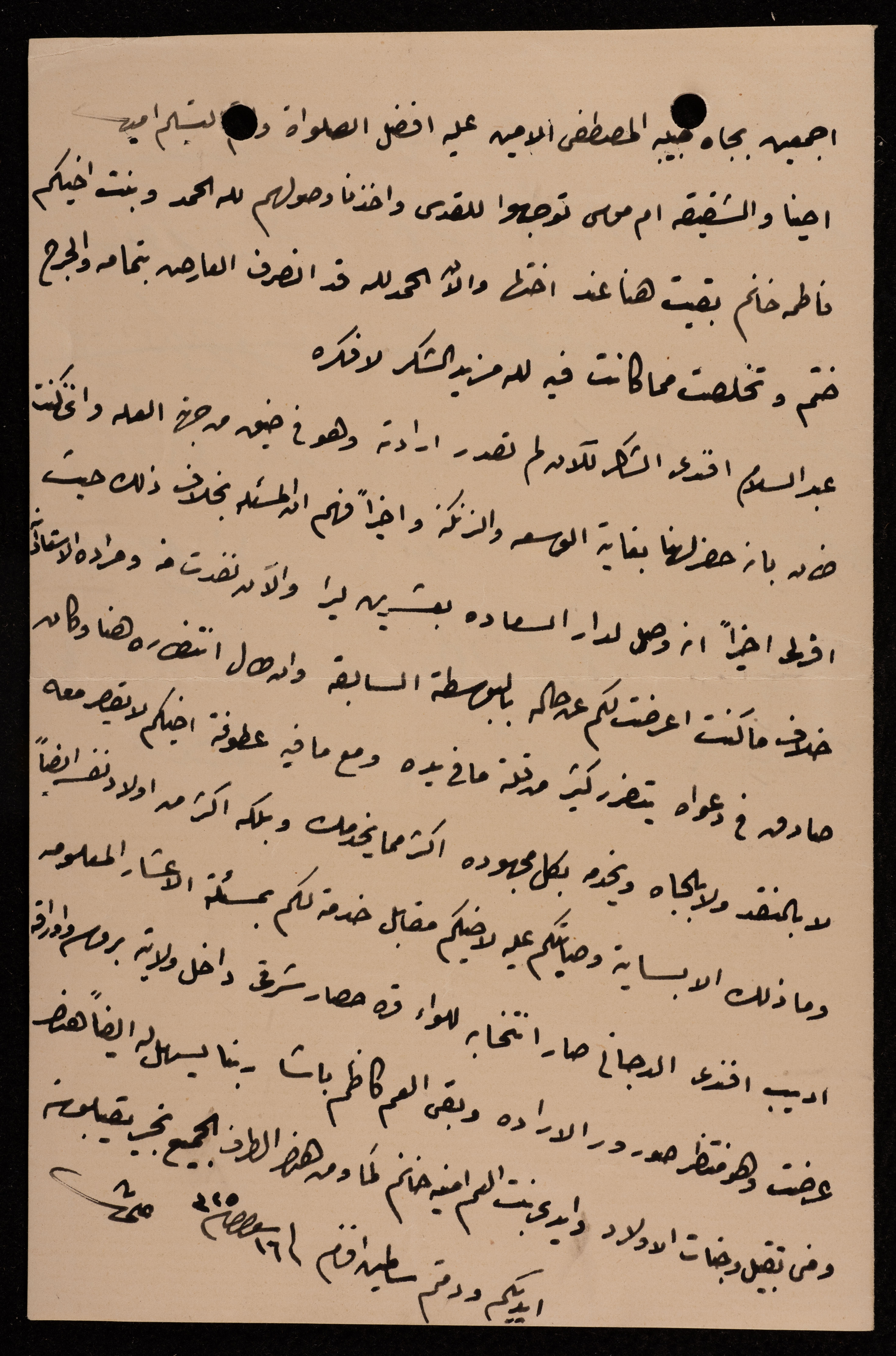 A Letter Sent to Ismael al-Husseini, Jerusalem, November 1907