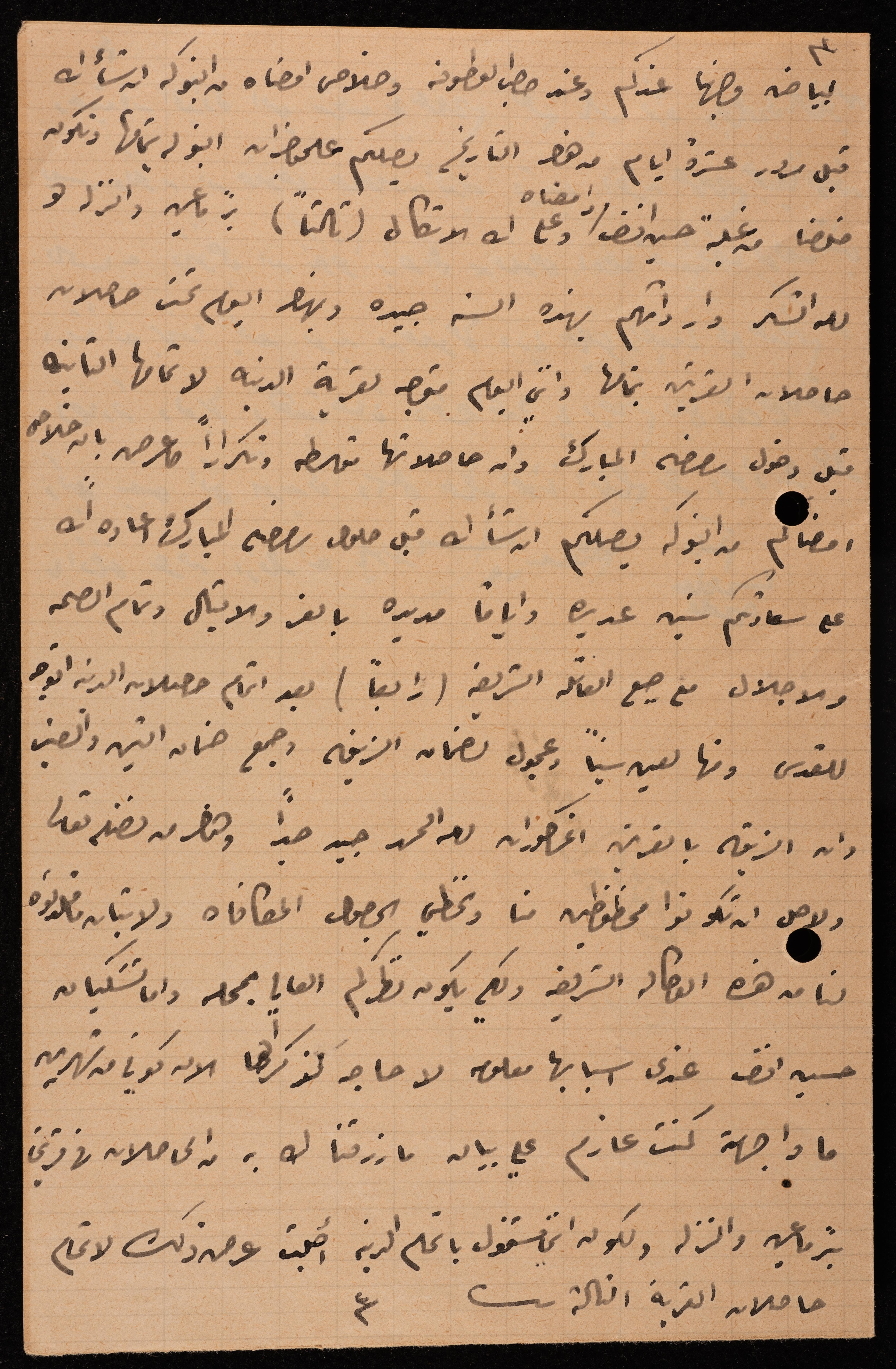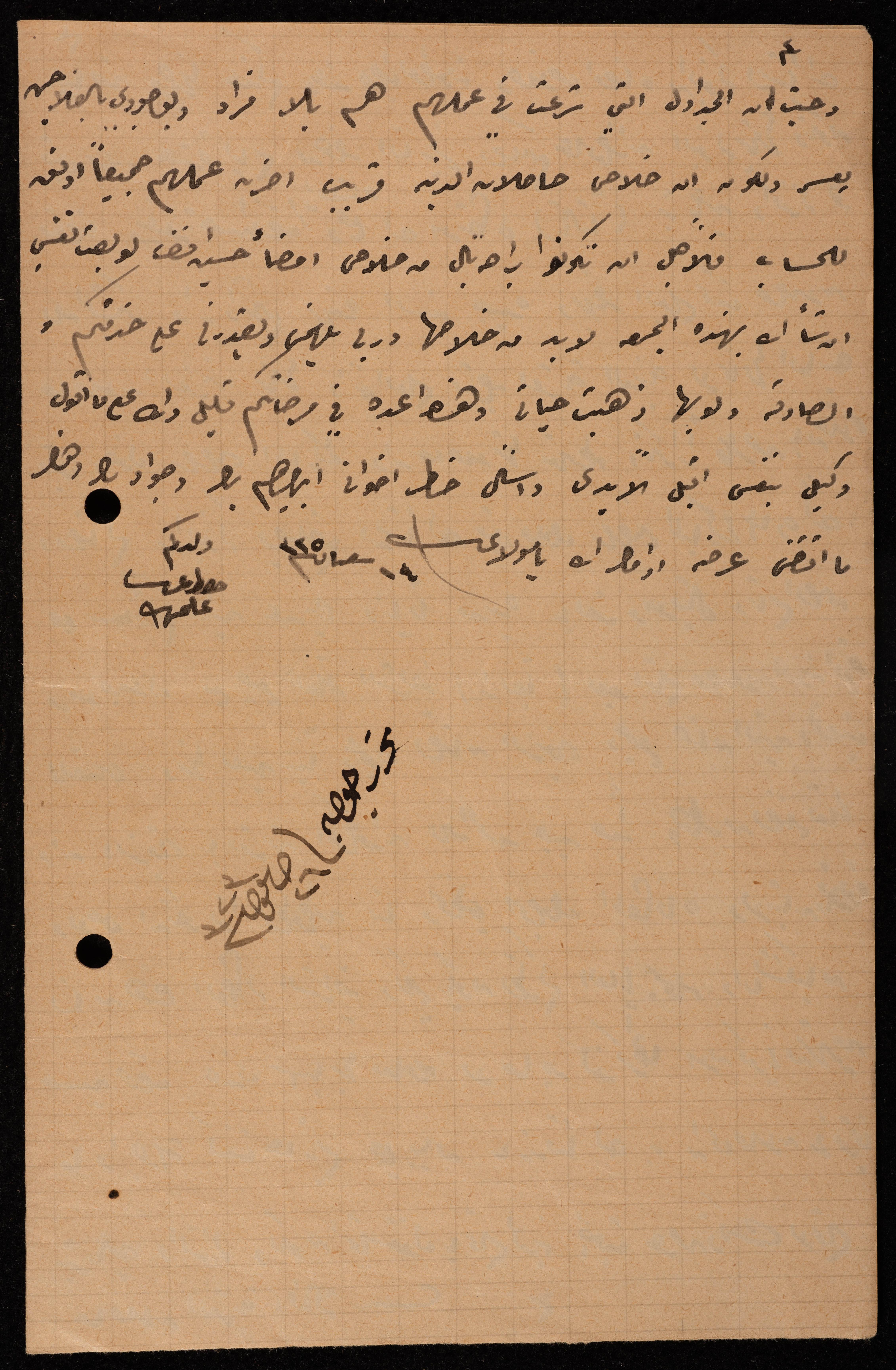 رسالة مؤرخة في 14 شعبان 1325 هجري الموافق 22 أيلول 1907 ميلادي، مرسلة من حافظ العلمي إلى إسماعيل الحسيني في أضنة، تحدث فيها عن بعض الأمور الخاصة بأعمال عائلة الحسيني.