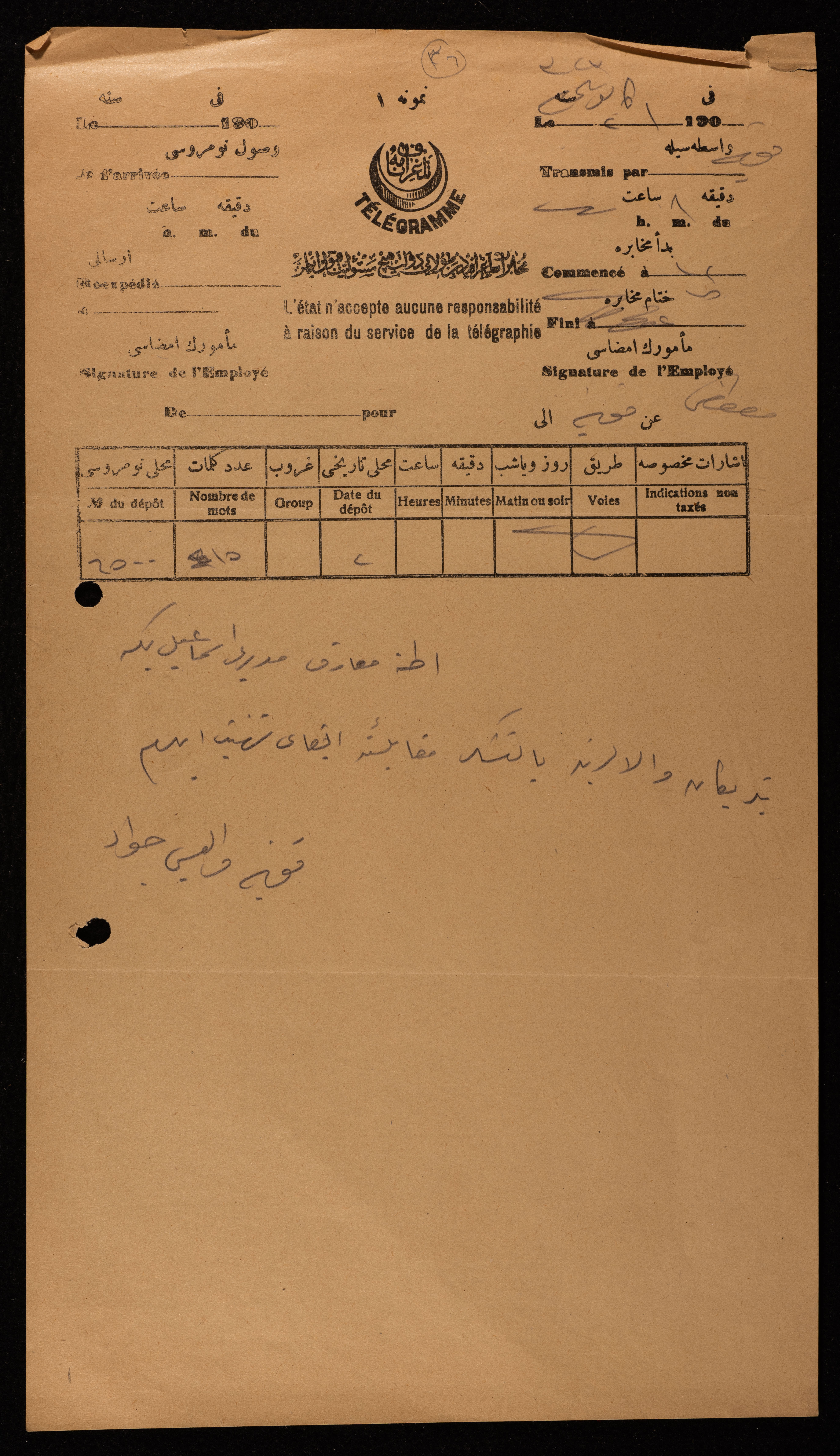 A Telegram from Jawad al-Husseini to Ismael al-Husseini, 1905-1906